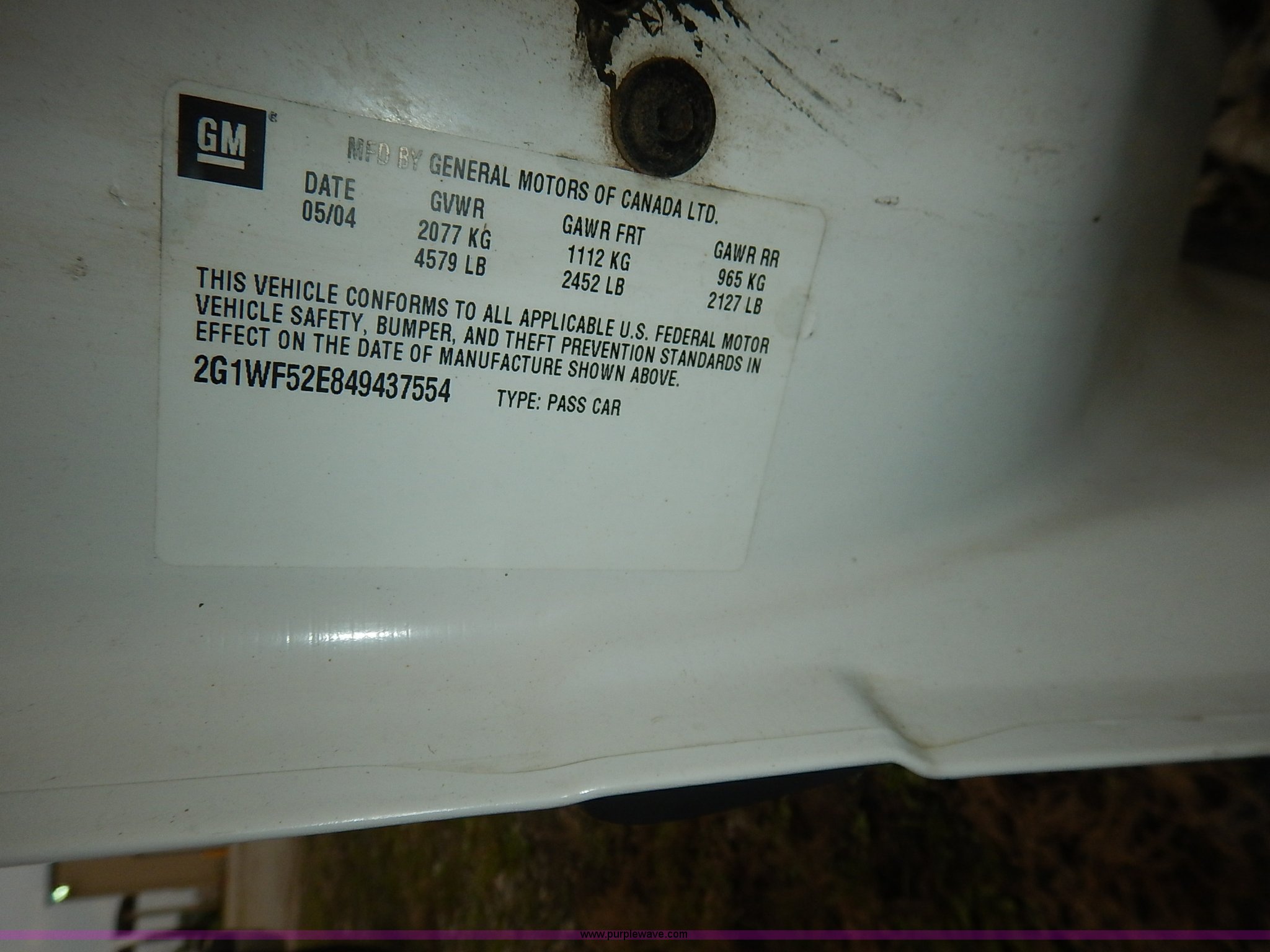 2004 Chevrolet Impala. 315,596 miles on odometer, 3.4L V6 OHV 12V gas engine, Automatic transmission, AC and heat, Tilt, Cruise, AM/FM/CD, Power windows, locks, mirrors, and seat, Cloth interior, 225/60R16 tires, Dents, Scratches, Dead battery, Paint peeling/chipping, Engine and transmission issues, Unknown operating condition, Must be towed or hauled. 2G1WF52E849437554. BRB Contractors. 3805 NW 25th St. Topeka, KS 66618