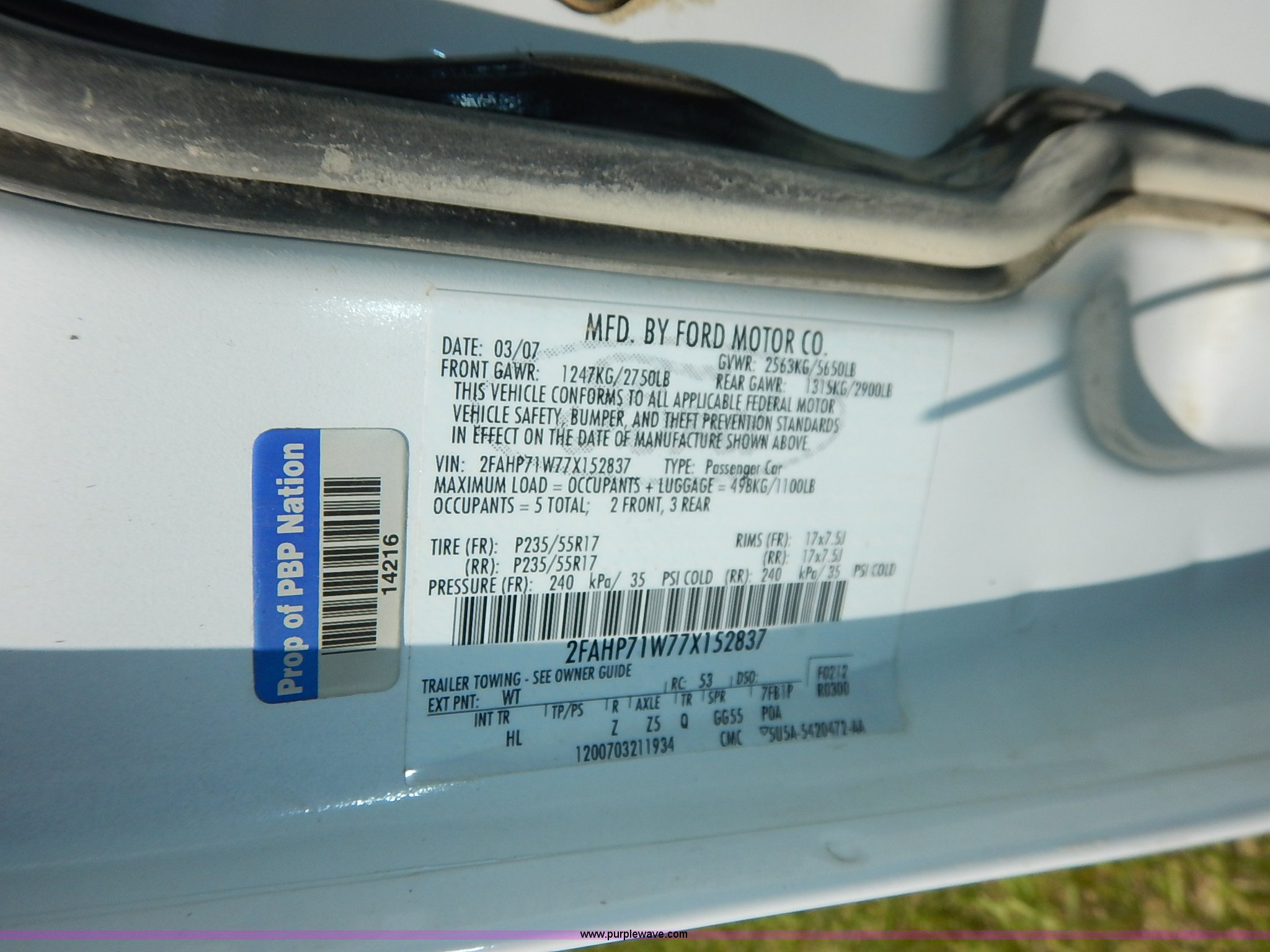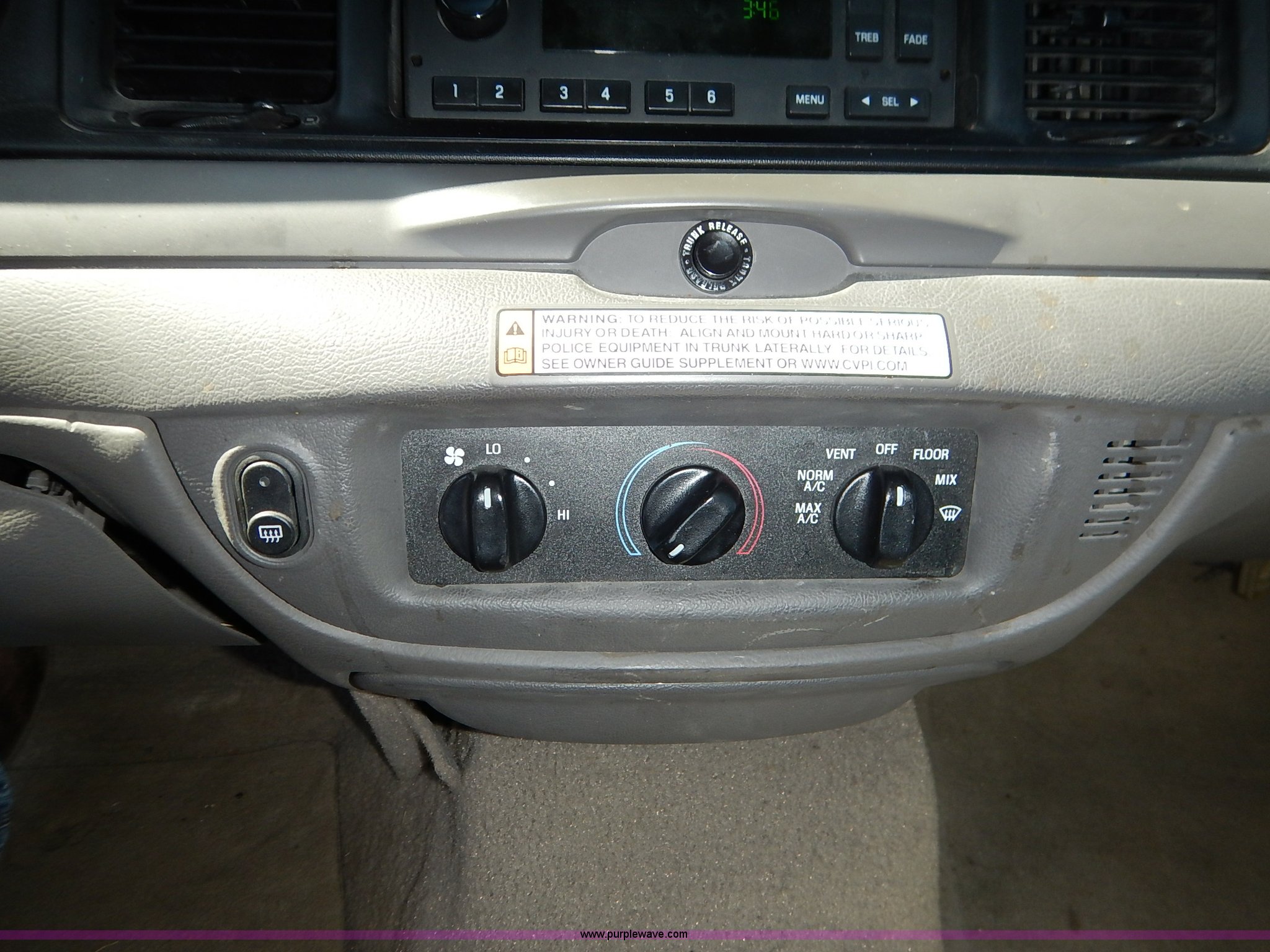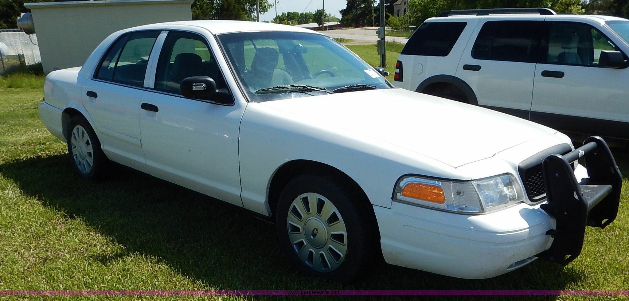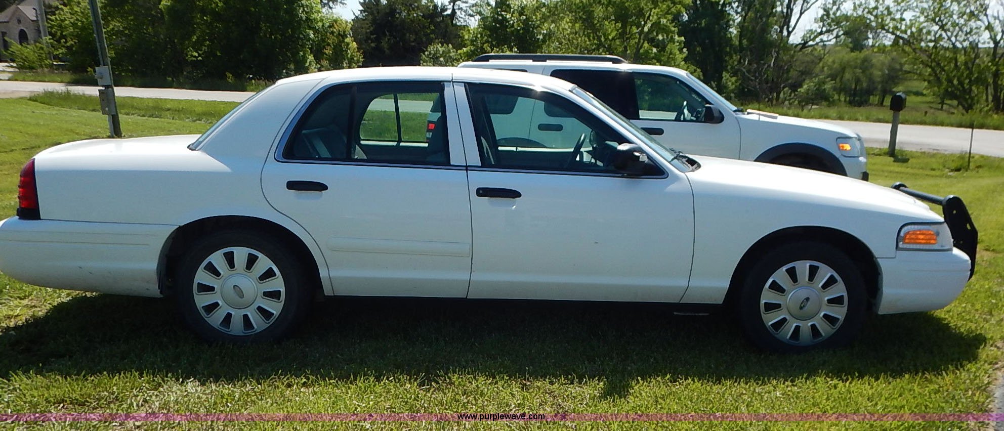 Purple Wave is selling a used Passenger Vehicle in Kansas. This item is a 2007 Ford Crown Victoria Police Interceptor with the following: 96,703 miles on odometer, 4.6L V8 SOHC 16V gas engine, Automatic transmission, AC and heat, Tilt, Cruise, AM/FM/CD, Power windows, locks, mirrors, and seats, Heated mirrors, Cloth interior, Push bar, 235/55R17 tires, Check engine light is on, Paint faded