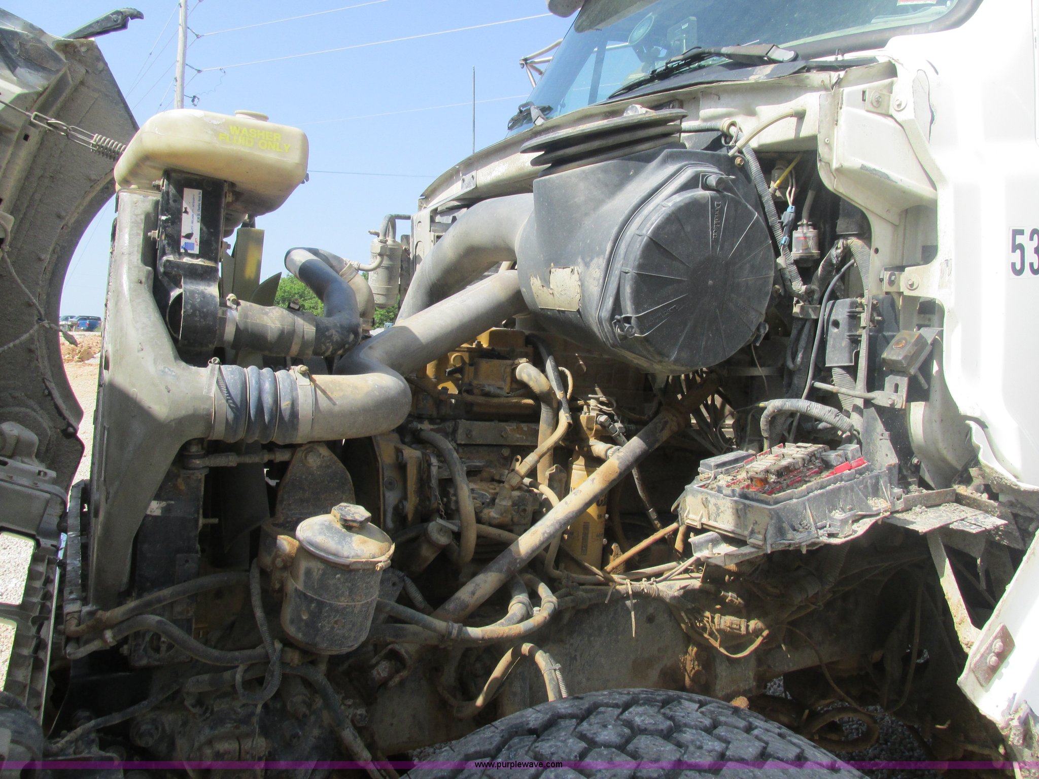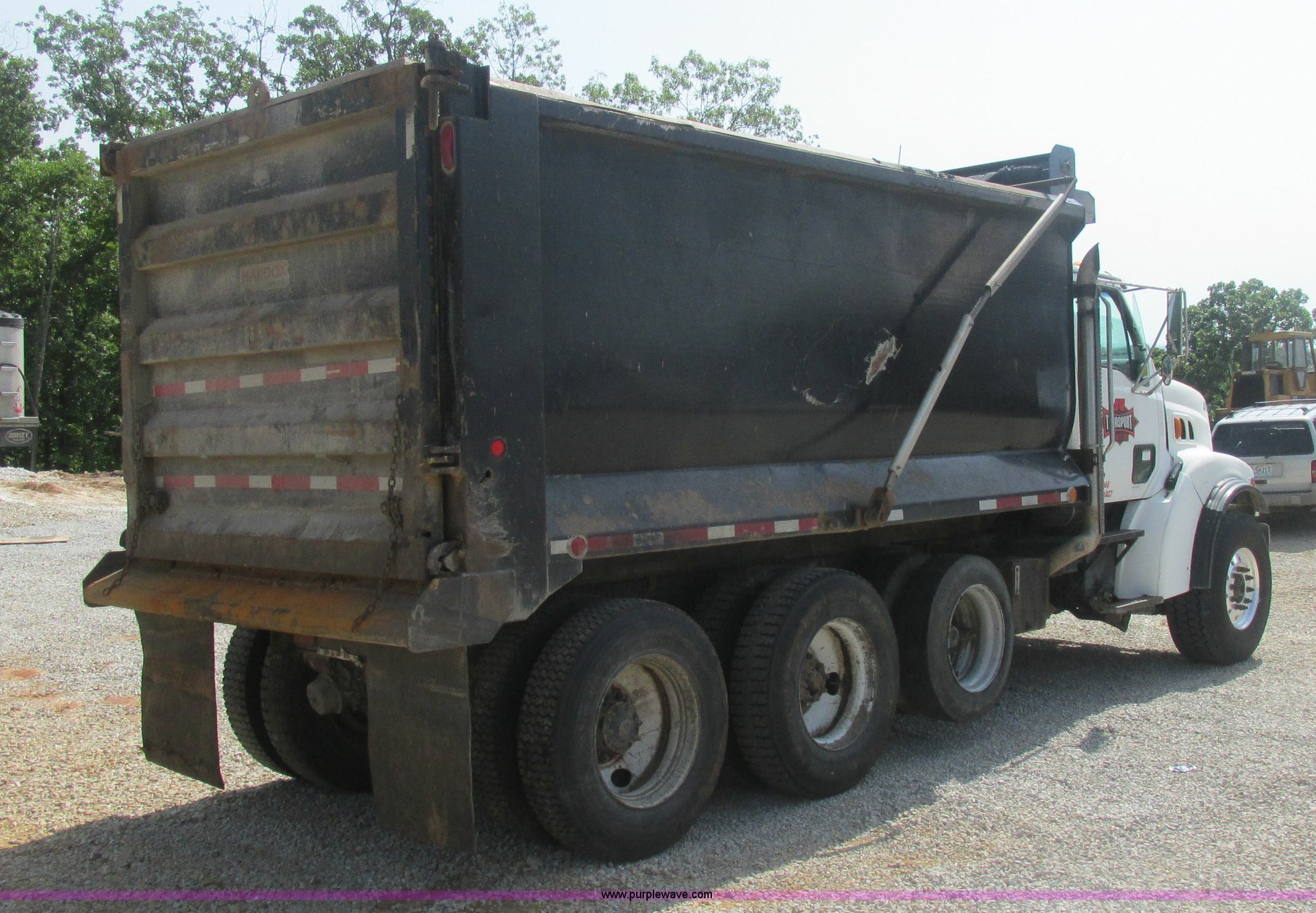 Purple Wave is selling a used Construction Dump Truck in Missouri. This item is a 1999 Sterling L9511 dump truck with the following: 452,932 miles on odometer, Caterpillar 10.3L L6 turbo diesel engine, Eaton Fuller Road Ranger RT/RTO8LL eight speed manual transmission, Triple axle, Inter-axle differential lock, Wheel lock, Heat, Cruise, Air suspension seat, Power windows, Hard Ox 16'L steel dump bed, 60"H sides, Three stage single ram hoist, Air end gate, Exterior visor, Chrome bumper, PTO, Spring walking beam suspension, Air brakes, Air pusher axle, Double frame, Aluminum front wheels, 425/65R22.5 front tires, 11R24.5 pusher axle tires, 265/75R22.5 rear tires, GVWR 56,000 lbs, GVW 76,000 lbs with pusher axle, Interior/exterior cosmetic damage, CB/GPS not included, Unit# 53