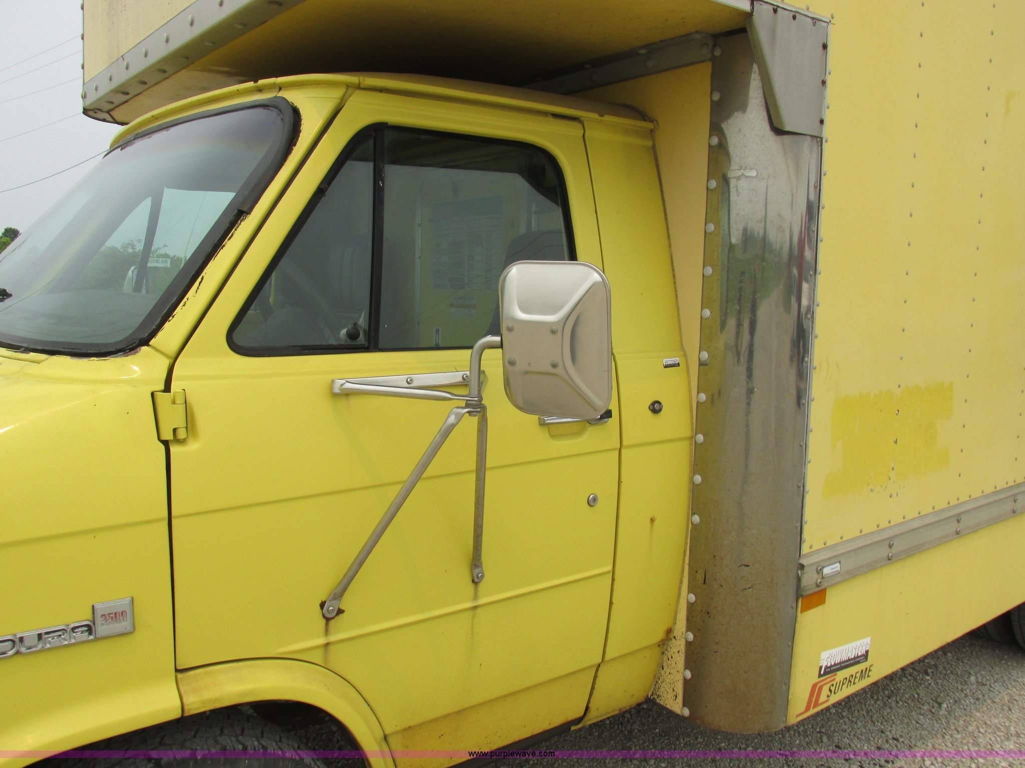 Purple Wave is selling a used Box Truck in Missouri. This item is a 1996 GMC Vandura G3500 box truck with the following: 209,427 miles on odometer, 5.7L V8 OHV 16V gas engine, Automatic transmission, AC and heat, AM/FM, Manual windows and locks, Vinyl interior, Supreme 15'L x 8'W body, Model T50551, Serial 1A147078096, 225/75R16 tires