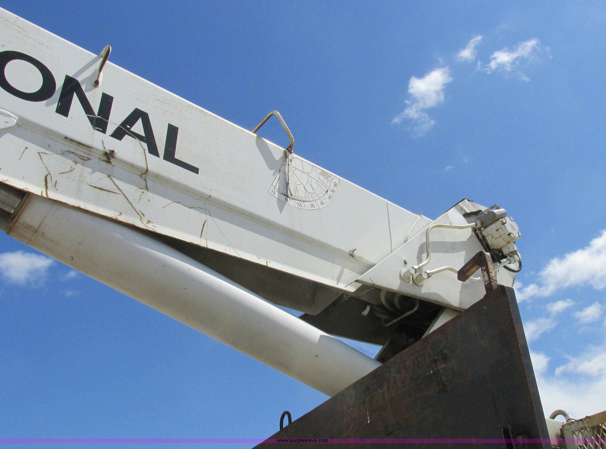 Purple Wave is selling a used Crane Truck in Missouri. This item is a 1988 International F2674 crane truck with the following: 129,555 miles on odometer, 3,691 hours on meter, Cummins N14 14.0L L6 diesel engine, Eaton Fuller Road Ranger 13 speed manual transmission, AC and heat, AM/FM, Air suspension seat, Front tow hooks, Single exhaust stack, 18' flatbed, National 800B crane, 65' max lift height, Telescoping boom, Ground boom controls, Boom rotation, Crane ball and hook, 15 ton max lift capacity, (4) outriggers, Serial 1621, Pintle hitch, Trailer wiring, PTO, Spring suspension, Air brakes, 425/65R22.5 front tires, 11R22.5 rear tires, GVWR 80,000 lbs