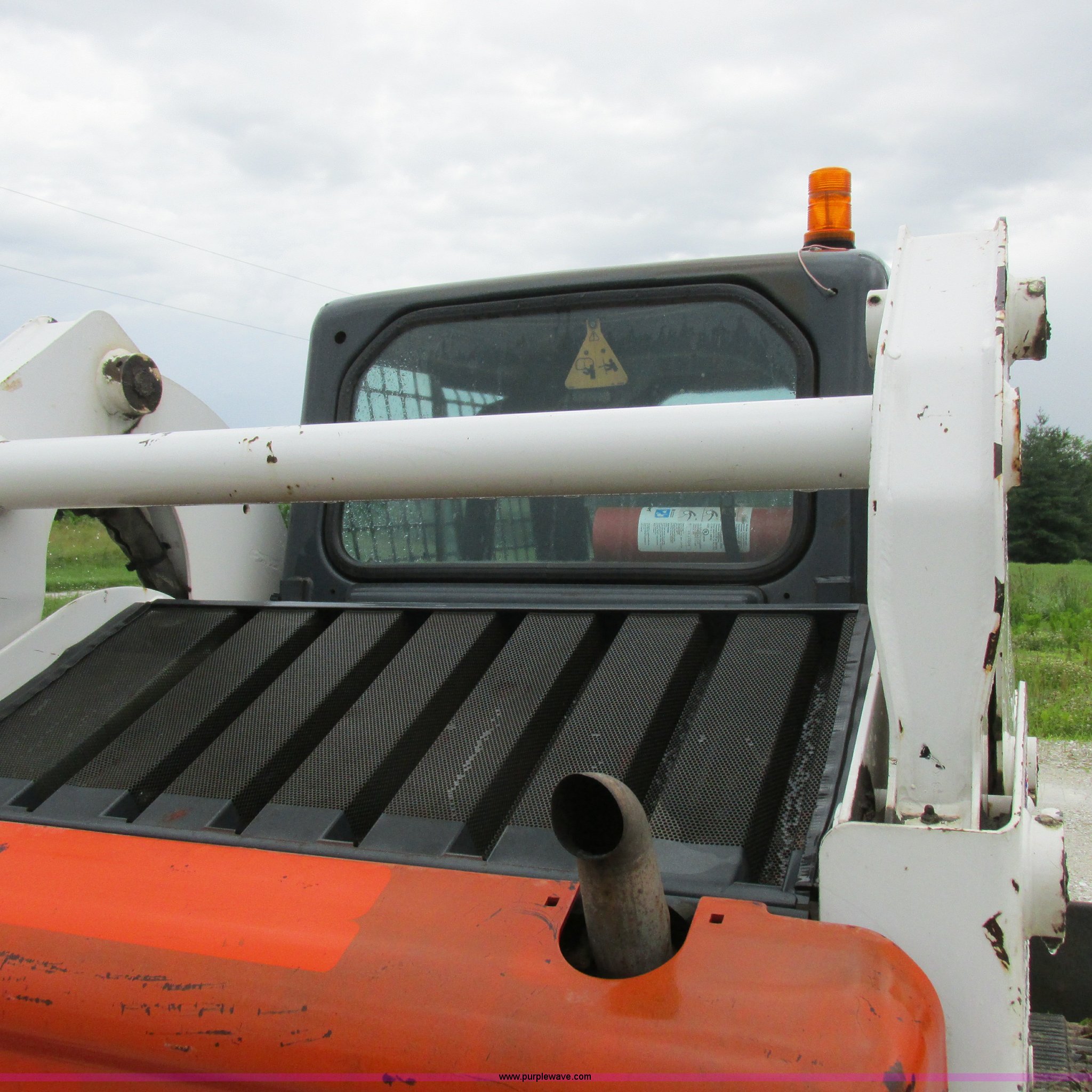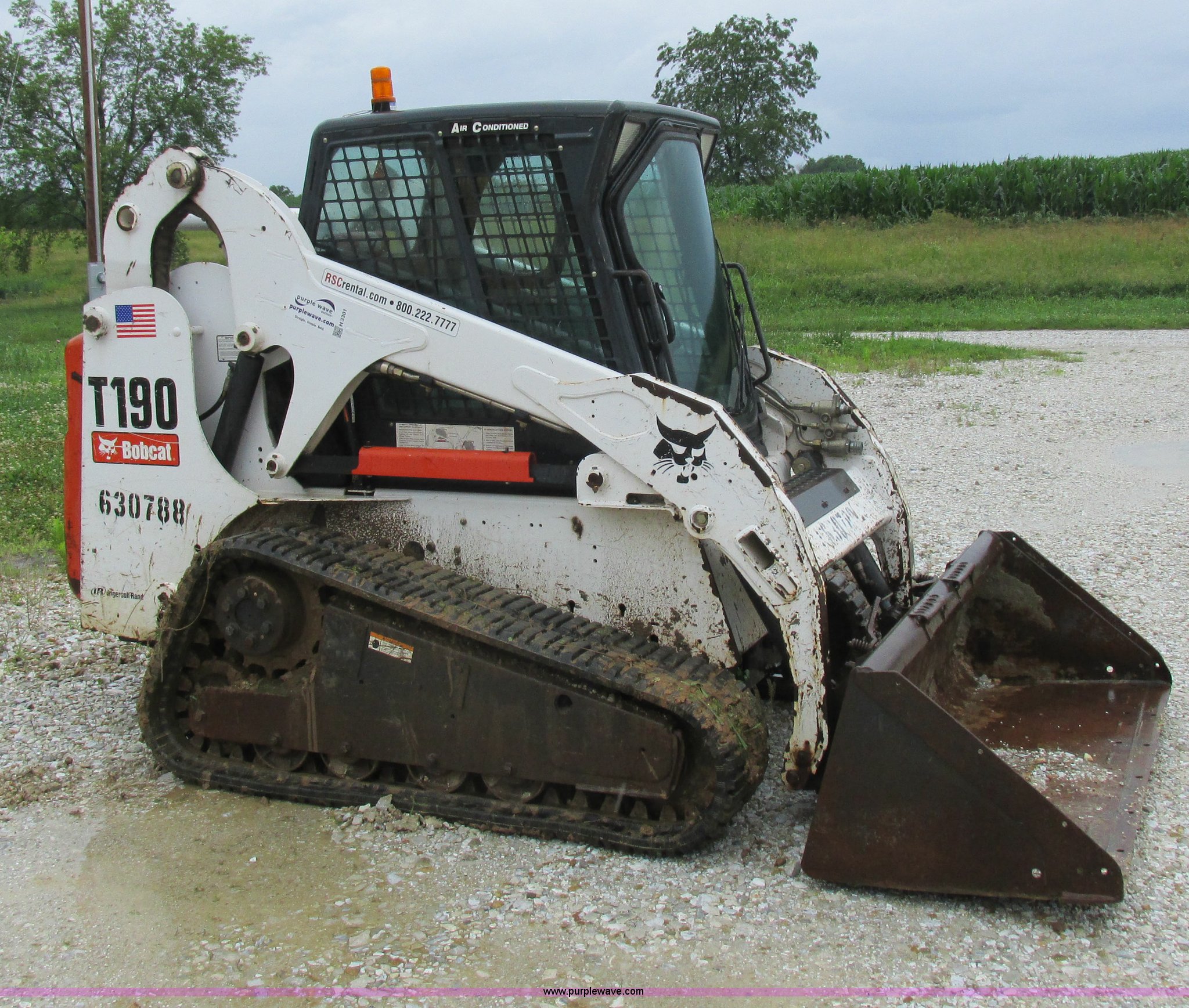 Purple Wave is selling a used Tracked Skid Steer Loader in Illinois. This item is a 2006 Bobcat T190 skid steer with the following: 1,957 hours on meter, Kubota V2403 four cylinder diesel engine, Serial 06C1361, Glow plugs, Two speed hydrostatic transmission, Enclosed cab, AC and heat, Hand and foot controls, Backup alarm, Wipers, 66"W bucket, Smooth bolt-on cutting edge, High flow auxiliary hydraulics, Manual quick coupler, Front work lights, 12"W tracks, 7,775 lbs. base operating weight, Serial 531612962