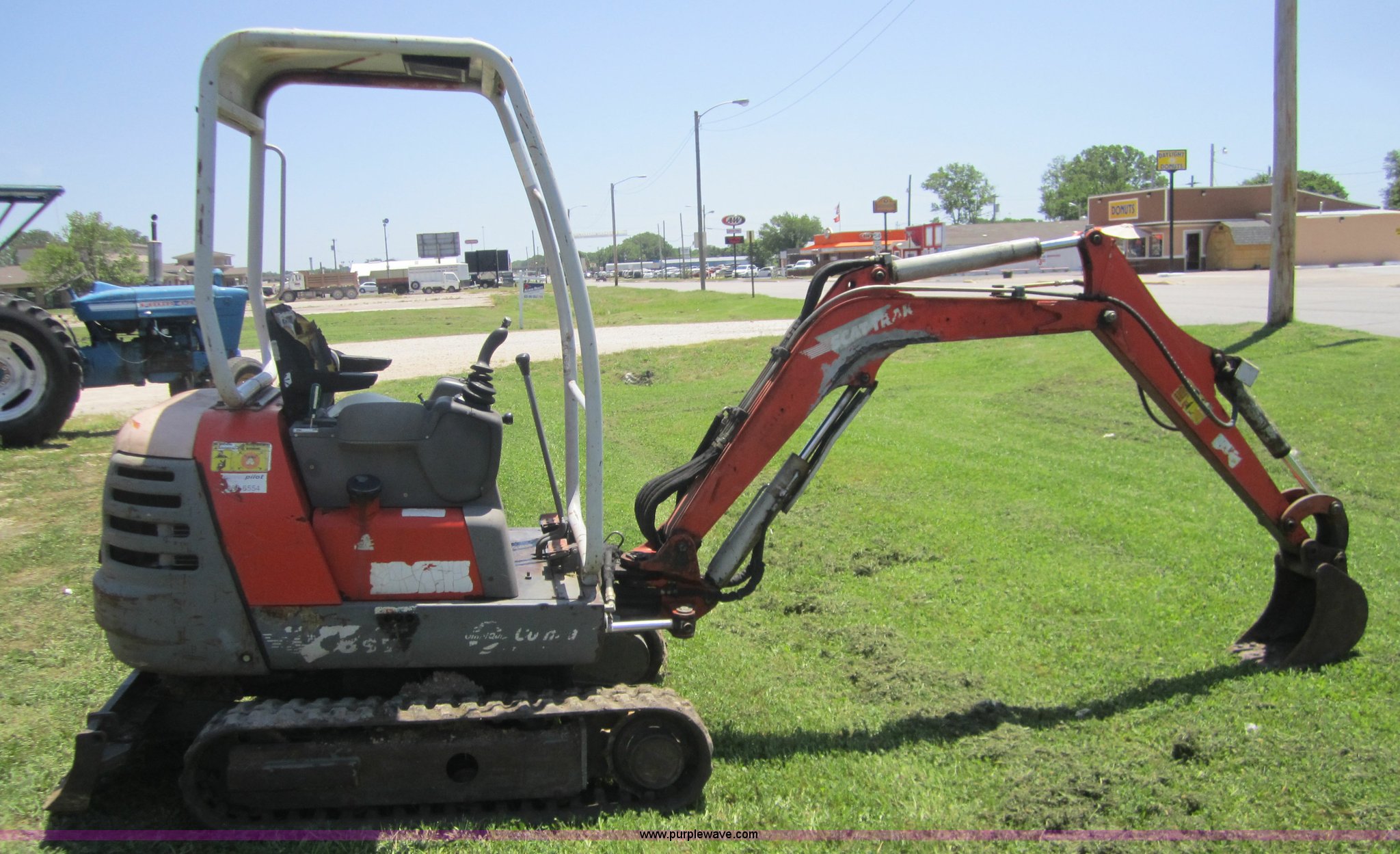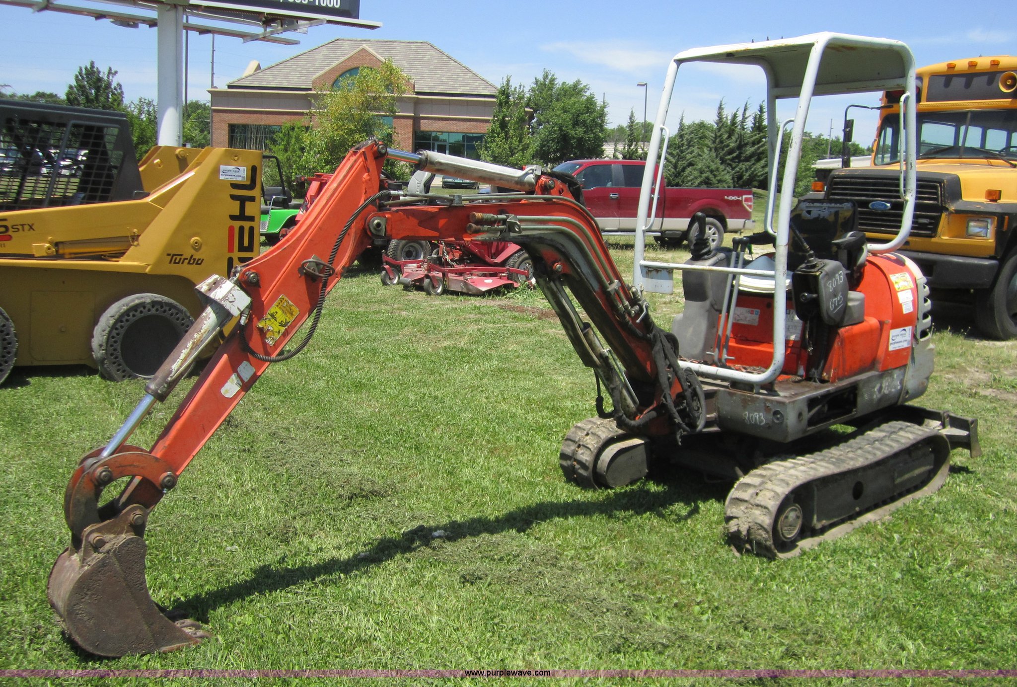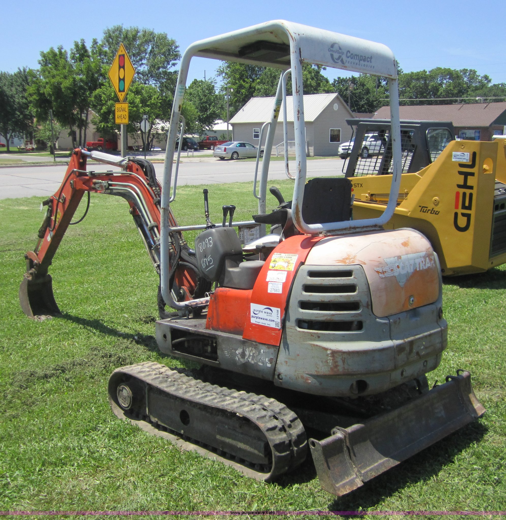 Purple Wave is selling a used Mini Excavator in Kansas. This item is a Scat Trax 218SV compact excavator with the following: 2,301 hours on meter, Kubota D1005 three cylinder diesel engine, Hydrostatic transmission, Suspension seat, Standard boom, 47" stick length, 12"W bucket, Three bolt-on teeth, Two way auxiliary hydraulics, 51"W back fill blade, Three bottom rollers, 9"W rubber tracks