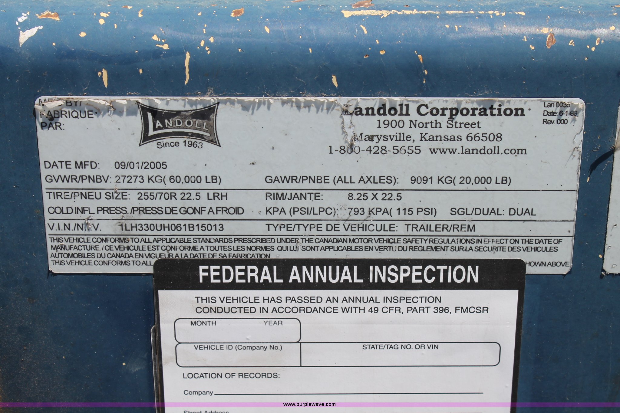 Purple Wave is selling a used Equip. Trailer in New Mexico. This item is a 2006 Landoll 330B equipment trailer with the following: 39'L x 102.5"W steel deck, 48' overall length, Winch, Air suspension, Air brakes, Tandem axle, Hydro-slide axle, 255/70R22.5 tires, GVWR 60,000 lbs, GAWR 20,000 lbs