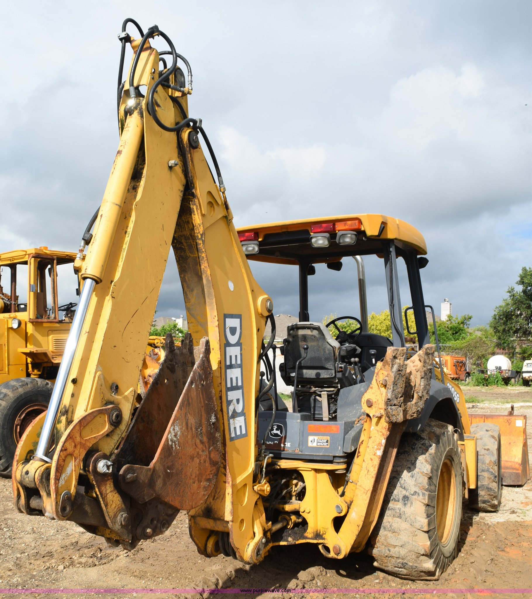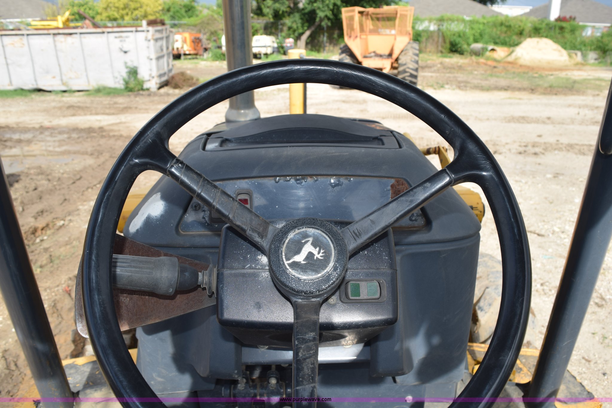 Purple Wave is selling a used Tractor Loader Backhoe in Texas. This item is a 2005 John Deere 310SG backhoe with the following: 4,343 hours on meter, John Deere 4045TT 4.5L four cylinder diesel engine, 91 HP, Powershift transmission, 4F-4R gears, Four wheel drive, Canopy, Suspension seat, Wobble stick backhoe controls, 91"W loader bucket, Bolt-on cutting edge, Manual quick coupler, 10"W backhoe bucket, (3) teeth, Front and rear work lights, Front counter weights, 12.5/80-18 front tires, 19.5L-24 rear tires, 13,500 lbs. base operating weight, Serial T0310SG942771, Unit# 920177