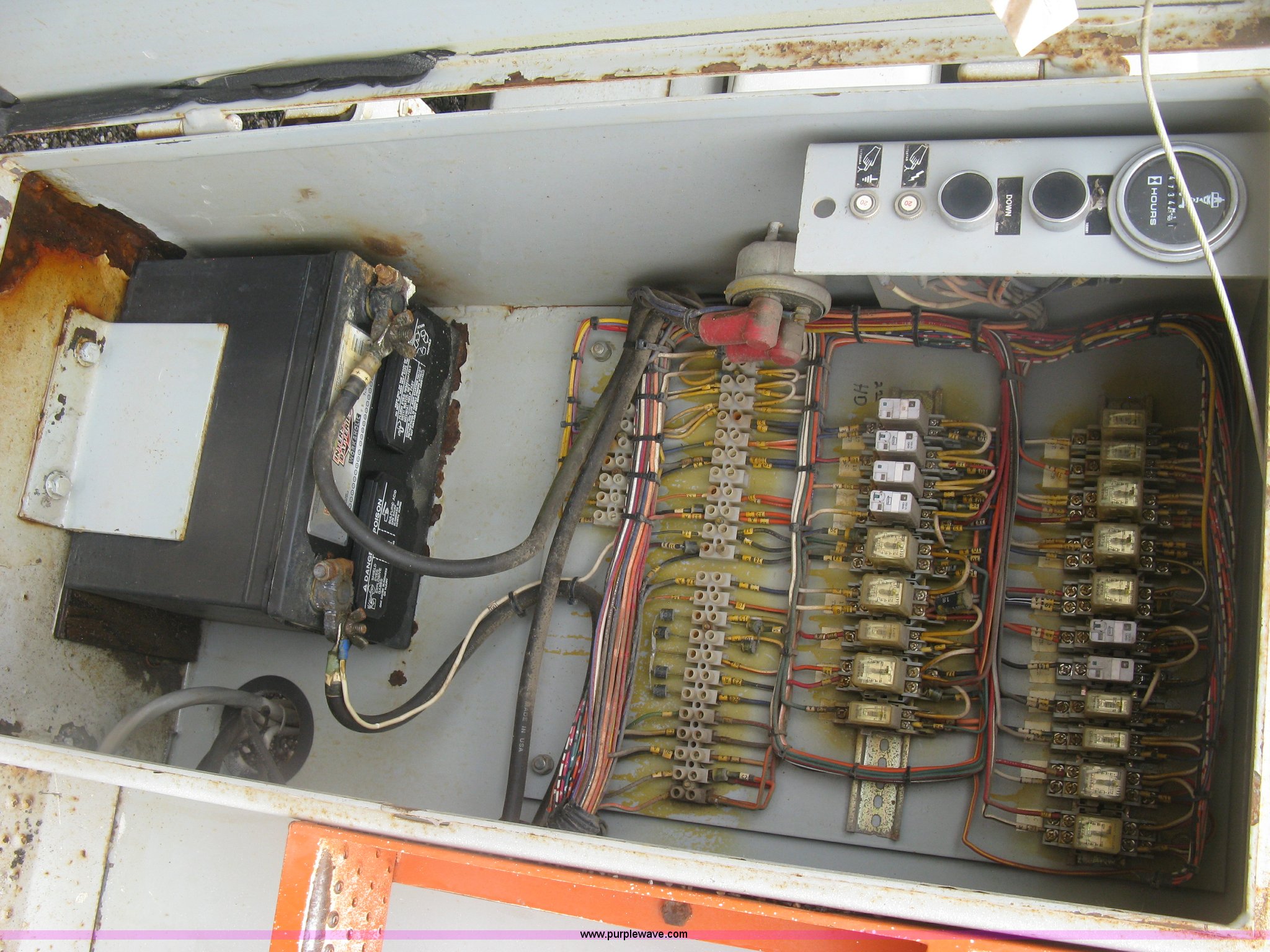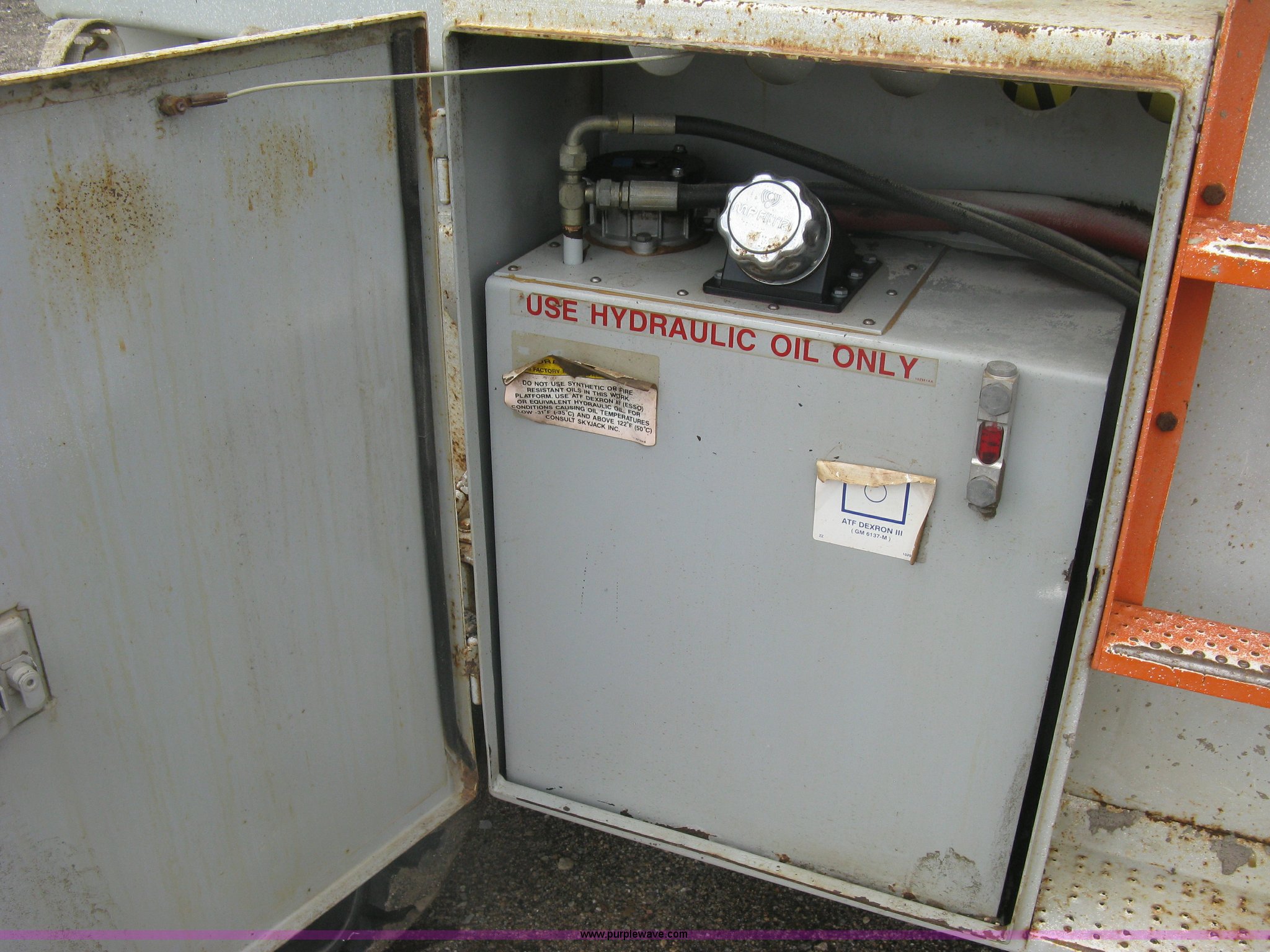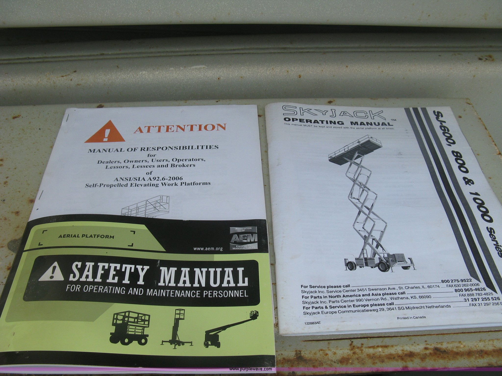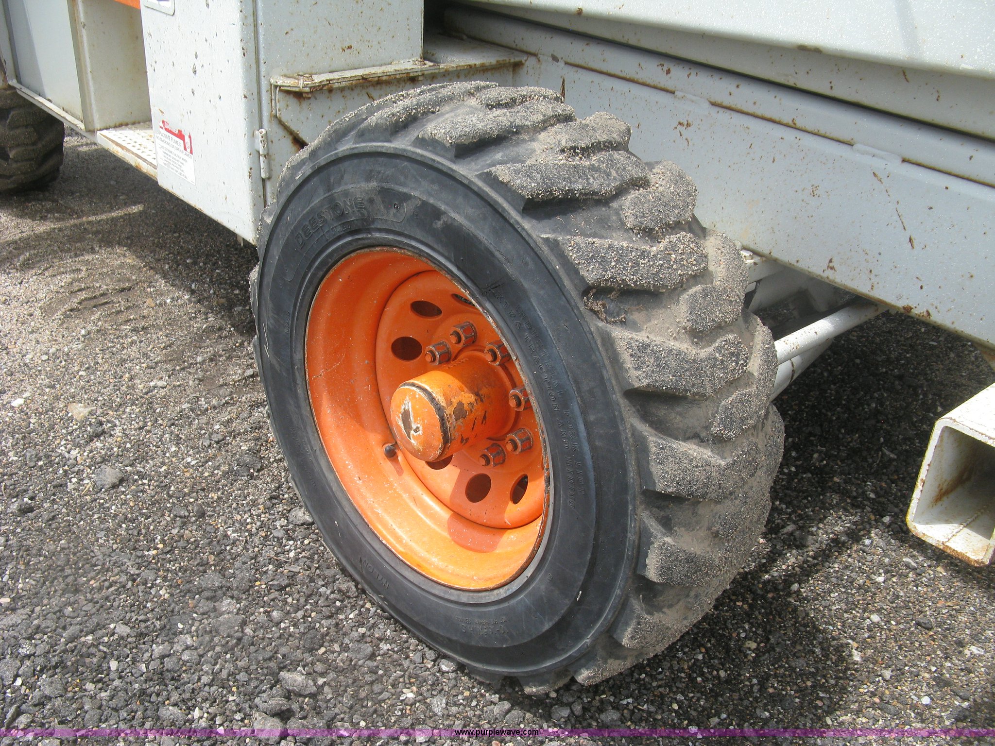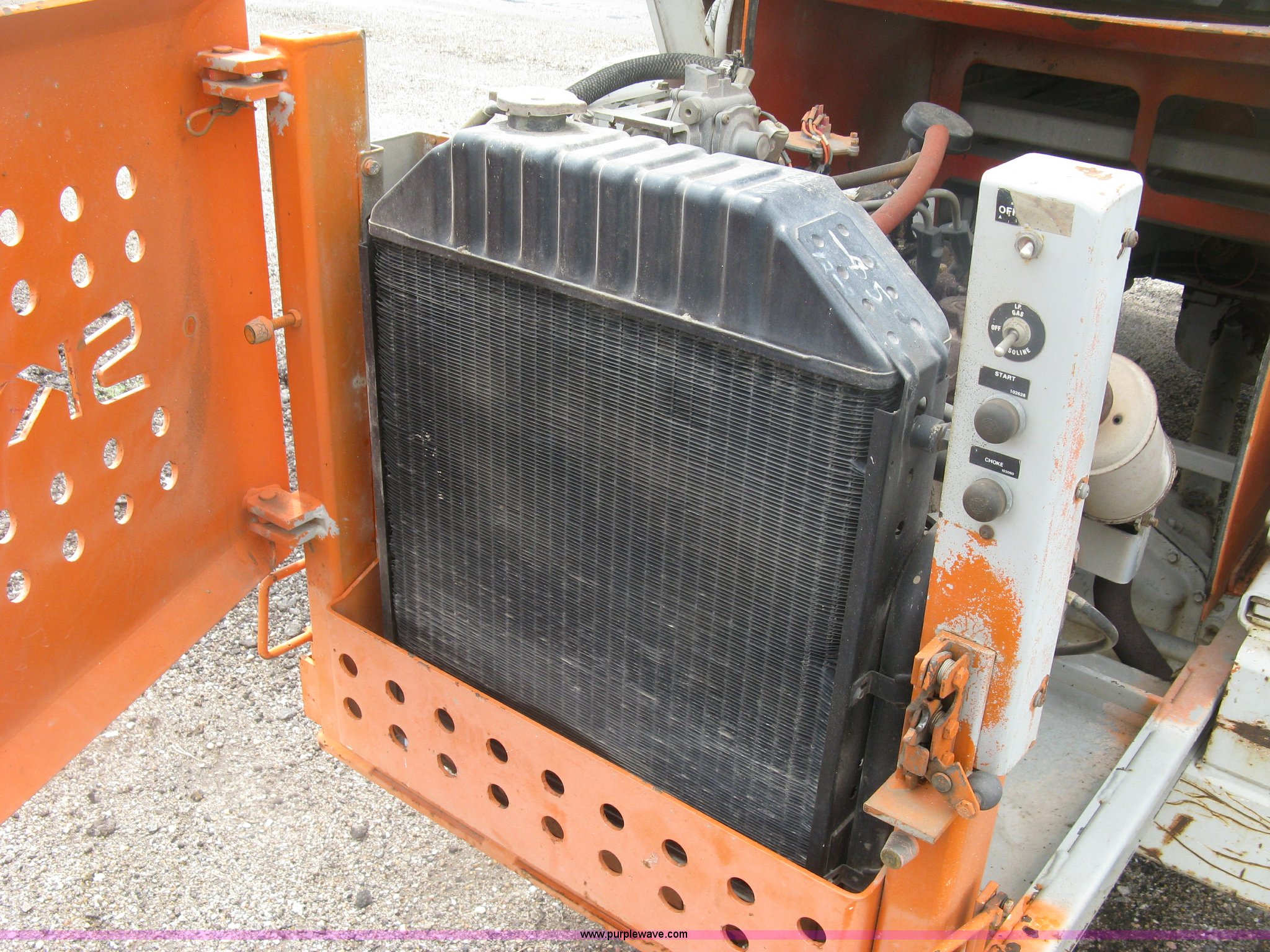 Purple Wave is selling a used Scissor or Vertical Lift in Kansas. This item is a 1999 Sky Jack SJ8841A scissor lift with the following: 4,734 hours on meter, Ford four cylinder dual fuel engine, Gas and propane capable, 41' maximum platform height, 1,500 lbs maximum lift capacity, 11.5' x 5.5'W platform, Slide-out extension, 10-16.5 NHS tires, 11,490 lbs. base operating weight, Annual Inspection completed on March 24, 2015, Manuals, Serial 41523