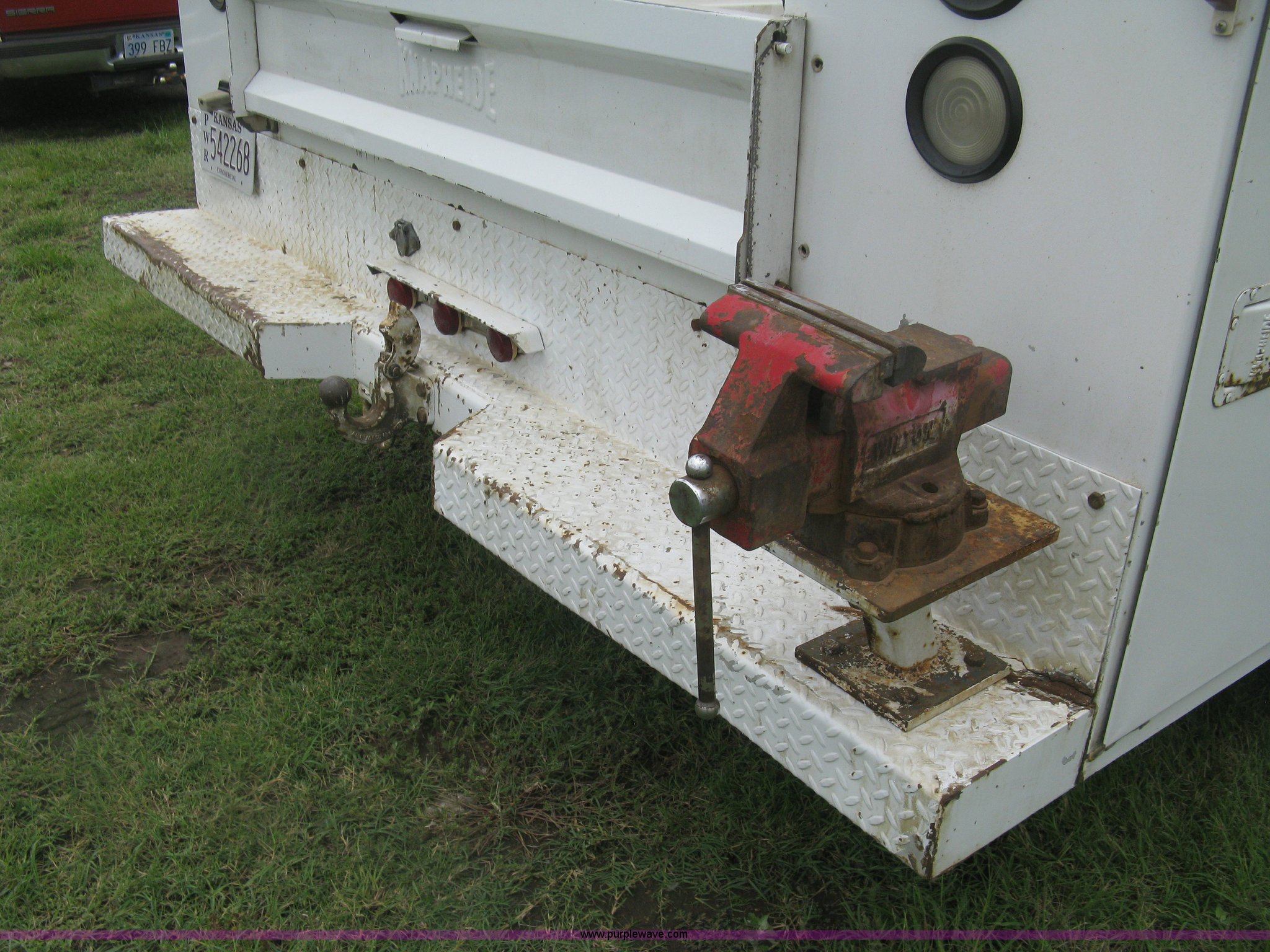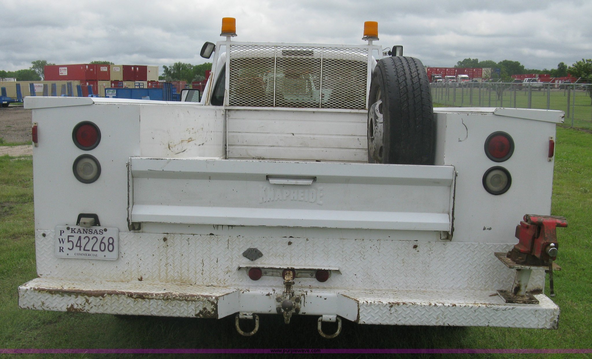 Purple Wave is selling a used Service Truck in Kansas. This item is a 2008 Ford F350 Super Duty XL utility truck with the following: 178,172 miles on odometer, 6.4L V8 OHV 32V turbo diesel engine, Automatic transmission, AC and heat, Tilt, Cruise, AM/FM/CD, Manual windows and locks, Vinyl interior, Knapheide utility bed, 11'L x 94"W, Step-up bumper, Headache rack, Wilton 6.5" vise, Amber strobe lights, Work lights, Front tow hooks, Pintle hitch, Trailer wiring, LT245/75R17 tires, Annual inspection completed in December 2014, Windshield chipped, Scratches and dents