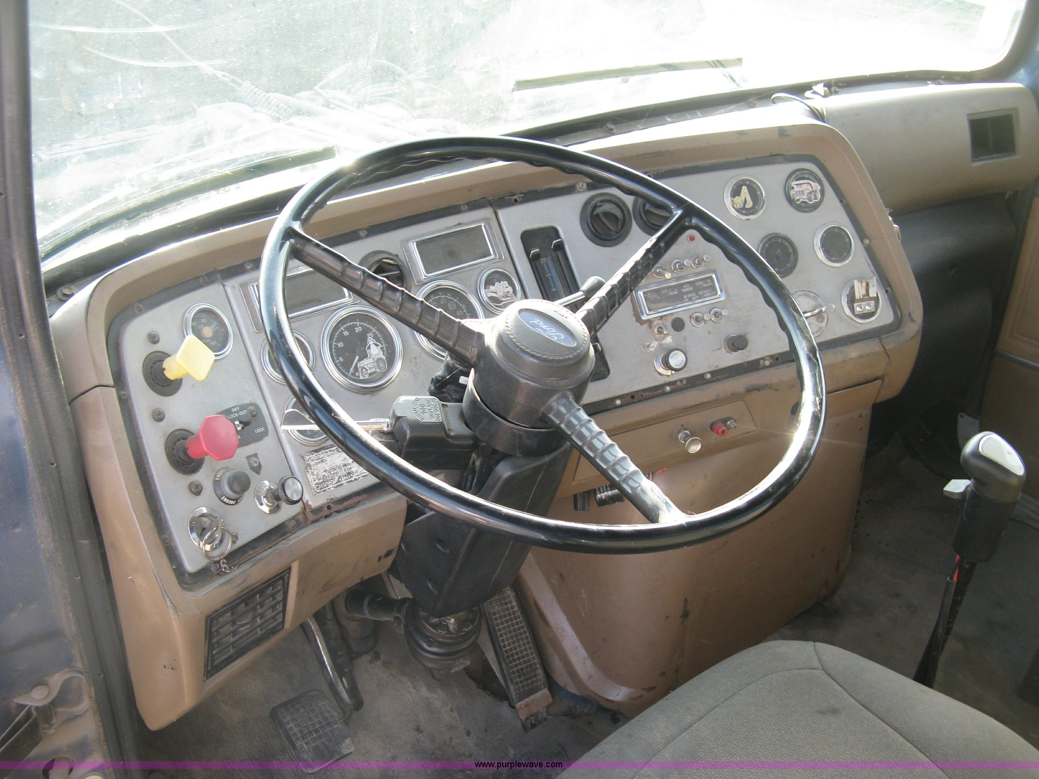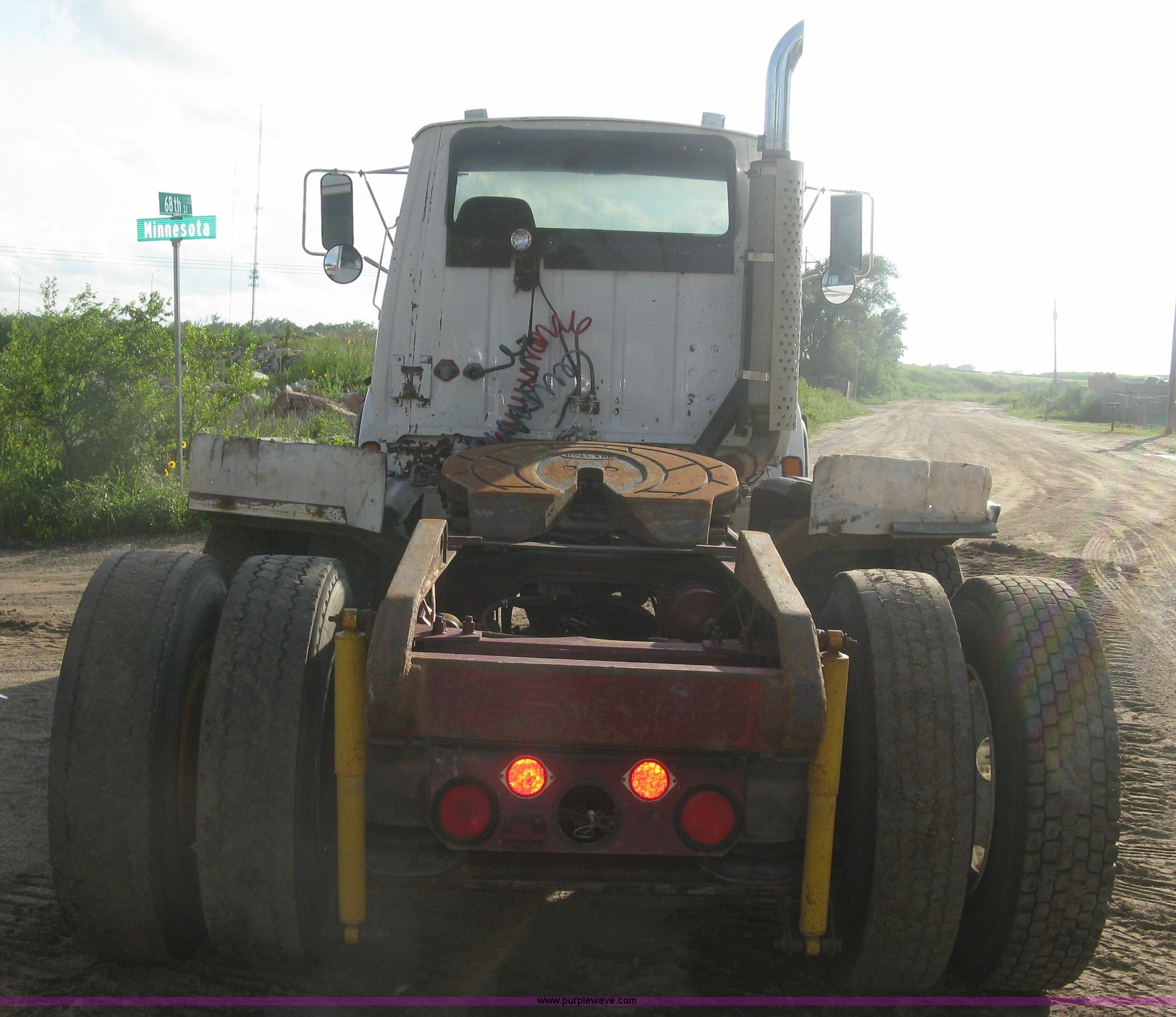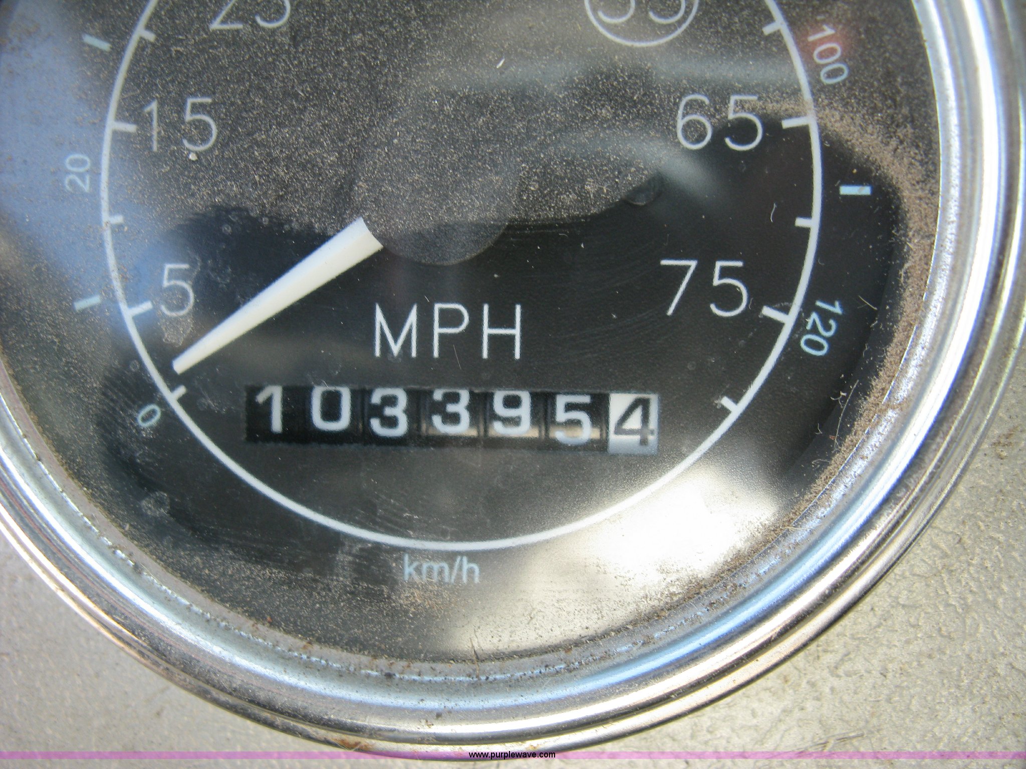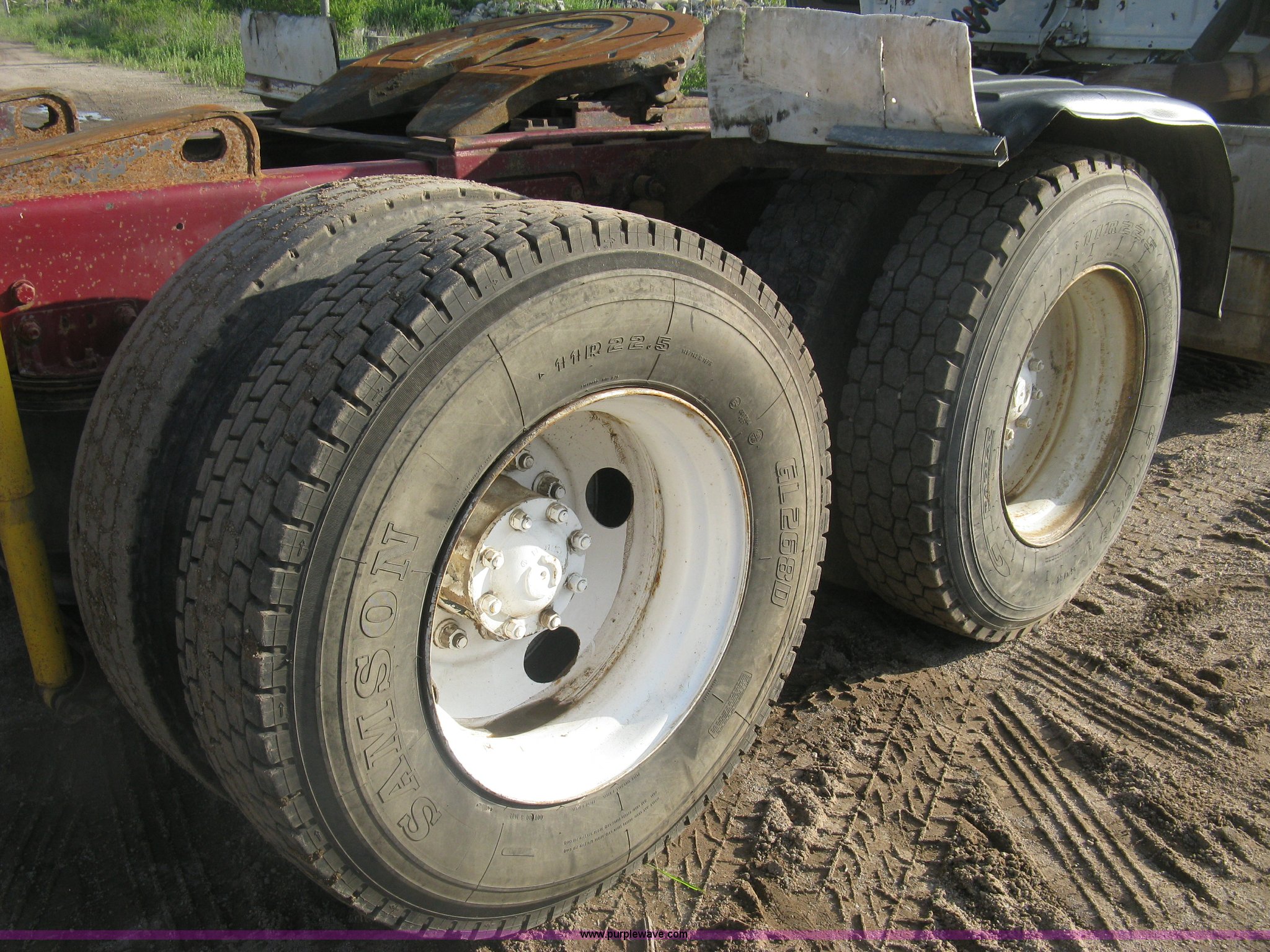 Purple Wave is selling a used Truck Tractor in Kansas. This item is a 1996 Ford LTA9000 Aero Max 106 semi truck with the following: 1,103,395 miles on odometer, Cummins N14 14.0L L6 turbo diesel engine, Eaton Fuller Road Ranger nine speed manual transmission, Tandem axles, Inter-axle differential lock, AC and heat, AM/FM/cassette, Cruise control, Heated driver's seat, Wire cut, Air ride cab, Front tow hooks, Dual fuel tanks, Aluminum deck plate, Sliding air operated fifth wheel plate, Half fenders, Single exhaust stack, Air suspension, Air brakes, 143" wheelbase, 11R22.5 tires, GVWR 52,000 lbs, FAWR 12,000 lbs, IAWR 20,000 lbs, RAWR 20,000 lbs, Annual inspection completed in July 2014, Exterior body damage, Rear of cab damaged, Rear window removed and covered with plexi-glass
