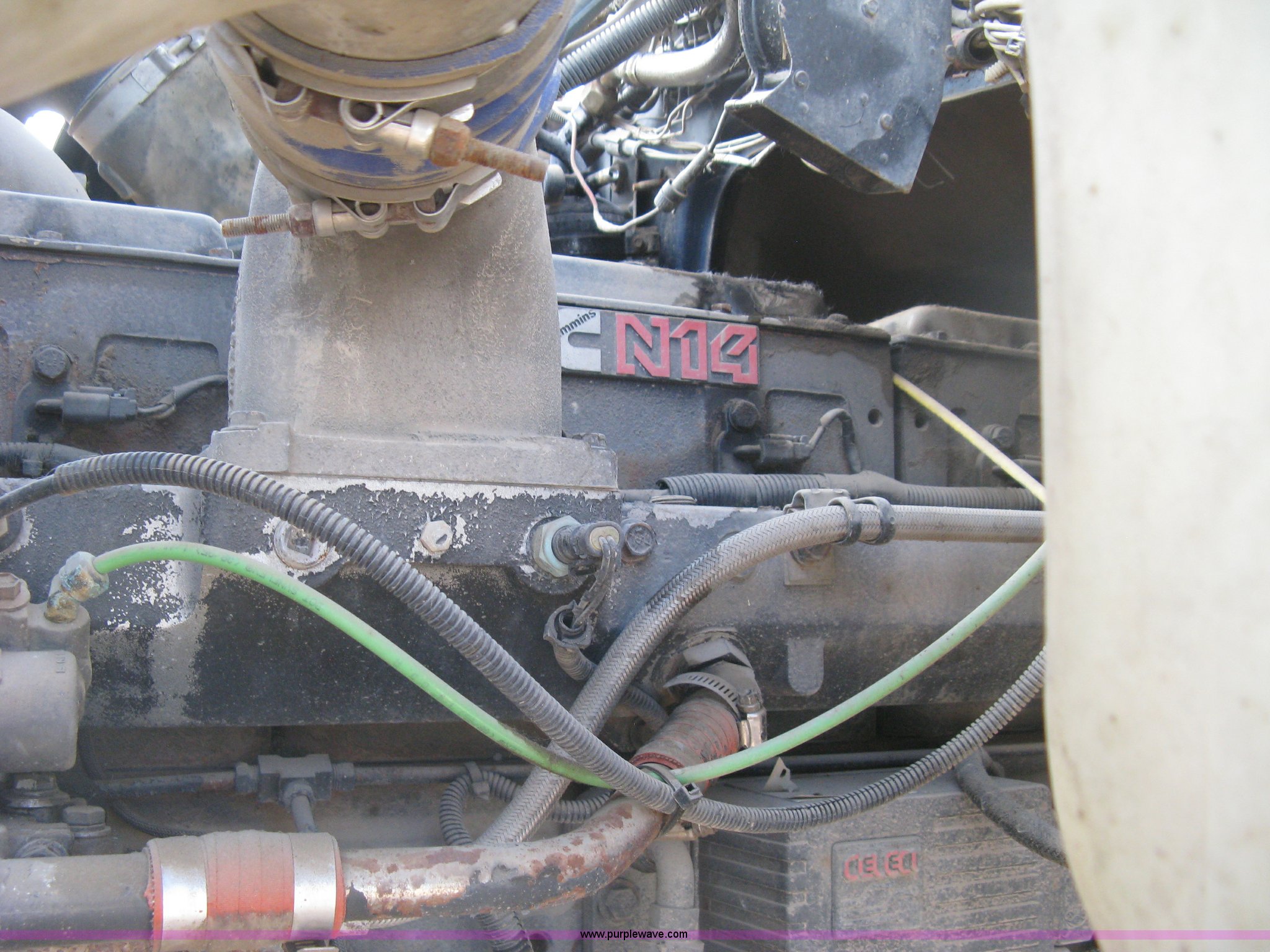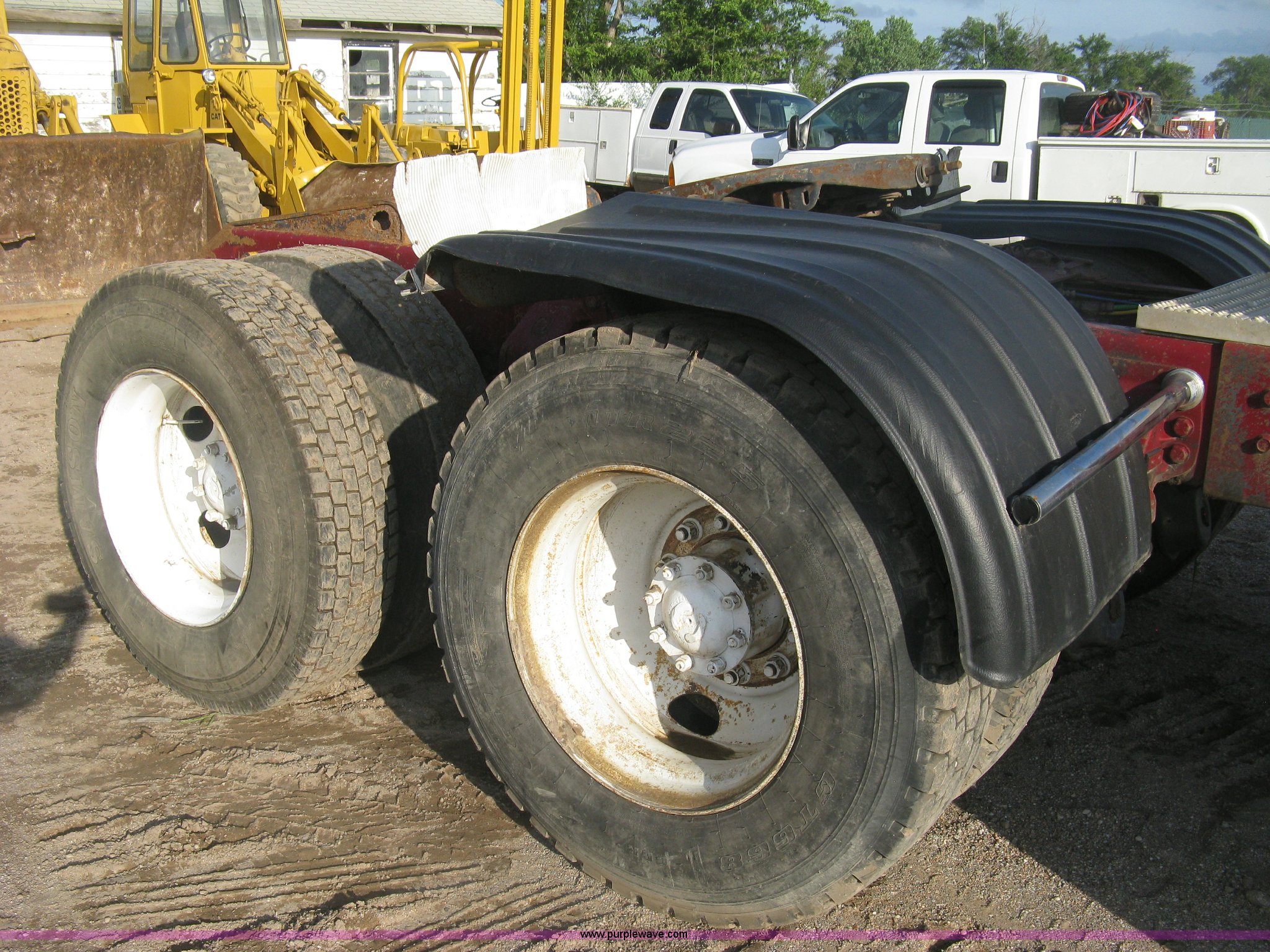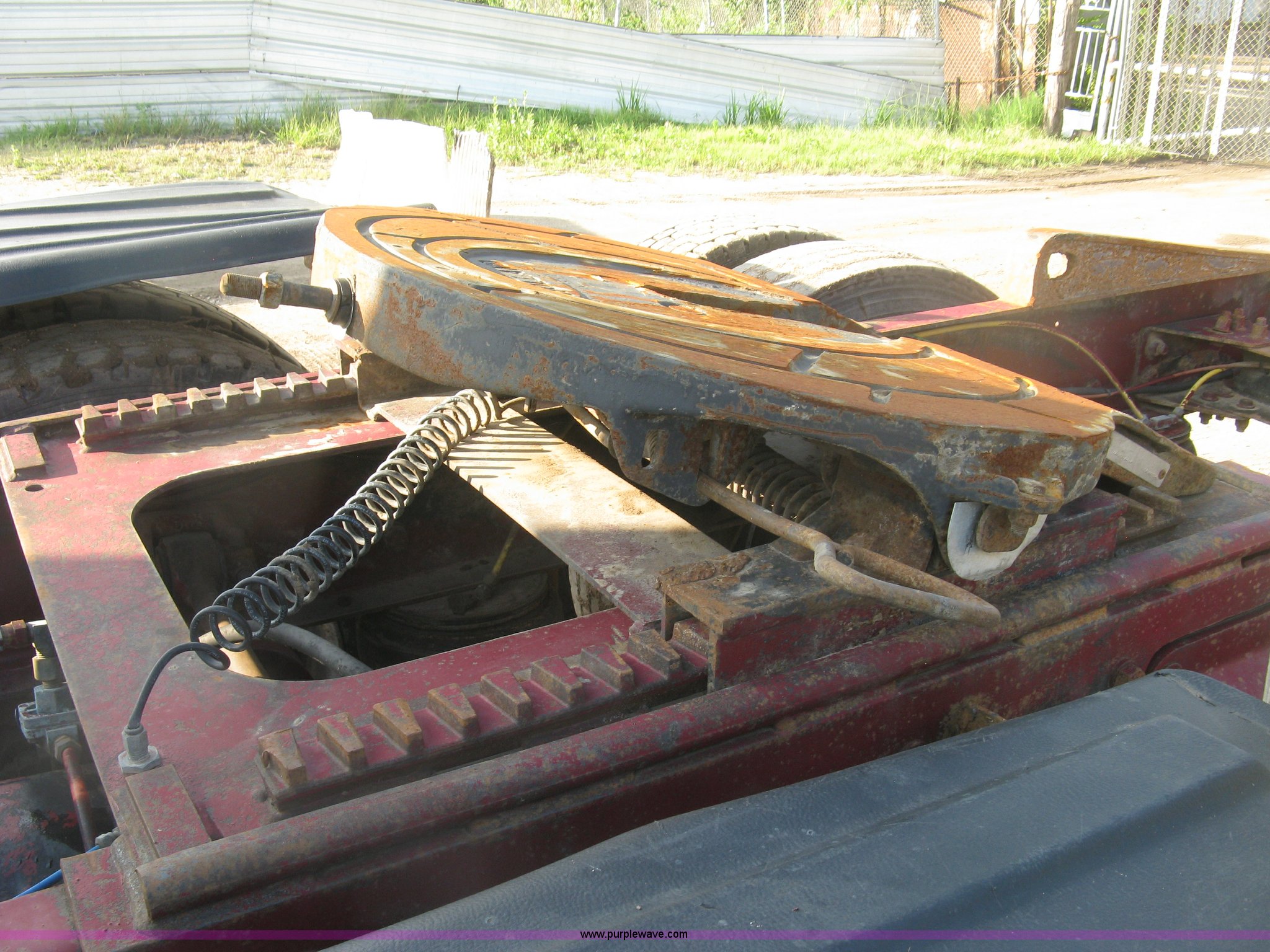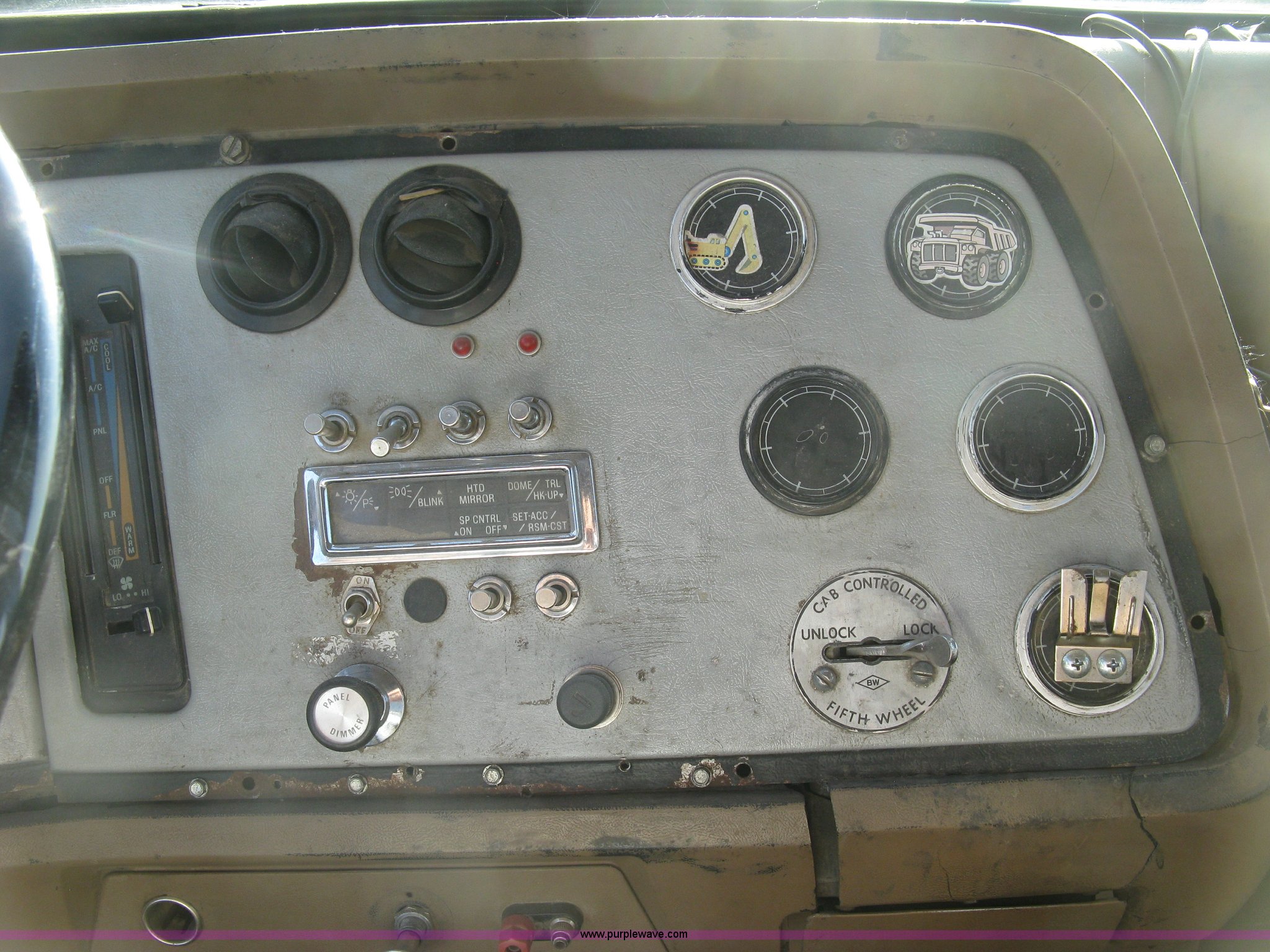 Purple Wave is selling a used Truck Tractor in Kansas. This item is a 1996 Ford LTA9000 Aero Max 106 semi truck with the following: 1,103,395 miles on odometer, Cummins N14 14.0L L6 turbo diesel engine, Eaton Fuller Road Ranger nine speed manual transmission, Tandem axles, Inter-axle differential lock, AC and heat, AM/FM/cassette, Cruise control, Heated driver's seat, Wire cut, Air ride cab, Front tow hooks, Dual fuel tanks, Aluminum deck plate, Sliding air operated fifth wheel plate, Half fenders, Single exhaust stack, Air suspension, Air brakes, 143" wheelbase, 11R22.5 tires, GVWR 52,000 lbs, FAWR 12,000 lbs, IAWR 20,000 lbs, RAWR 20,000 lbs, Annual inspection completed in July 2014, Exterior body damage, Rear of cab damaged, Rear window removed and covered with plexi-glass