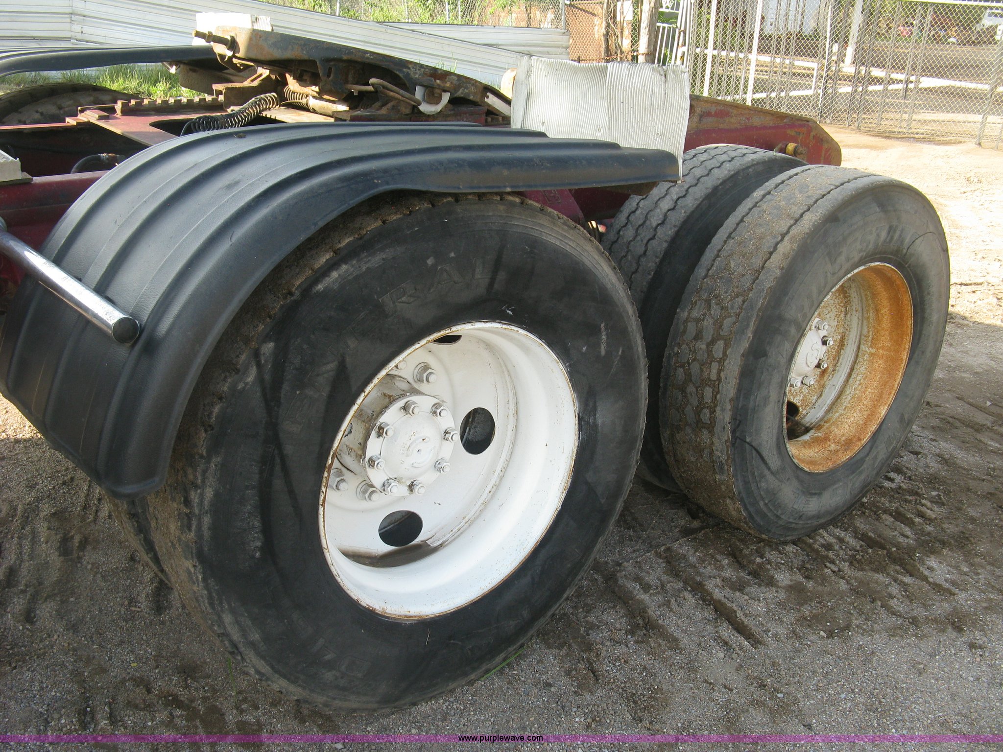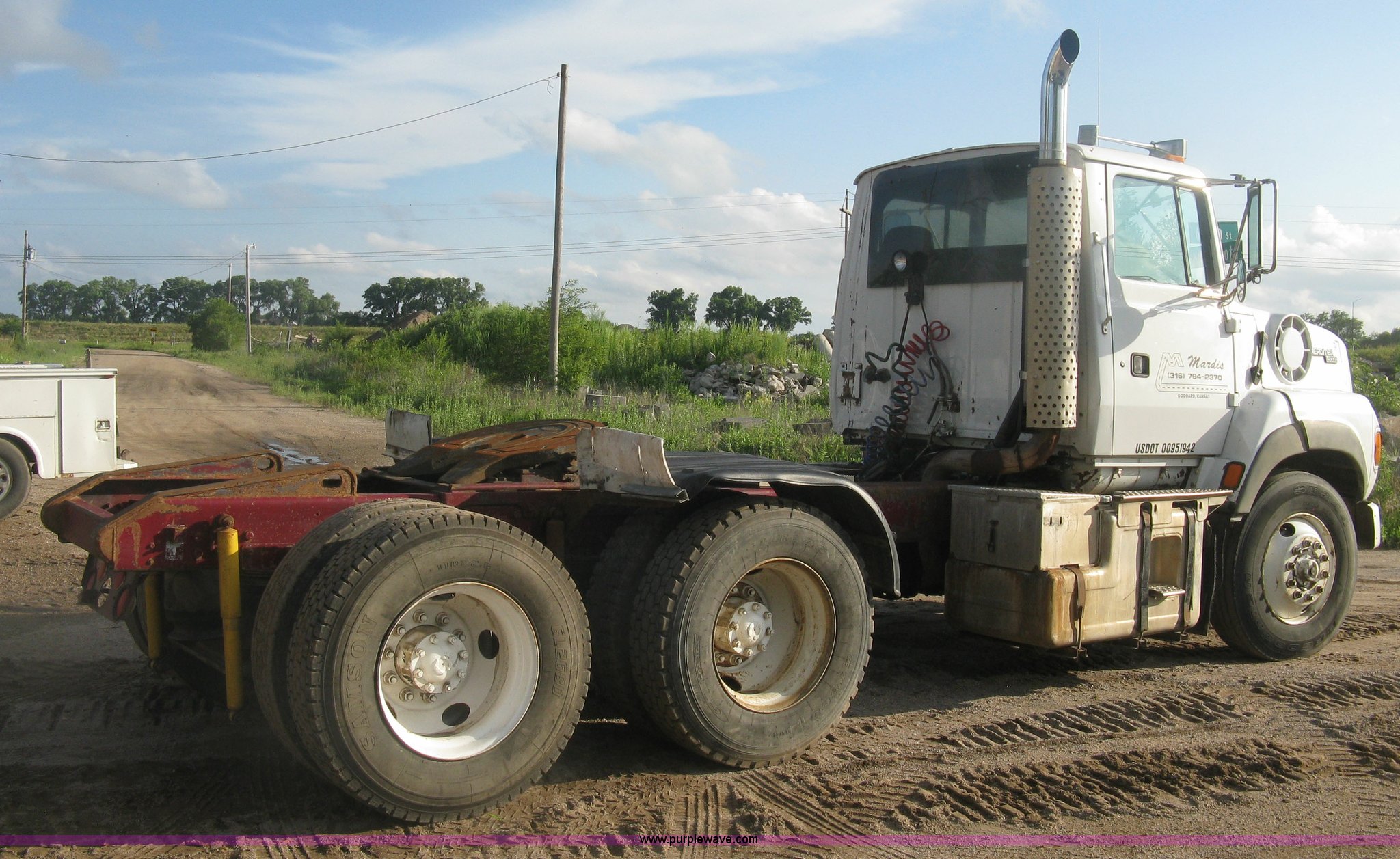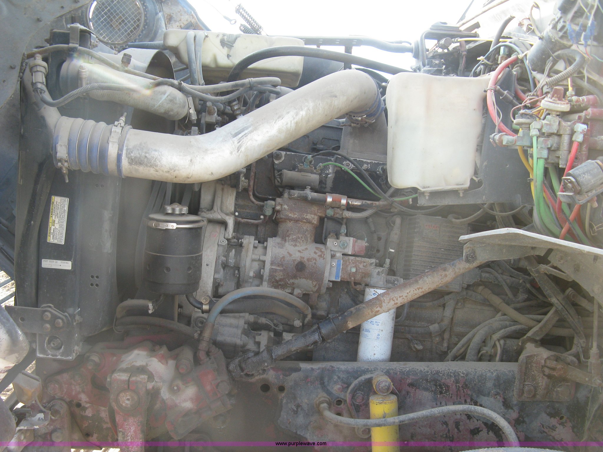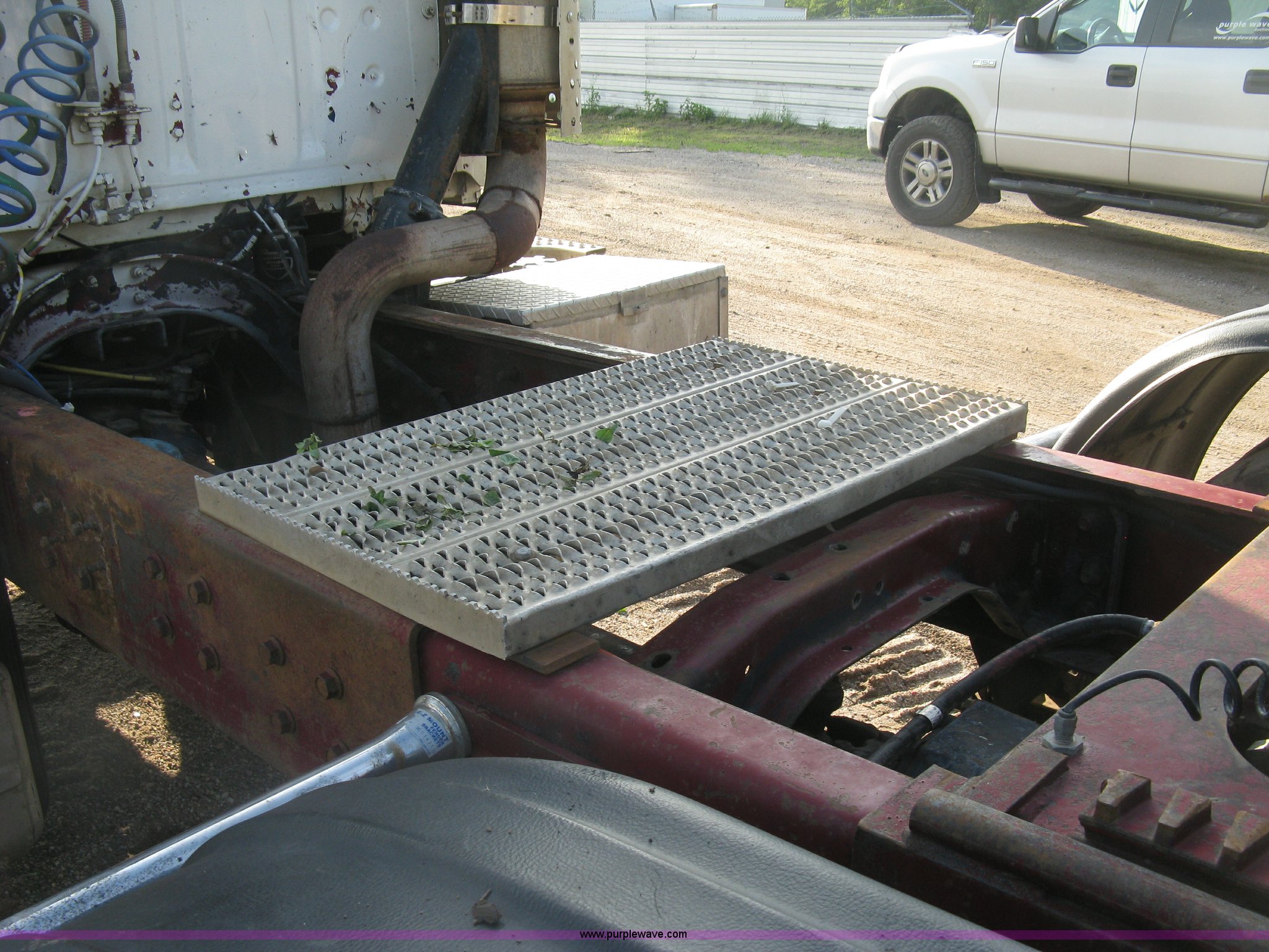 Purple Wave is selling a used Truck Tractor in Kansas. This item is a 1996 Ford LTA9000 Aero Max 106 semi truck with the following: 1,103,395 miles on odometer, Cummins N14 14.0L L6 turbo diesel engine, Eaton Fuller Road Ranger nine speed manual transmission, Tandem axles, Inter-axle differential lock, AC and heat, AM/FM/cassette, Cruise control, Heated driver's seat, Wire cut, Air ride cab, Front tow hooks, Dual fuel tanks, Aluminum deck plate, Sliding air operated fifth wheel plate, Half fenders, Single exhaust stack, Air suspension, Air brakes, 143" wheelbase, 11R22.5 tires, GVWR 52,000 lbs, FAWR 12,000 lbs, IAWR 20,000 lbs, RAWR 20,000 lbs, Annual inspection completed in July 2014, Exterior body damage, Rear of cab damaged, Rear window removed and covered with plexi-glass