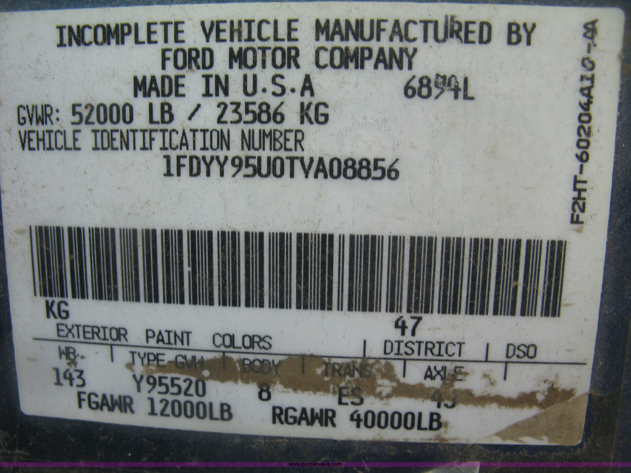 1996 Ford LTA9000 Aero Max 106 semi truck. 1,103,395 miles on odometer, Cummins N14 14.0L L6 turbo diesel engine, Eaton Fuller Road Ranger nine speed manual transmission, Tandem axles, Inter-axle differential lock, AC and heat, AM/FM/cassette, Cruise control, Heated driver's seat Wire cut, Air ride cab, Front tow hooks, Dual fuel tanks, Aluminum deck plate, Sliding air operated fifth wheel plate, Half fenders, Single exhaust stack, Air suspension, Air brakes, 143" wheelbase, 11R22.5 tires, GVWR 52,000 lbs, FAWR 12,000 lbs, IAWR 20,000 lbs, RAWR 20,000 lbs, Annual inspection completed in July 2014, Exterior body damage, Rear of cab damaged, Rear window removed and covered with plexi-glass. 1FDYY95U0TVA08856. Mardis Industries. 6900 S. Minnesota. Wichita, KS 67216
