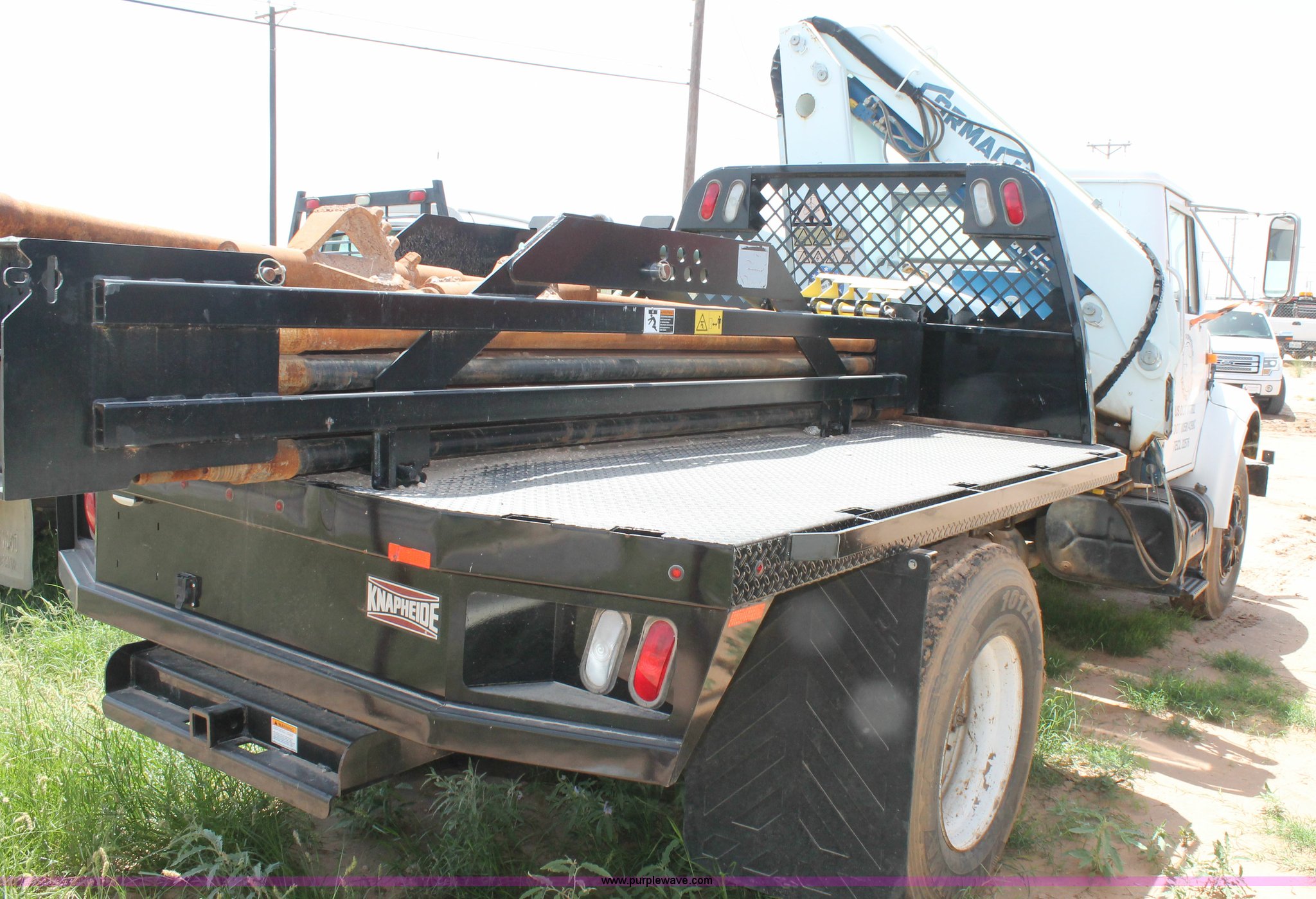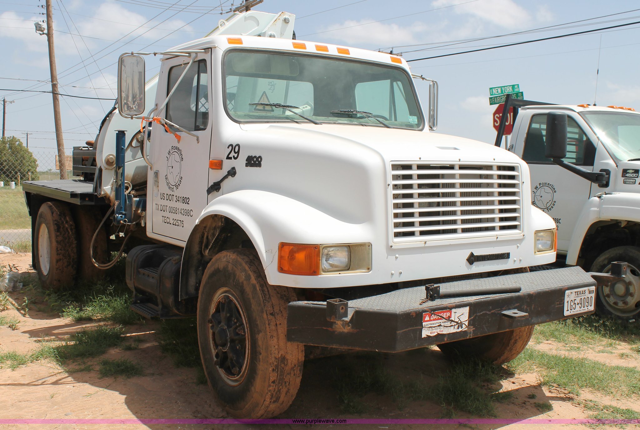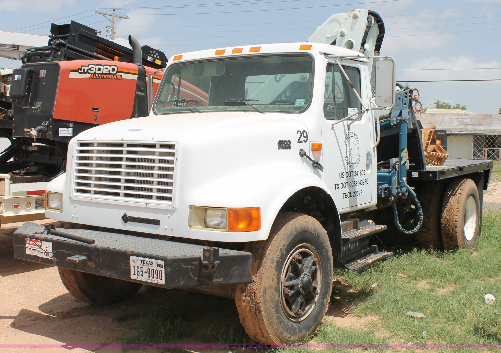 Purple Wave is selling a used Crane Truck in Texas. This item is a 1994 International 4900 crane truck with the following: 35,375 miles on odometer, 8,219 hours on meter, International DT466 7.6L L6 turbo diesel engine, Eight speed manual transmission, AC and heat, 12'L x 8'W utility bed, Gormagh knuckle boom, Serial 8700E2, Spring suspension, Hydraulic brakes, 170" wheelbase, 11R22.5 tires, GVWR 33,000 lbs, FAWR 12,000 lbs, RAWR 31,000 lbs, Unit# 29