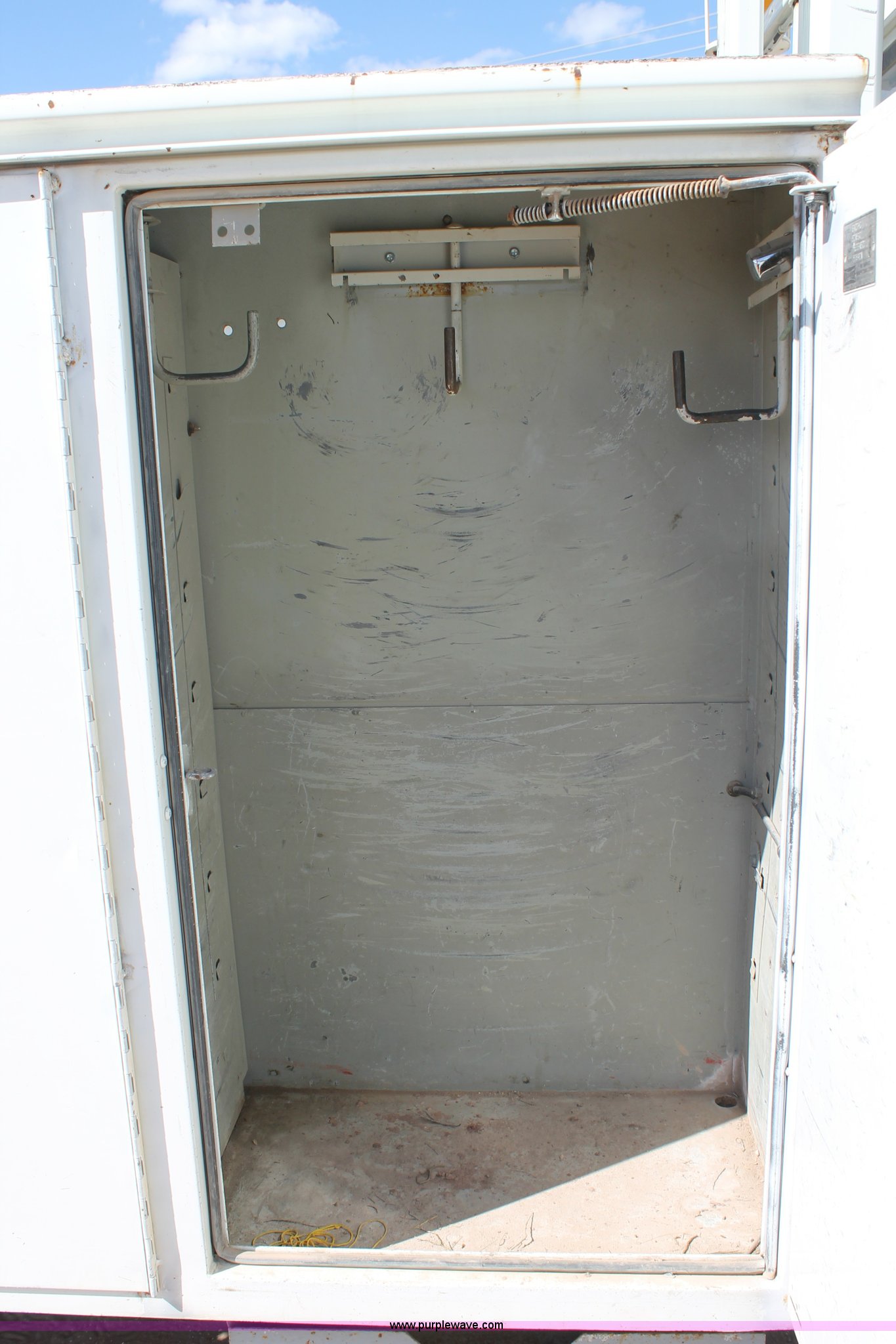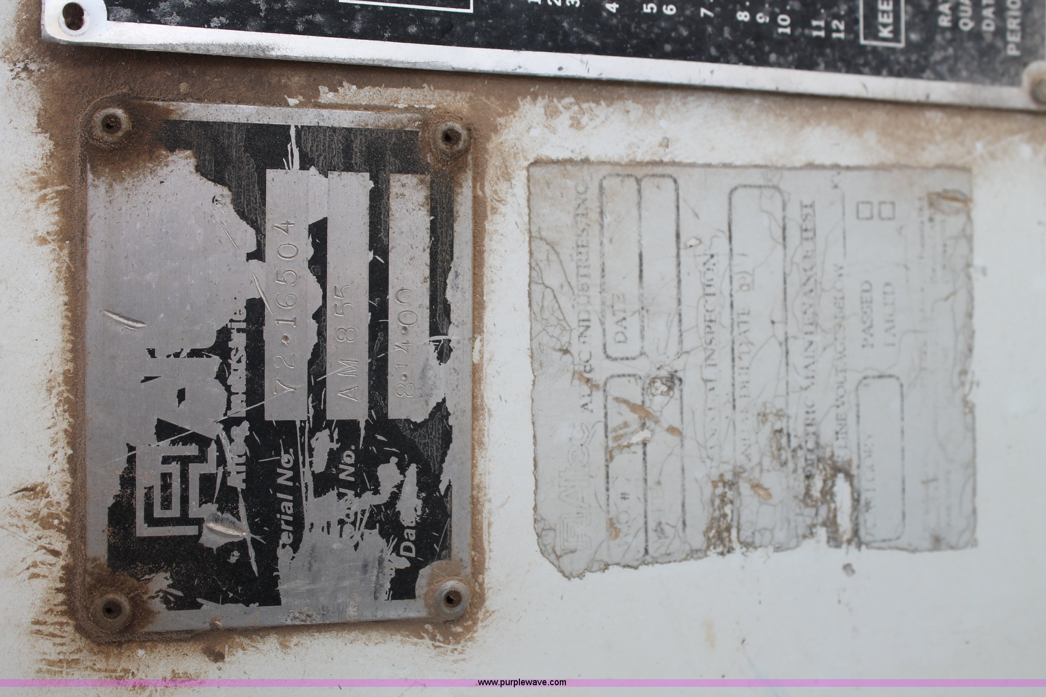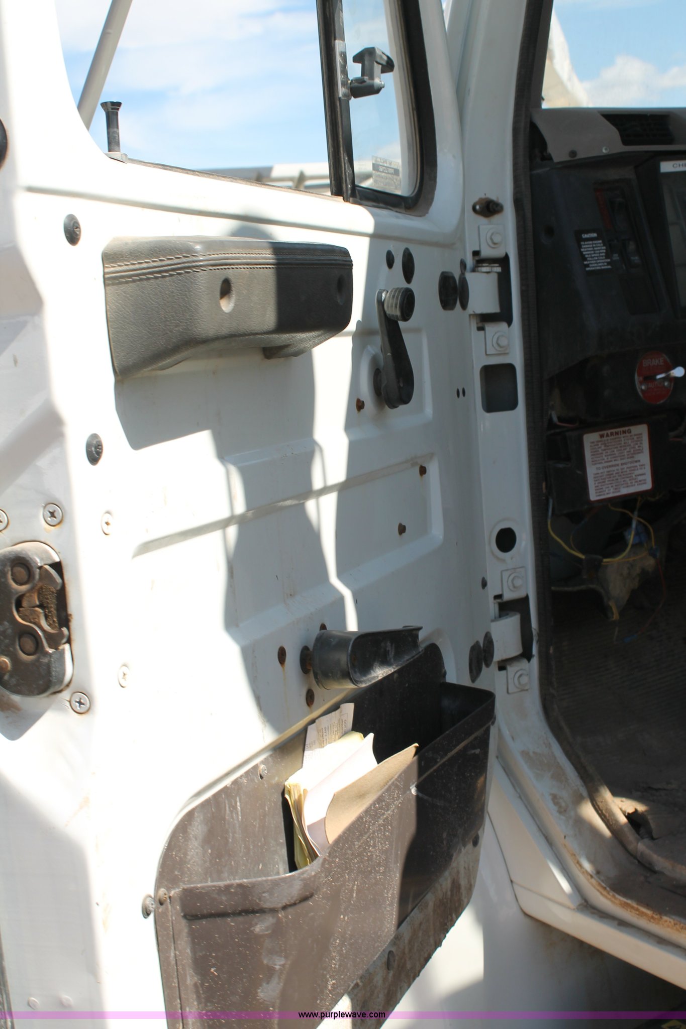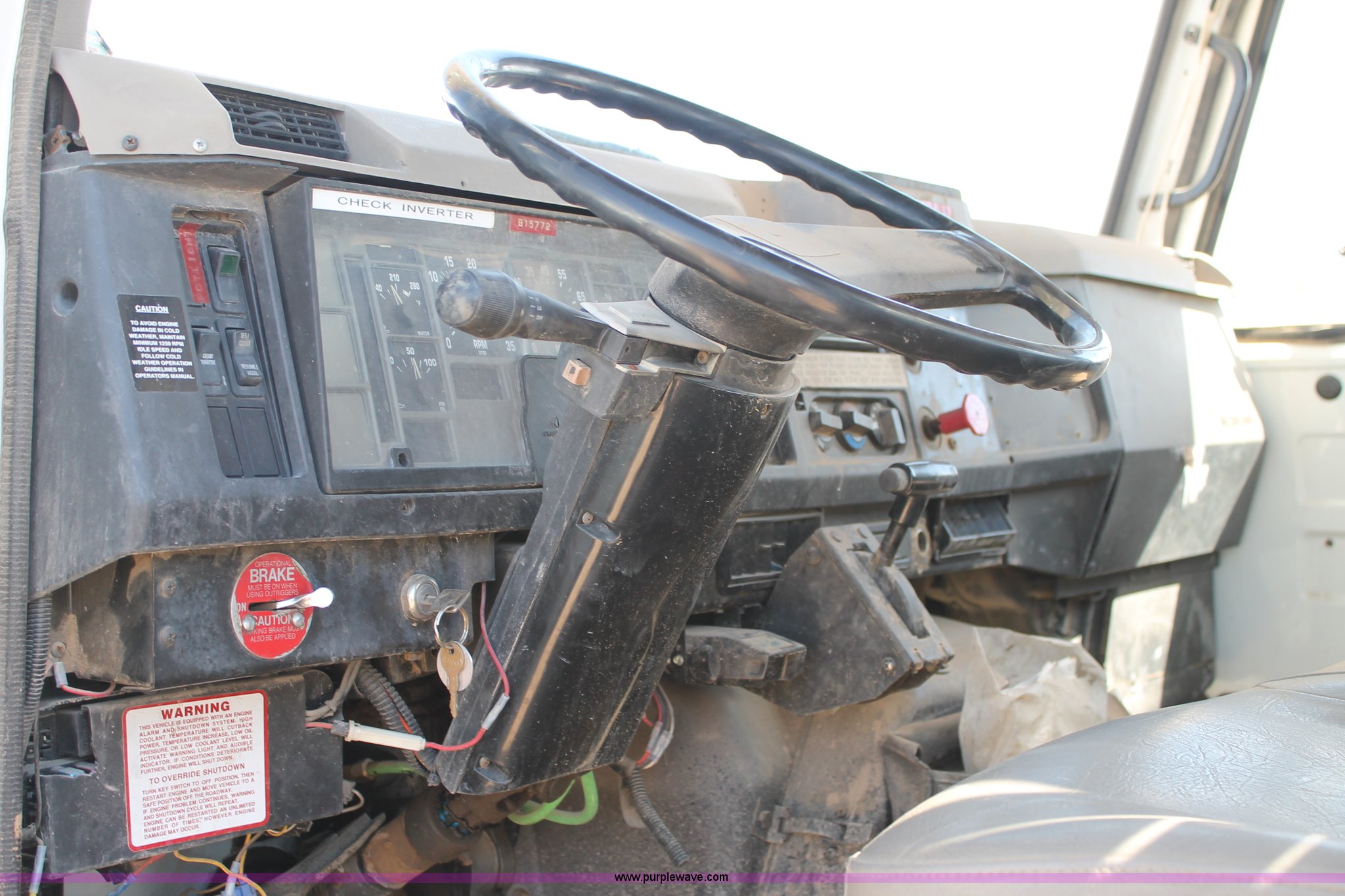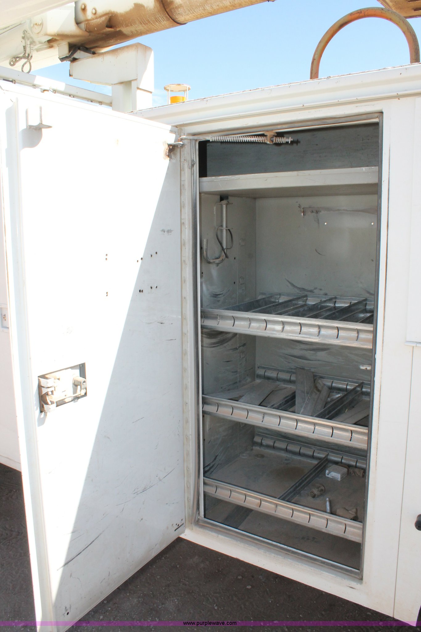 Purple Wave is selling a used Bucket Truck in Texas. This item is a 2001 International 4700 bucket truck with the following: 89,658 miles on odometer, International DT466E 7.6L L6 turbo diesel engine, Automatic transmission, AC and heat, AM/FM/cassette, Suspension seat, Service bed, Shelving, Slide-out drawers, Utility rack, Compartment lights, Enclosed body, Altec AM855 boom, 55'L boom, (4) outriggers, 350 lbs per ft. max lift capacity, Double man basket, 55' max lift height, Ground and platform controls, Material handler, Pole guide, Remote control, Articulating insulated boom, Serial 0600BB2097,, Pintle hitch, Trailer wiring, PTO, Spring suspension, Air brakes, 188" wheelbase, 11R22.5 tires, GVWR 33,000 lbs, Unit# 313