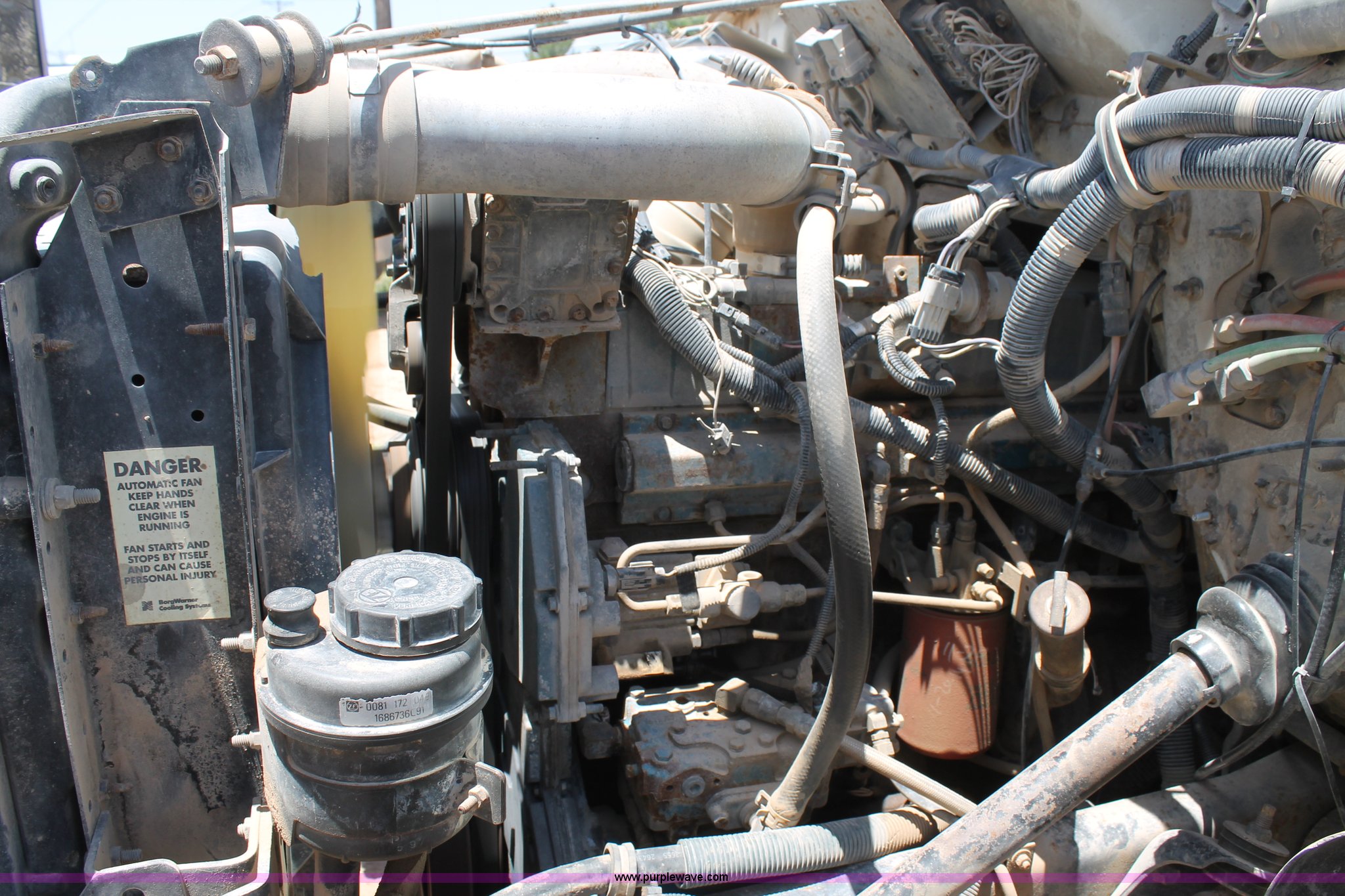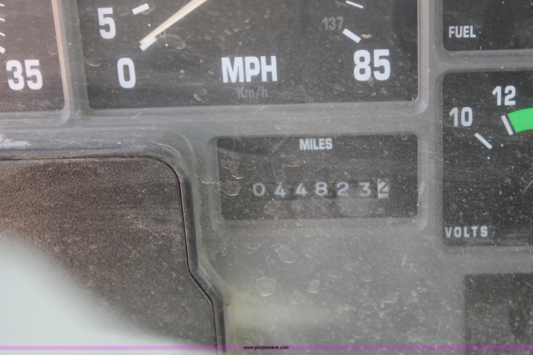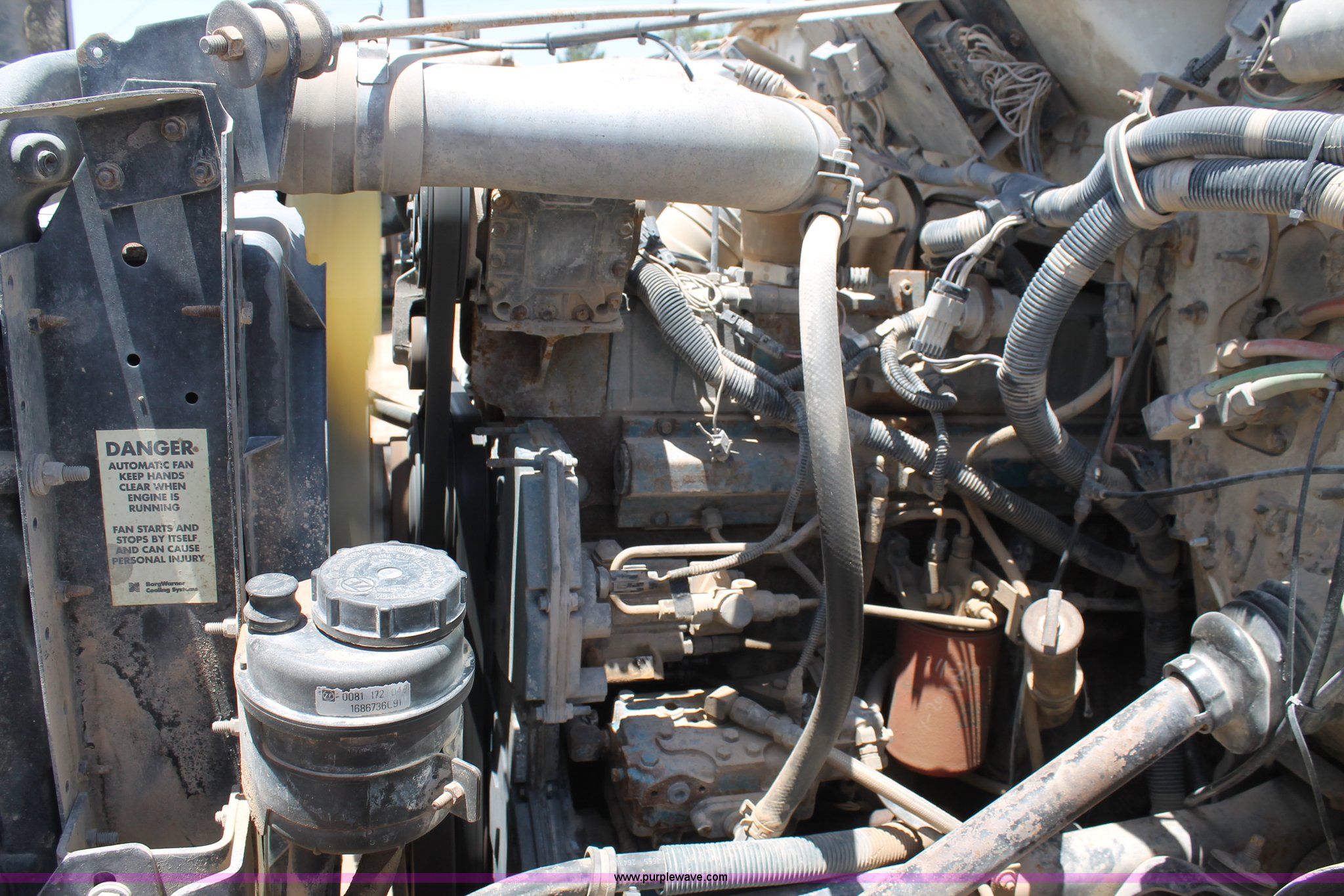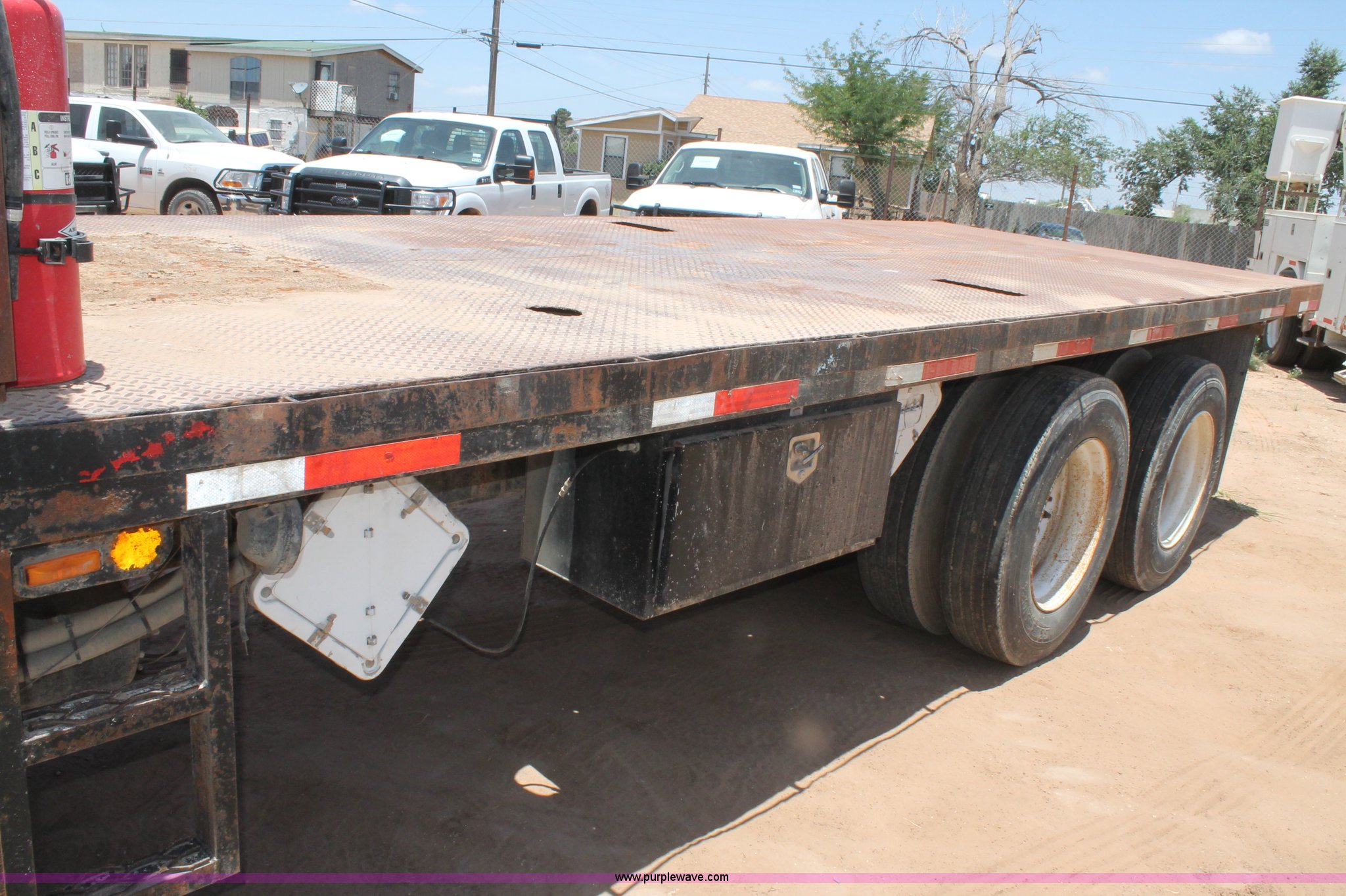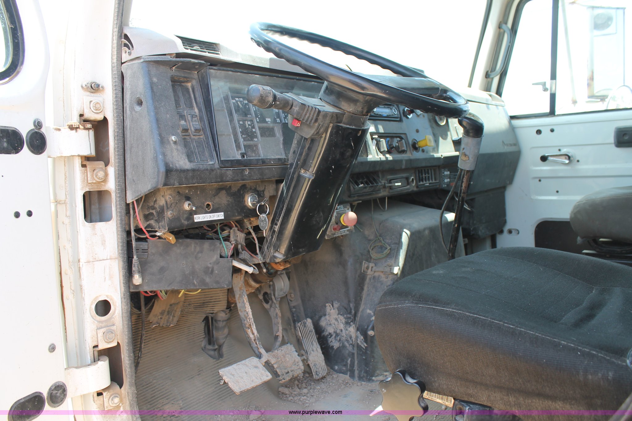Purple Wave is selling a used Flat Bed Truck in Texas. This item is a 1998 International 4900 flatbed truck with the following: 44,823 miles on odometer, International DT530 Power 8.7L L6 diesel engine, Eaton Fuller nine speed manual transmission, AC and heat, AM/FM/CD, Suspension seat, 22'L flatbed, 4' headache rack, Single exhaust stack, Dual fuel tanks, Pintle hitch, Trailer wiring, Spring suspension, Air brakes, 236" wheelbase, 11R22.5 tires, Unit# 702