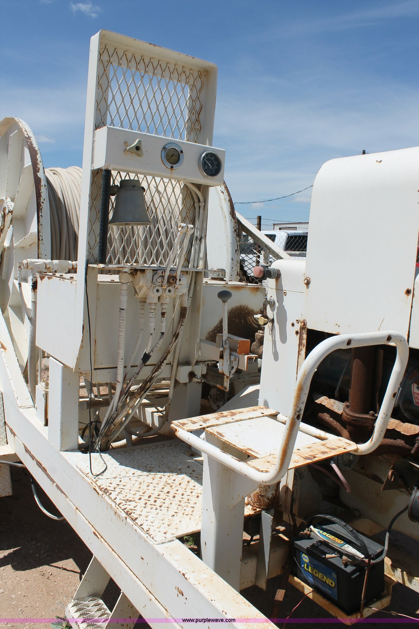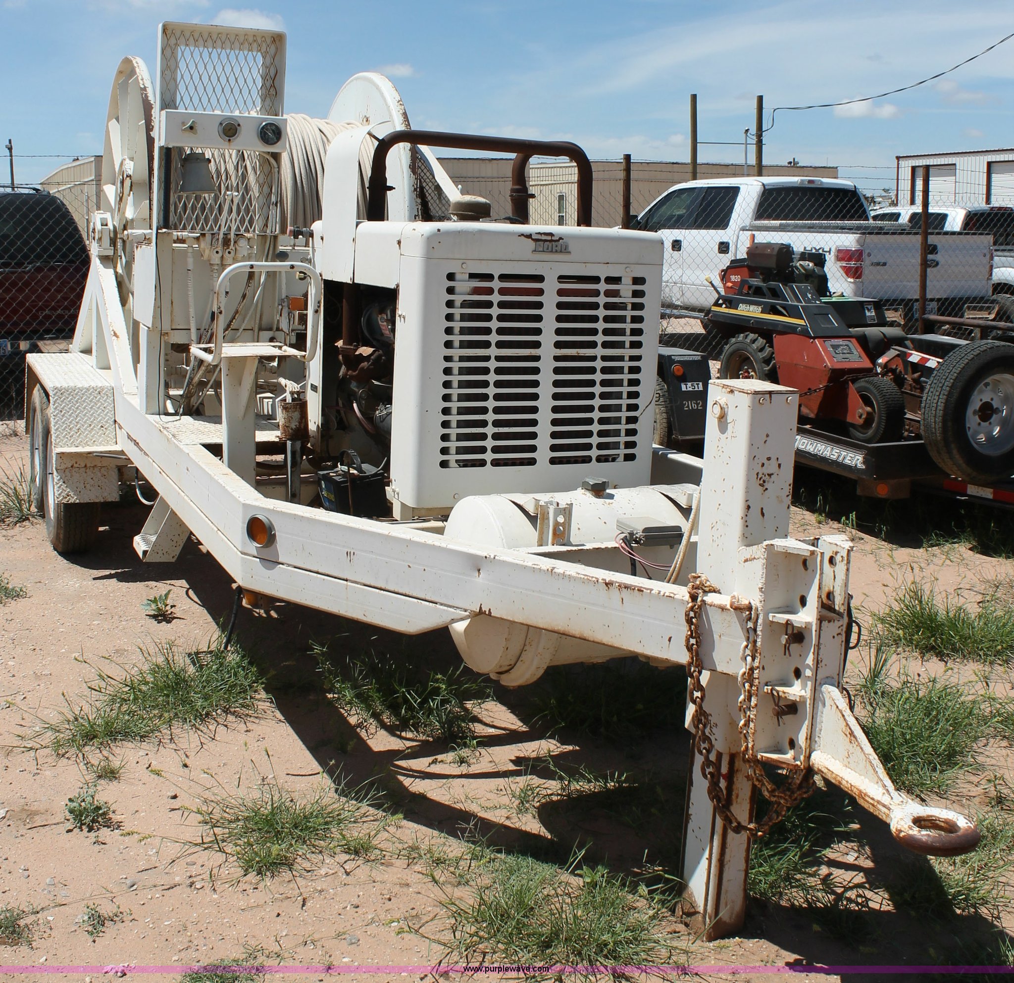 1975 Brewer Tensioner rope reel trailer. 21'L x 66"W, Ford eight cylinder gas engine, Chain drive reel, Adjustable pintle hitch, Spring suspension, 7.00R15 tires. Title distribution may be delayed up to 14 days from verification of funds. 122. JW Powerline. 700 S. Fairgrounds Road. Midland, TX 79701