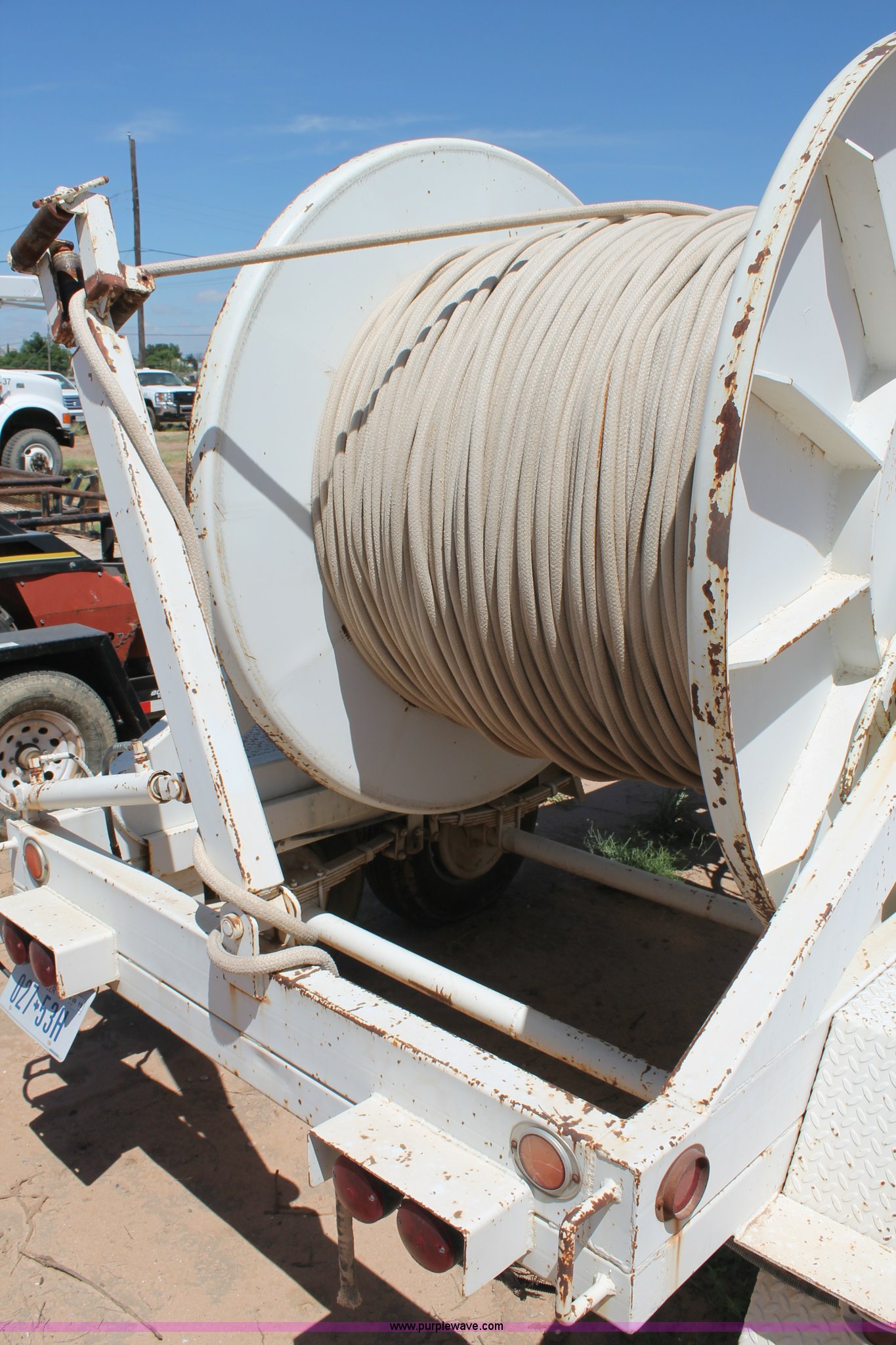 Purple Wave is selling a used Reel Trailer in Texas. This item is a 1975 Brewer Tensioner rope reel trailer with the following: 21'L x 66"W, Ford eight cylinder gas engine, Chain drive reel, Adjustable pintle hitch, Spring suspension, 7.00R15 tires