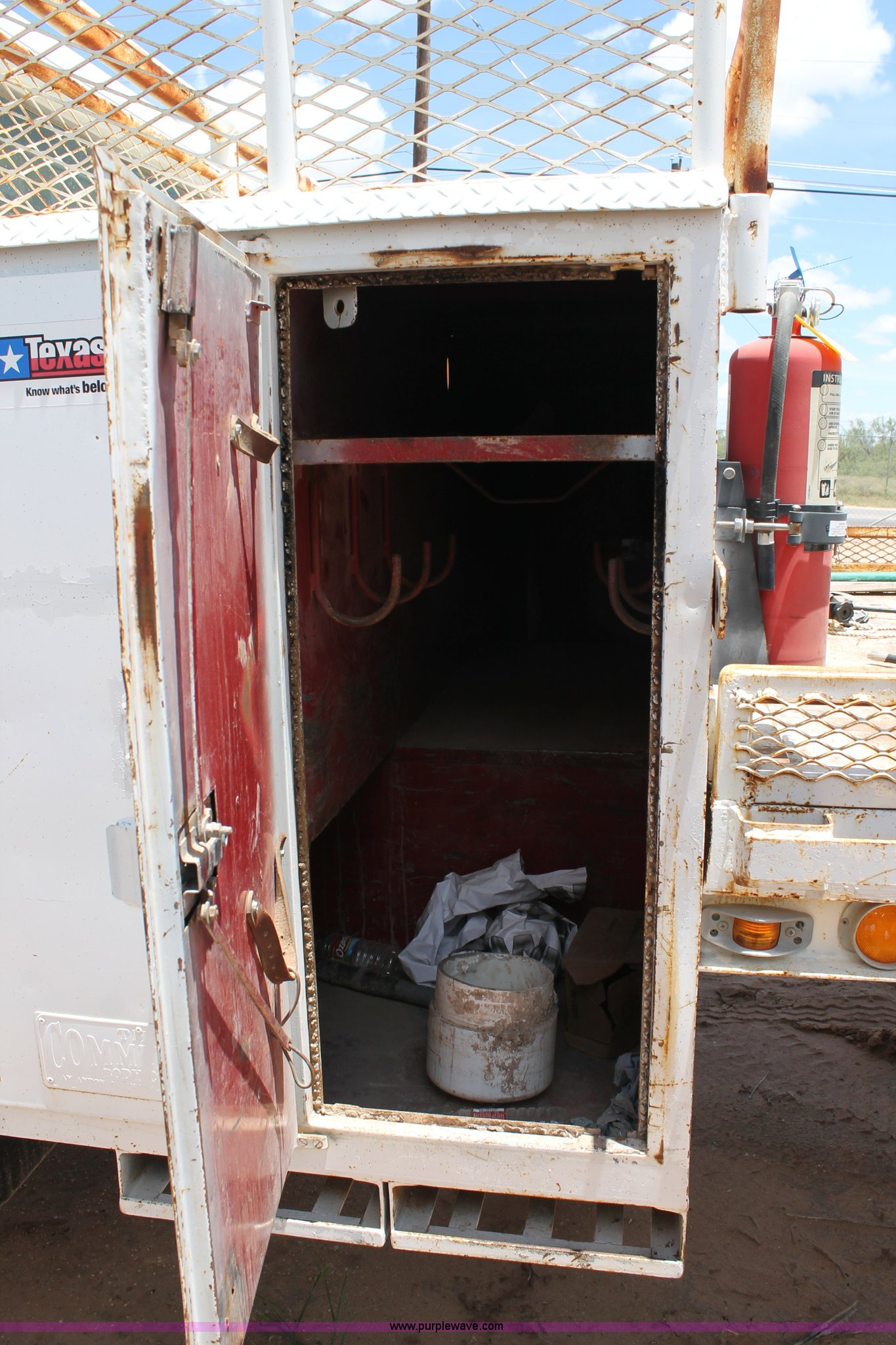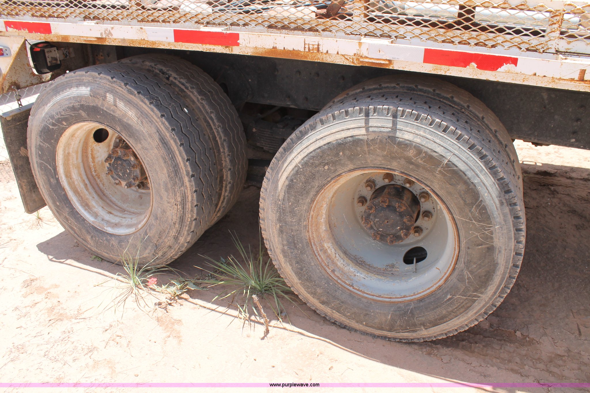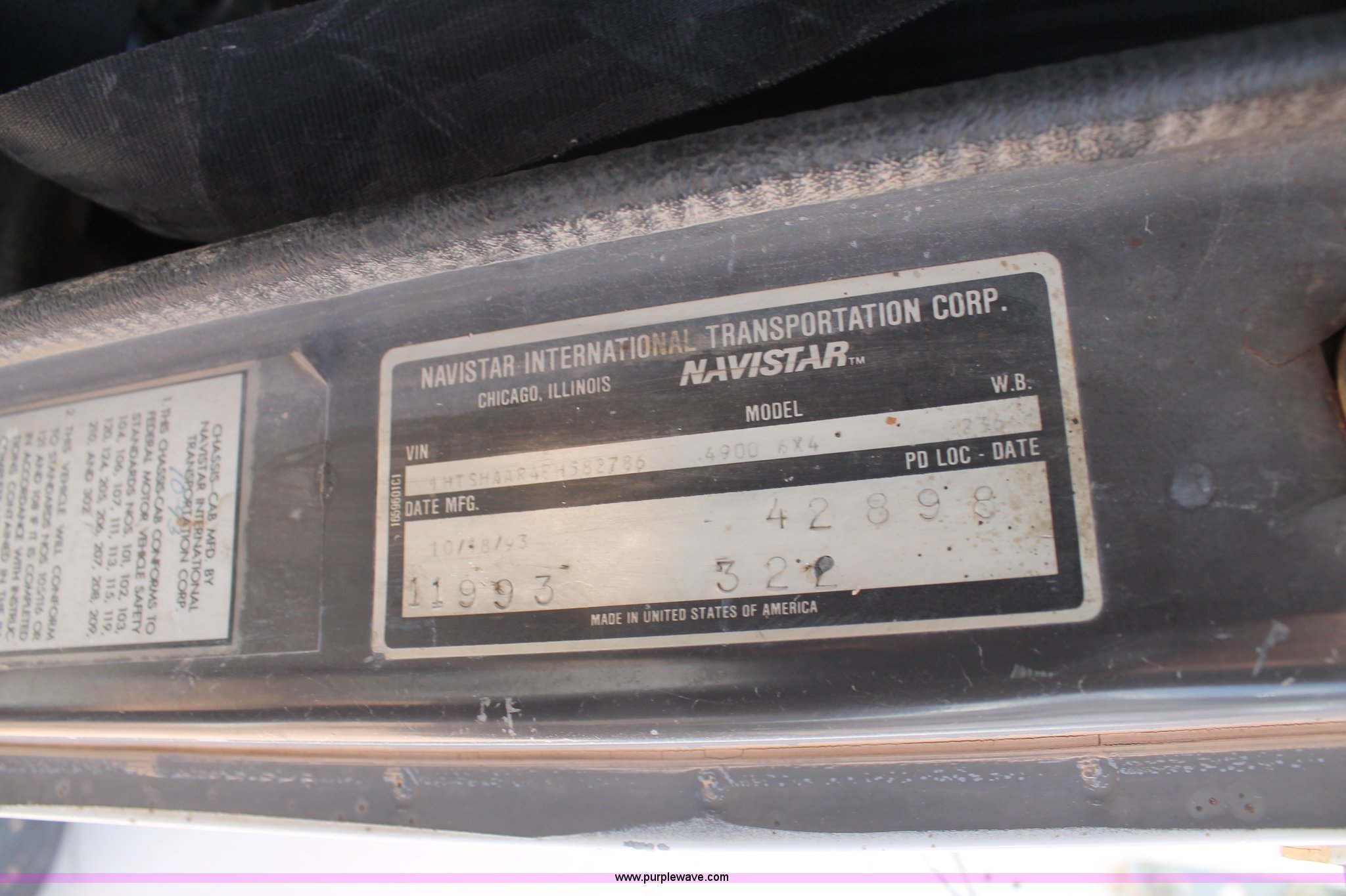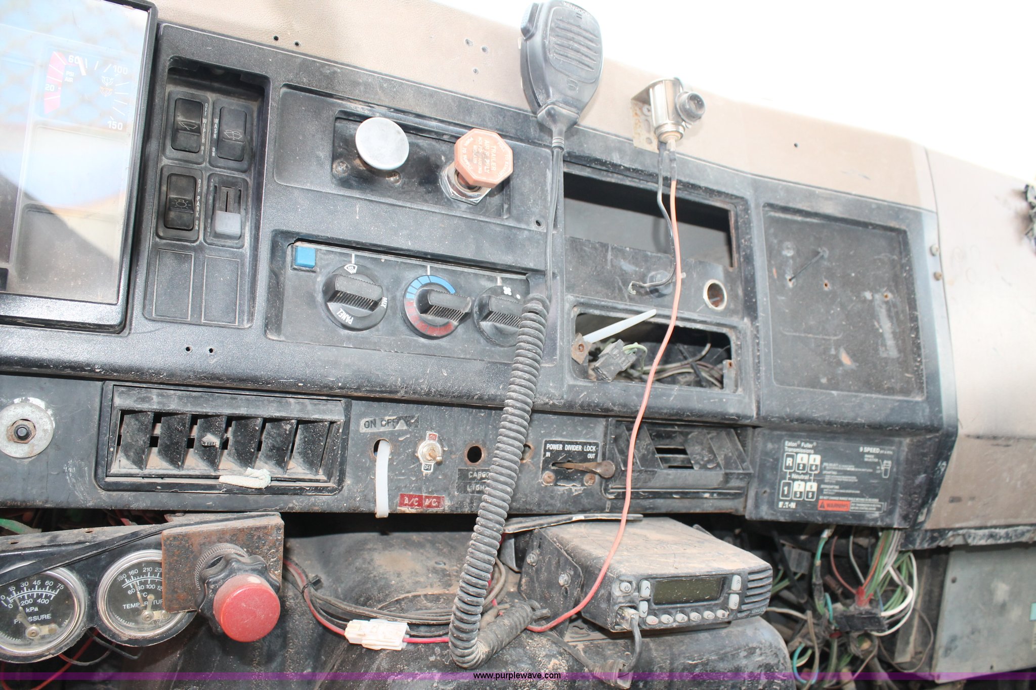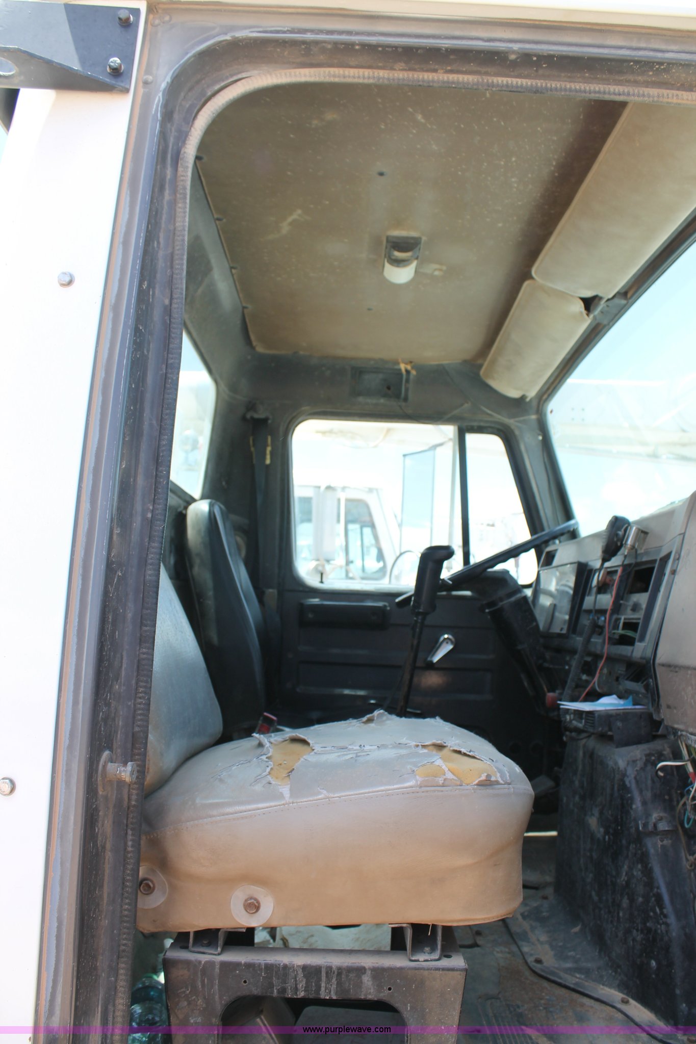 Purple Wave is selling a used Flat Bed Truck in Texas. This item is a 1994 International 4900 flatbed truck with the following: Unknown miles on odometer, International DT466 six cylinder diesel engine, Nine speed manual transmission, AC and heat, 18' service bed, Shelving, Slide-out drawers, Utility rack, Dual fuel tanks, Pintle hitch, Trailer wiring, Spring suspension, Air brakes, 236" wheelbase, 11R22.5 tires, Unit# 102