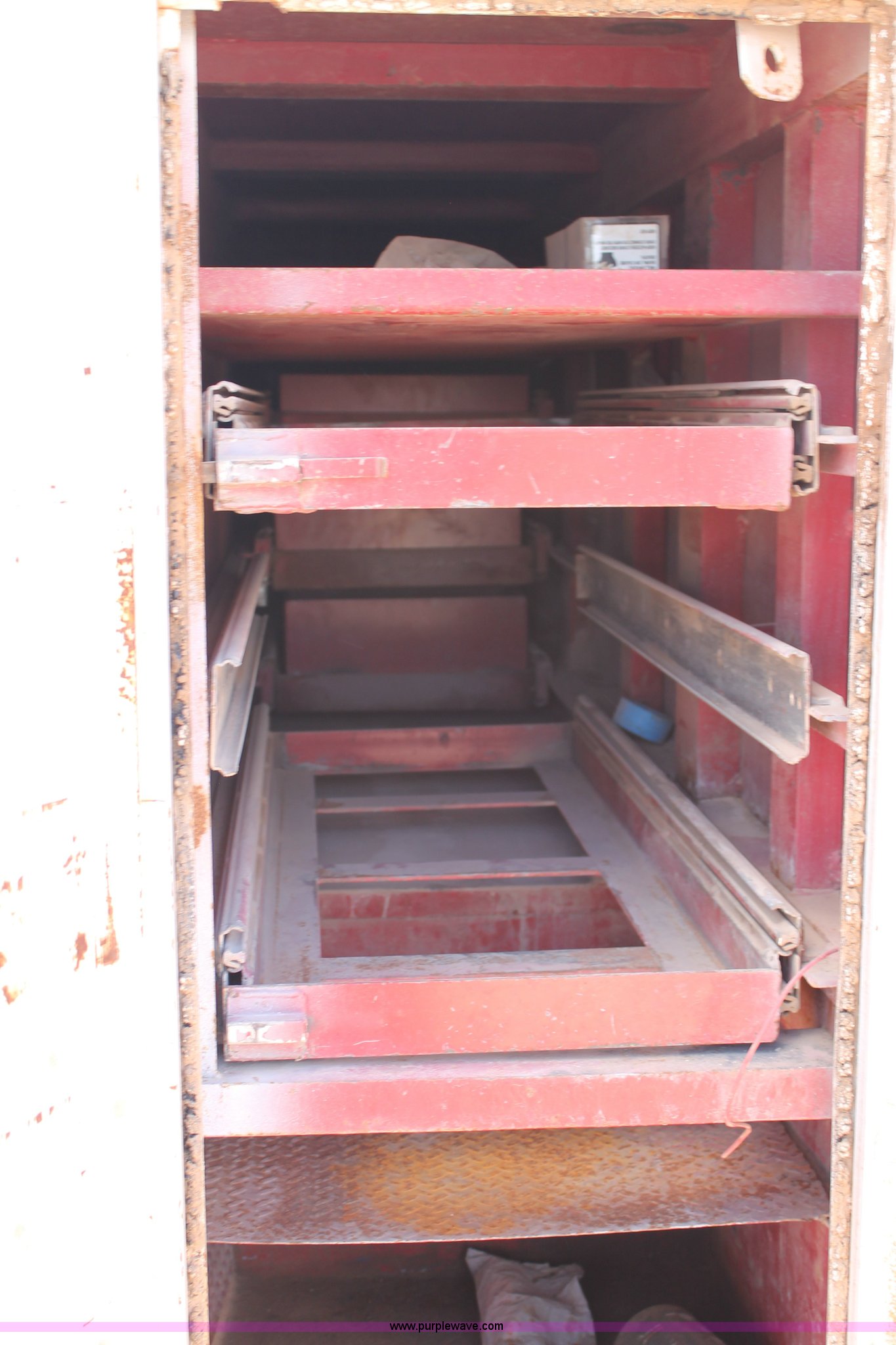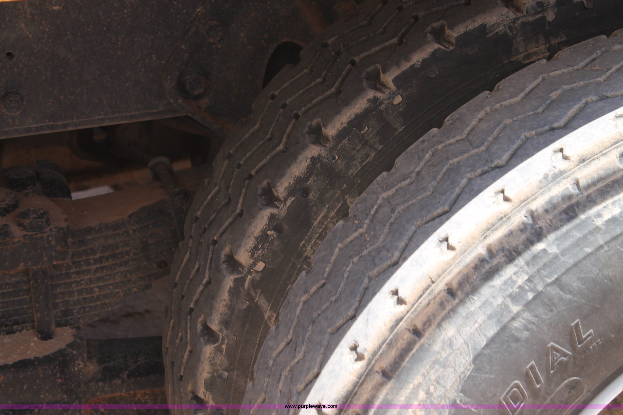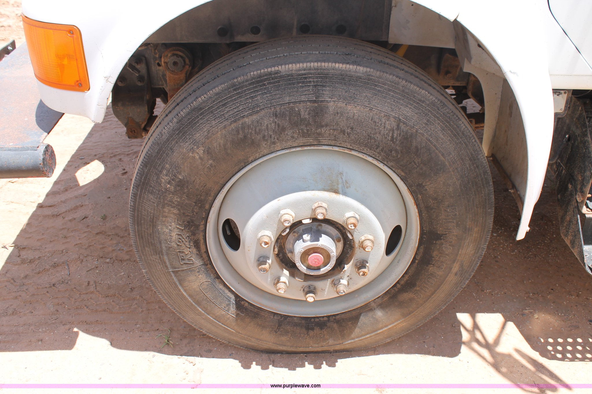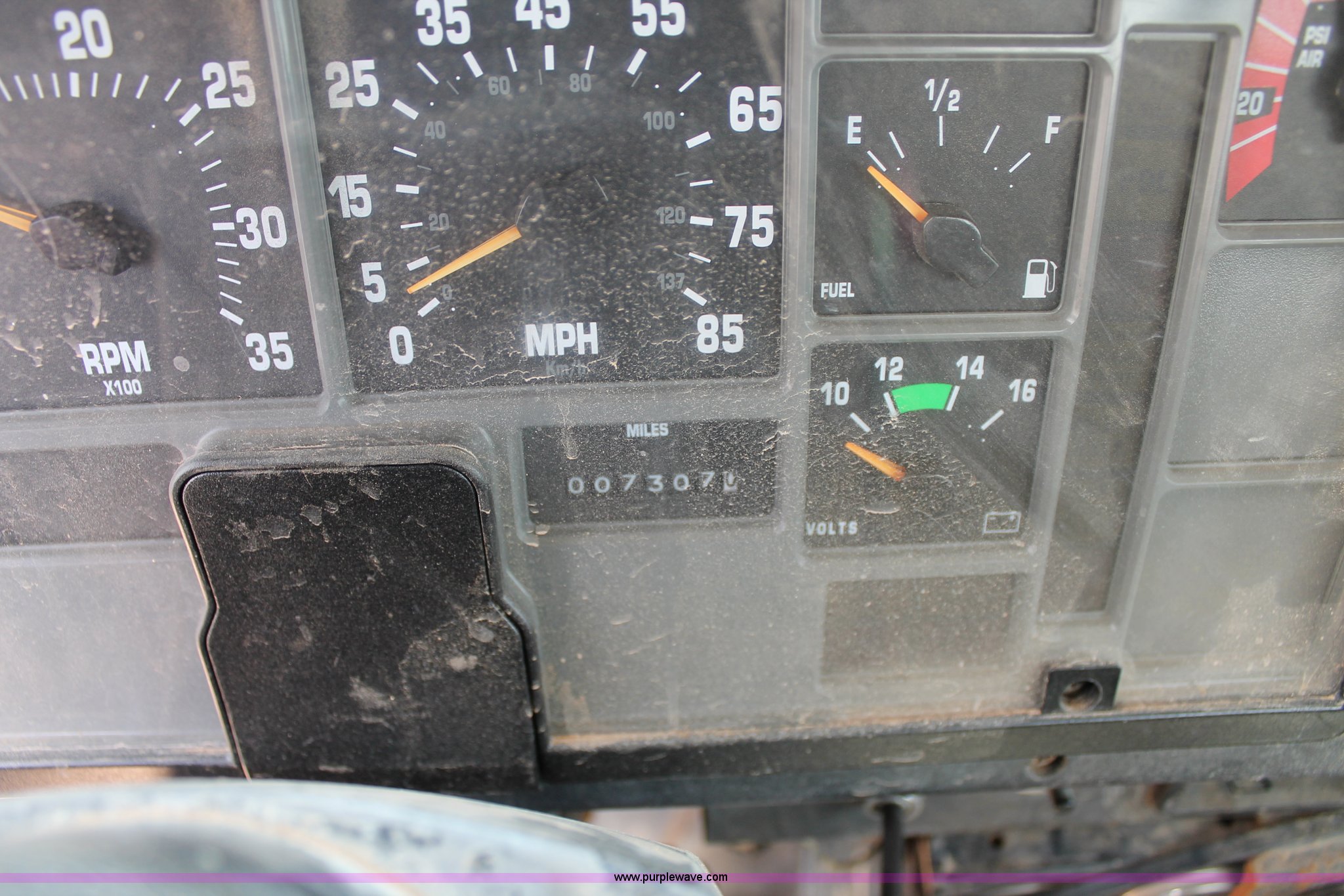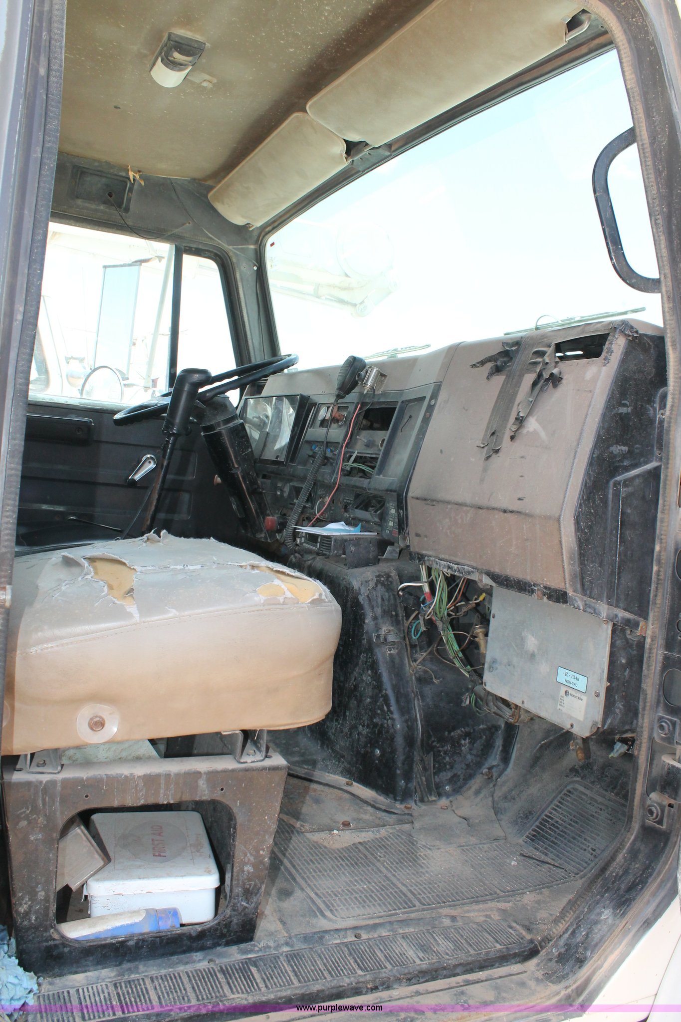 Purple Wave is selling a used Flat Bed Truck in Texas. This item is a 1994 International 4900 flatbed truck with the following: Unknown miles on odometer, International DT466 six cylinder diesel engine, Nine speed manual transmission, AC and heat, 18' service bed, Shelving, Slide-out drawers, Utility rack, Dual fuel tanks, Pintle hitch, Trailer wiring, Spring suspension, Air brakes, 236" wheelbase, 11R22.5 tires, Unit# 102
