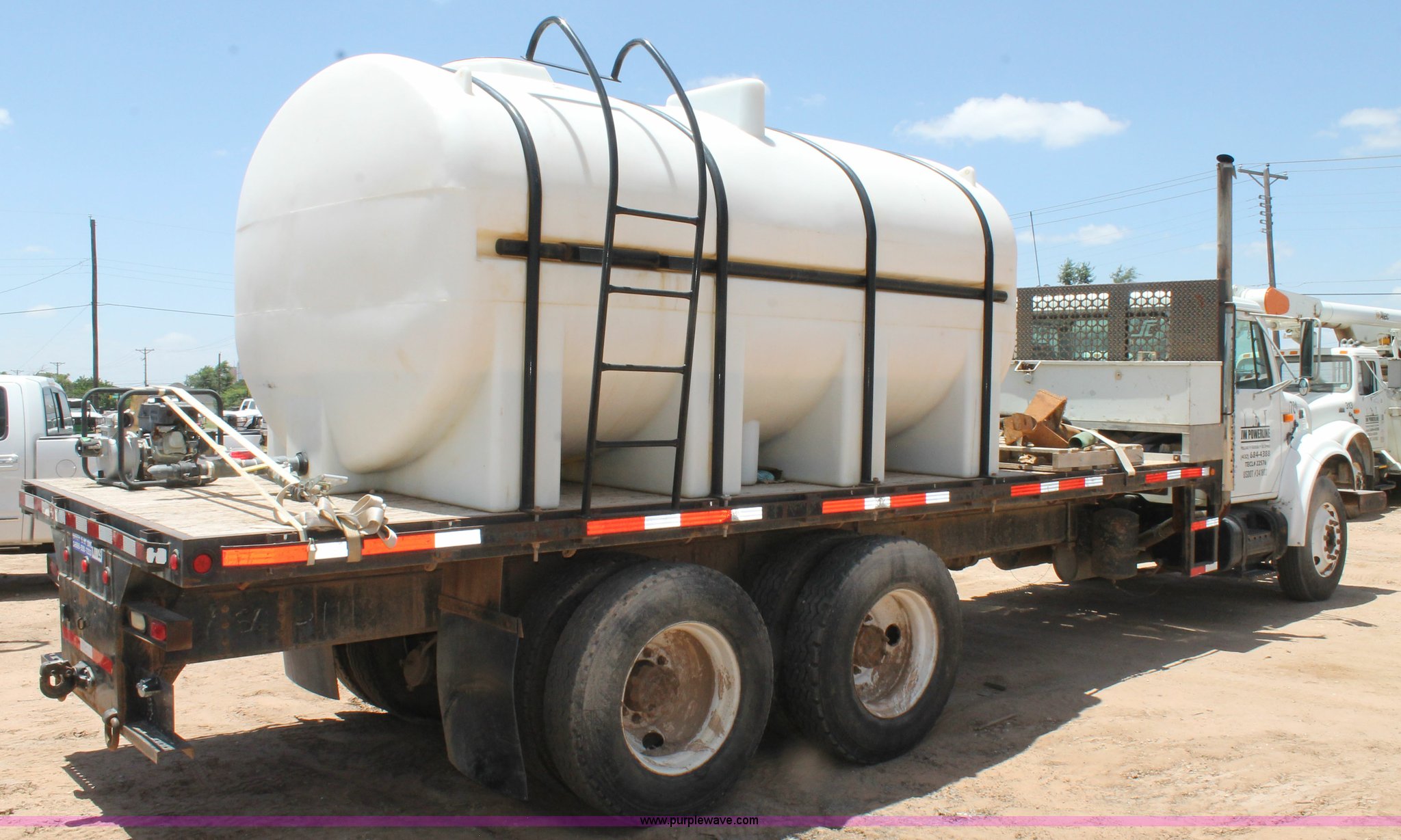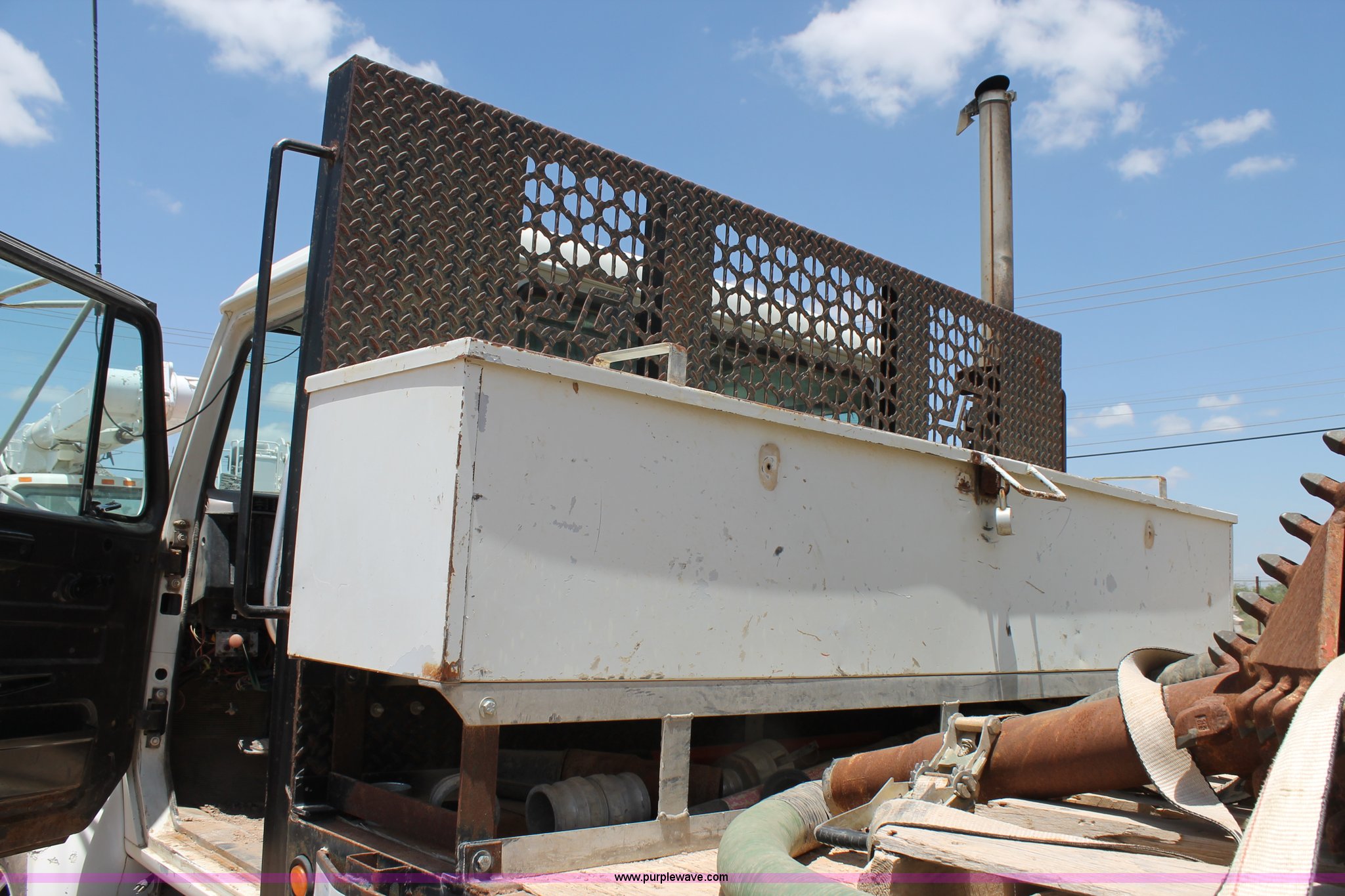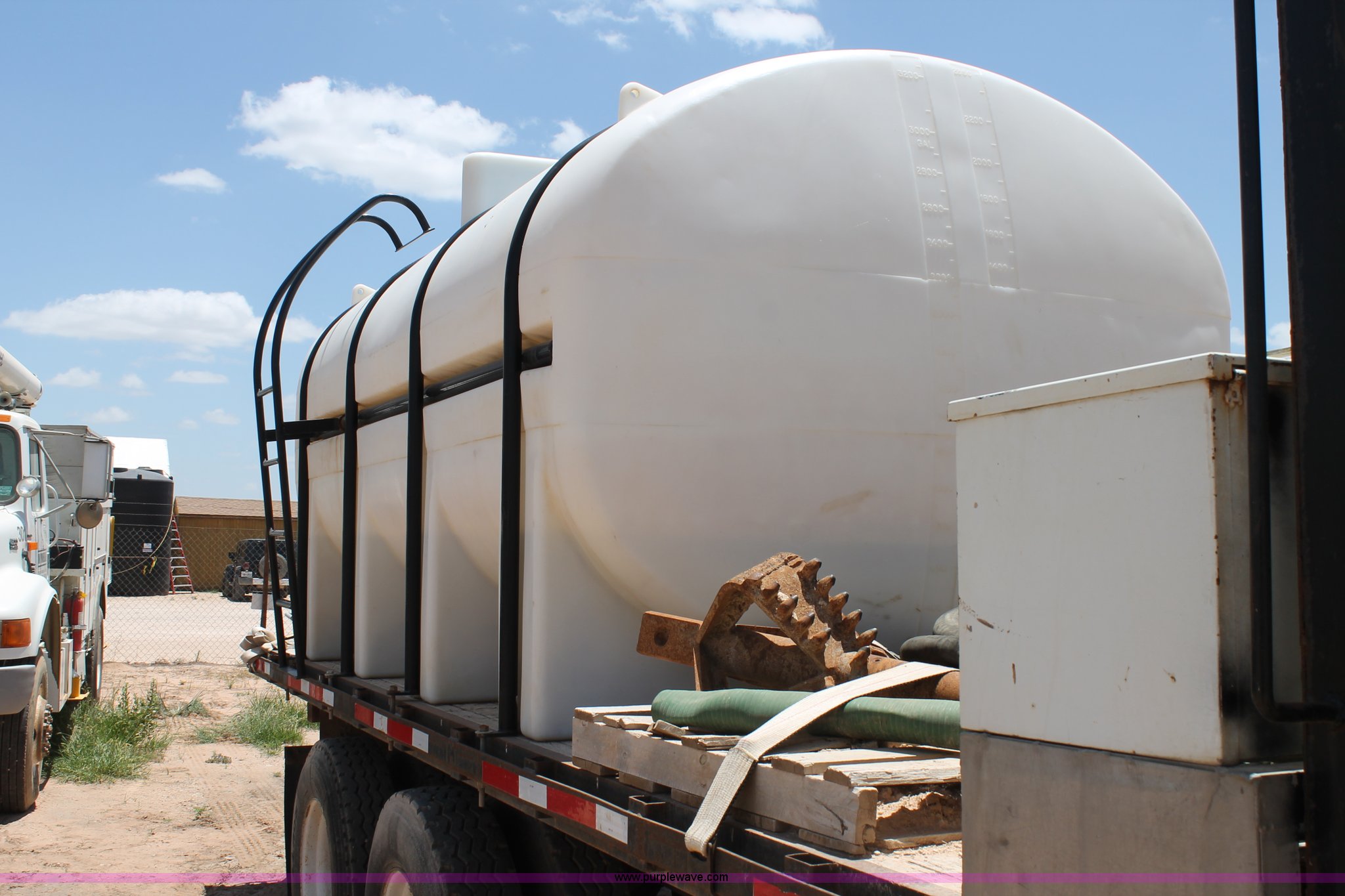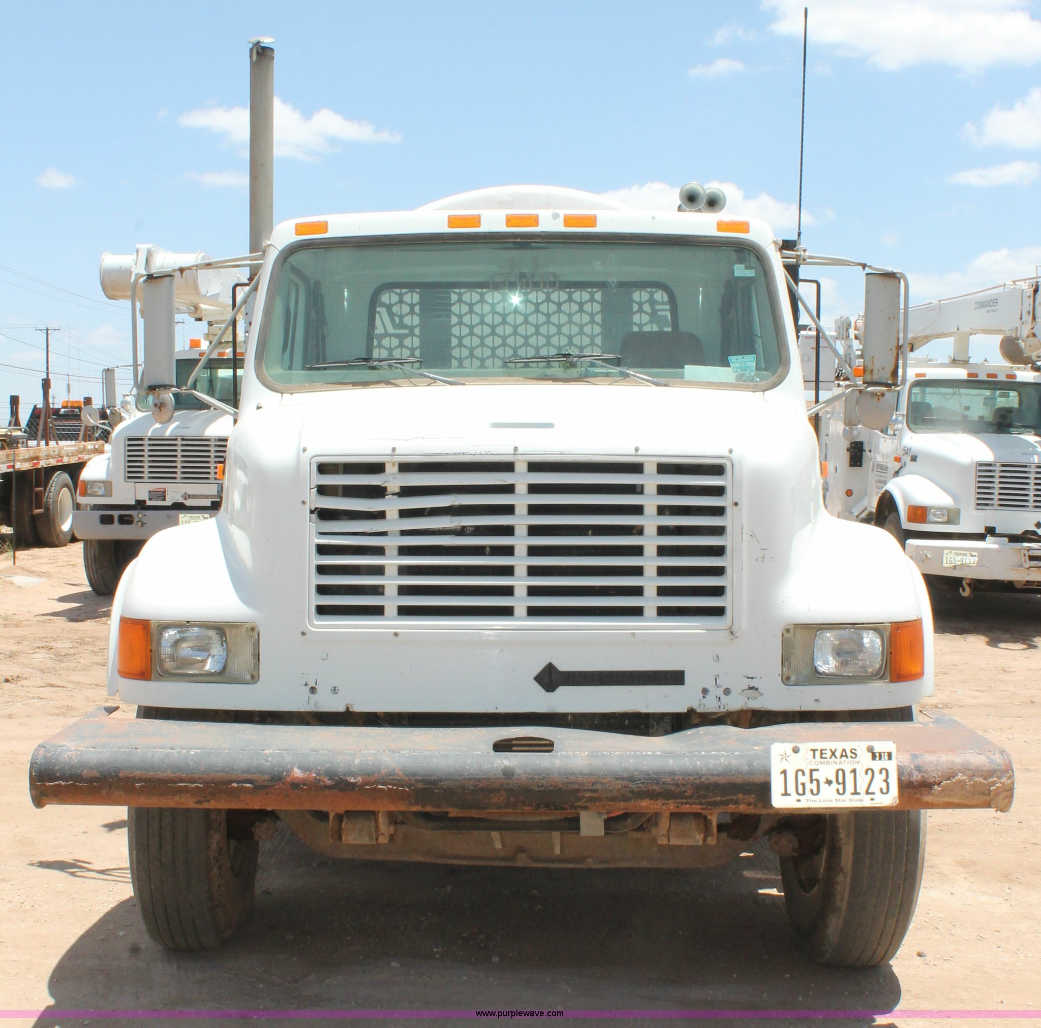 Purple Wave is selling a used Flat Bed Truck in Texas. This item is a 1996 International 4900 flatbed truck with the following: Unknown miles on odometer, International DT466 7.6L L6 turbo diesel engine, Nine speed manual transmission, AC and heat, AM/FM/CD, 22.5'L flatbed, 4' headache rack, Toolbox, 3,300 gallon water tank, Water pump, Dual fuel tanks, Pintle hitch, Trailer wiring, Spring suspension, Air brakes, 236" wheelbase, 11R22.5 tires, Back reamers not included, Unit# 701