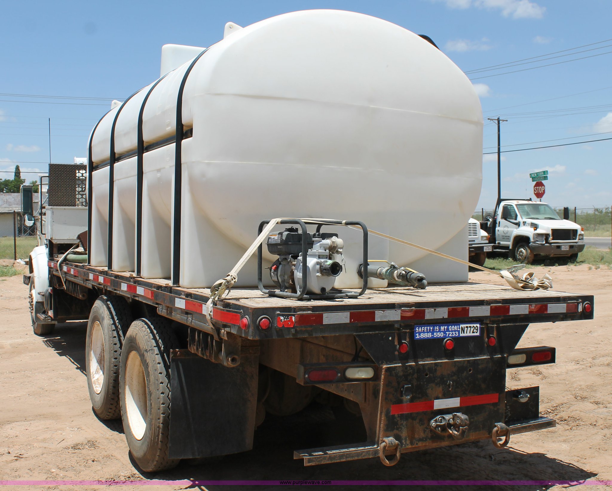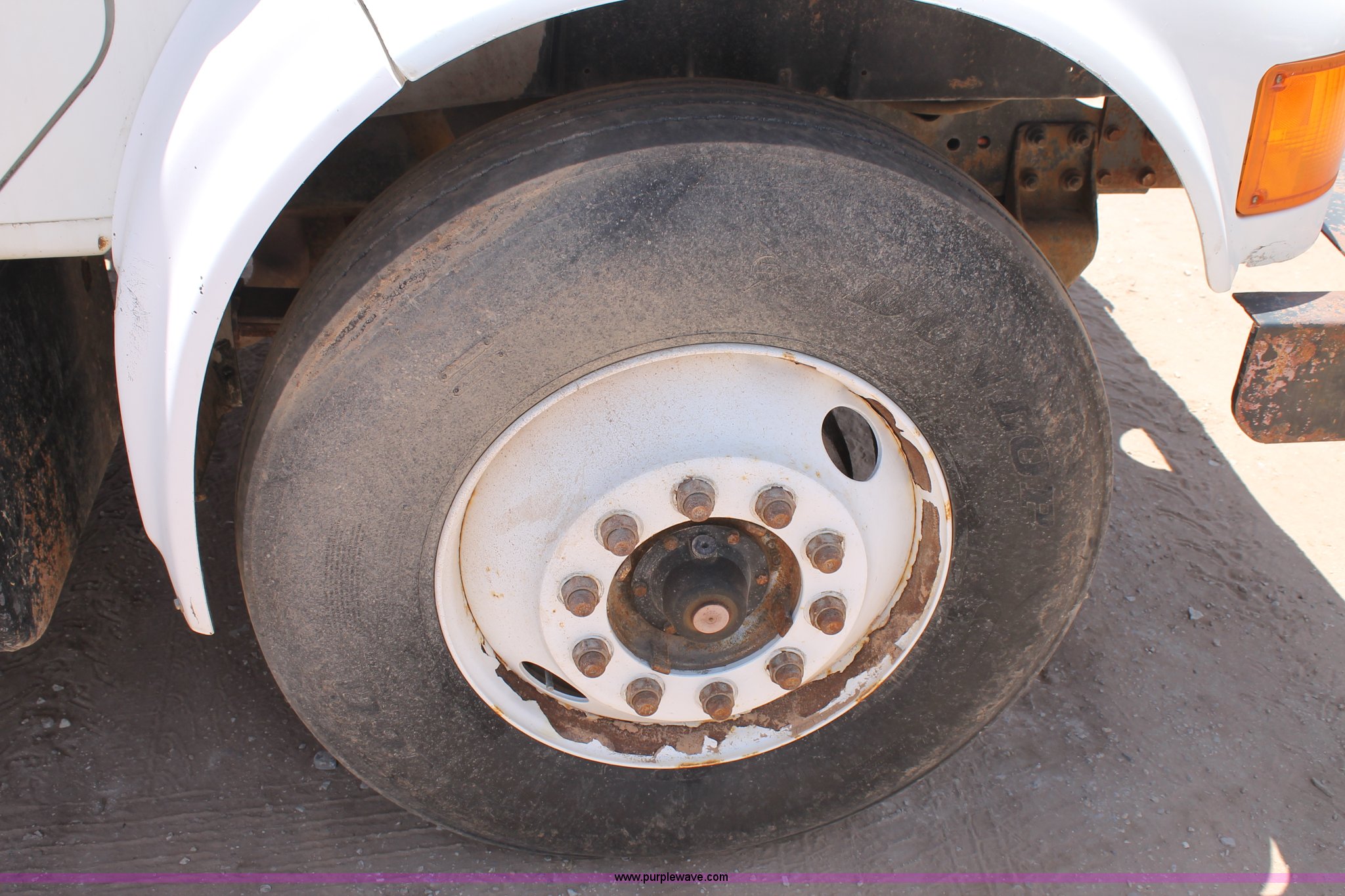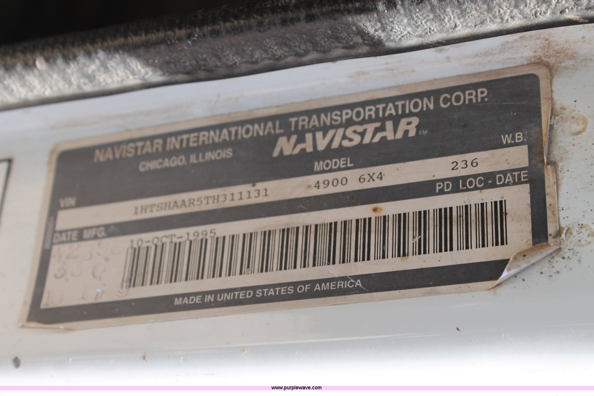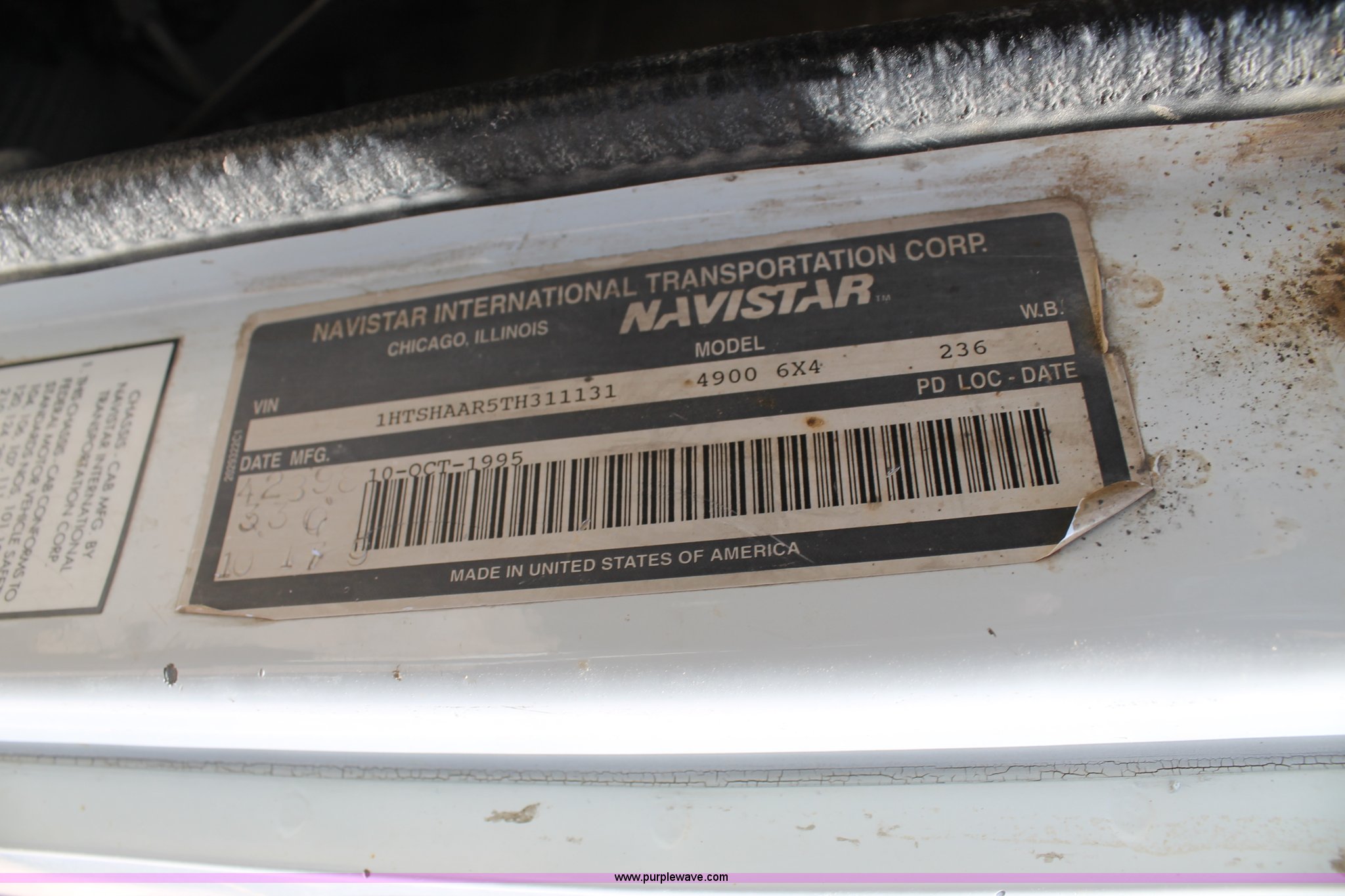 Purple Wave is selling a used Flat Bed Truck in Texas. This item is a 1996 International 4900 flatbed truck with the following: Unknown miles on odometer, International DT466 7.6L L6 turbo diesel engine, Nine speed manual transmission, AC and heat, AM/FM/CD, 22.5'L flatbed, 4' headache rack, Toolbox, 3,300 gallon water tank, Water pump, Dual fuel tanks, Pintle hitch, Trailer wiring, Spring suspension, Air brakes, 236" wheelbase, 11R22.5 tires, Back reamers not included, Unit# 701