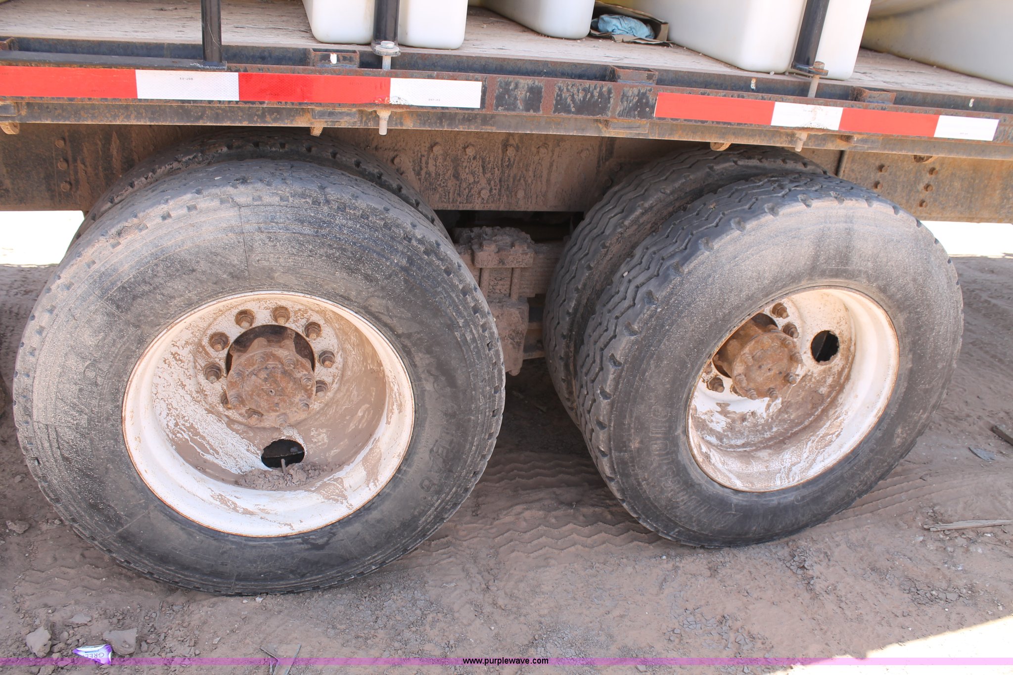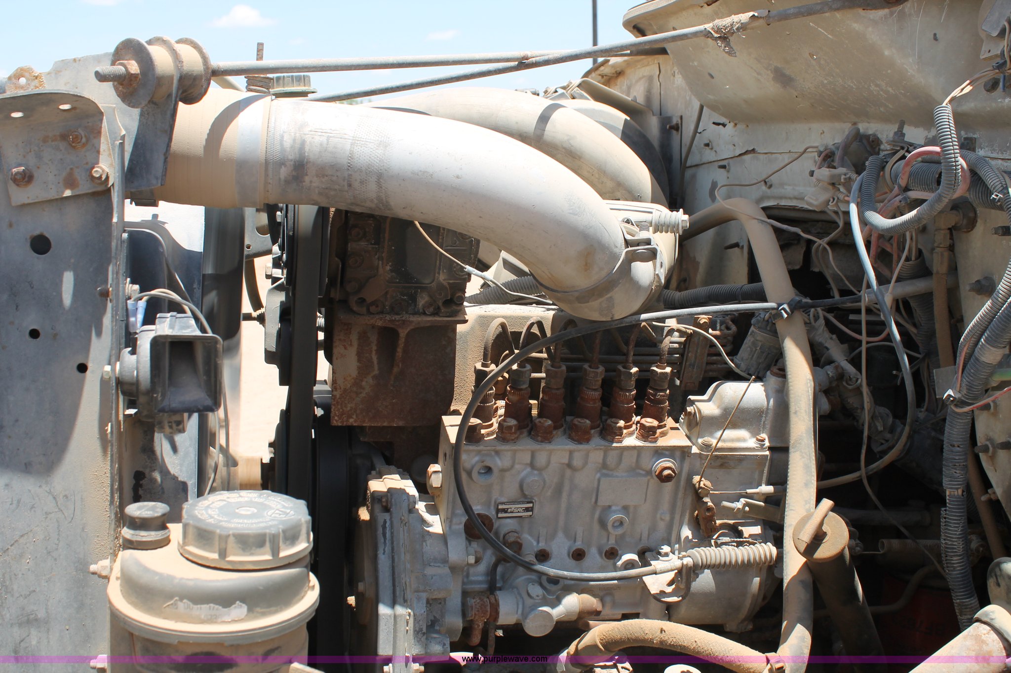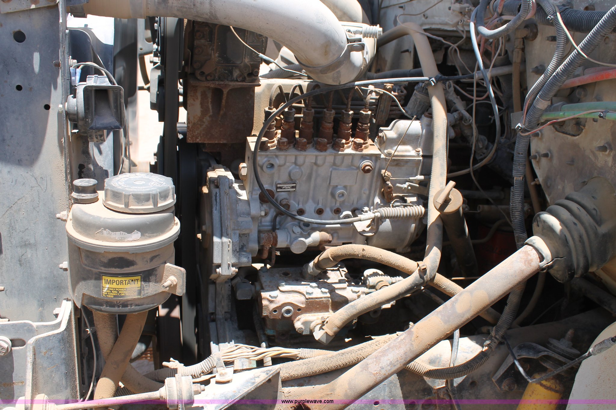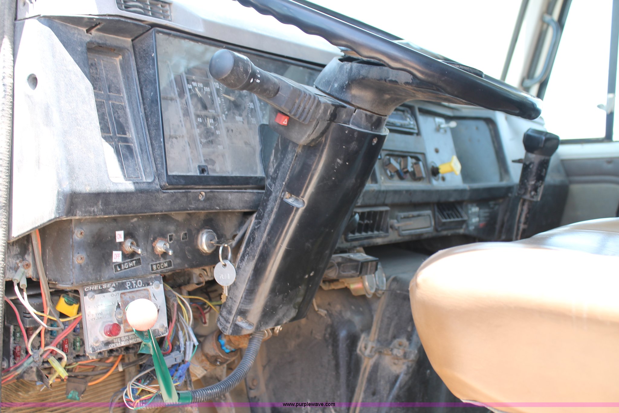 Purple Wave is selling a used Flat Bed Truck in Texas. This item is a 1996 International 4900 flatbed truck with the following: Unknown miles on odometer, International DT466 7.6L L6 turbo diesel engine, Nine speed manual transmission, AC and heat, AM/FM/CD, 22.5'L flatbed, 4' headache rack, Toolbox, 3,300 gallon water tank, Water pump, Dual fuel tanks, Pintle hitch, Trailer wiring, Spring suspension, Air brakes, 236" wheelbase, 11R22.5 tires, Back reamers not included, Unit# 701