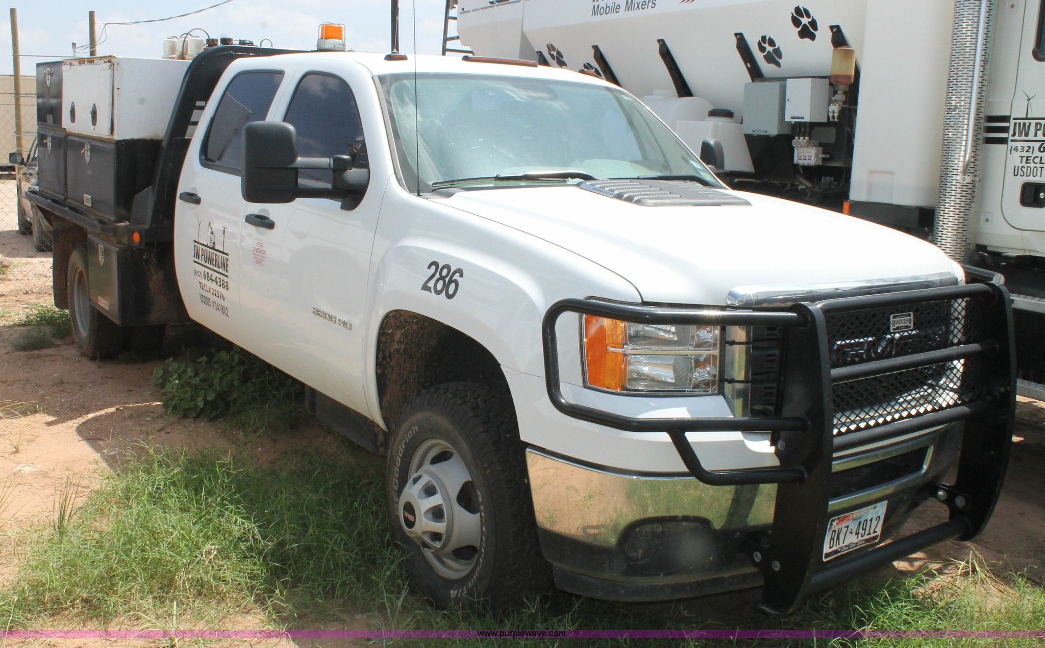 2012 GMC Sierra 3500HD Crew Cab flatbed utility truck has sold in Midland, Texas for $20350. Item L4299 sold on July 30th, 2015.