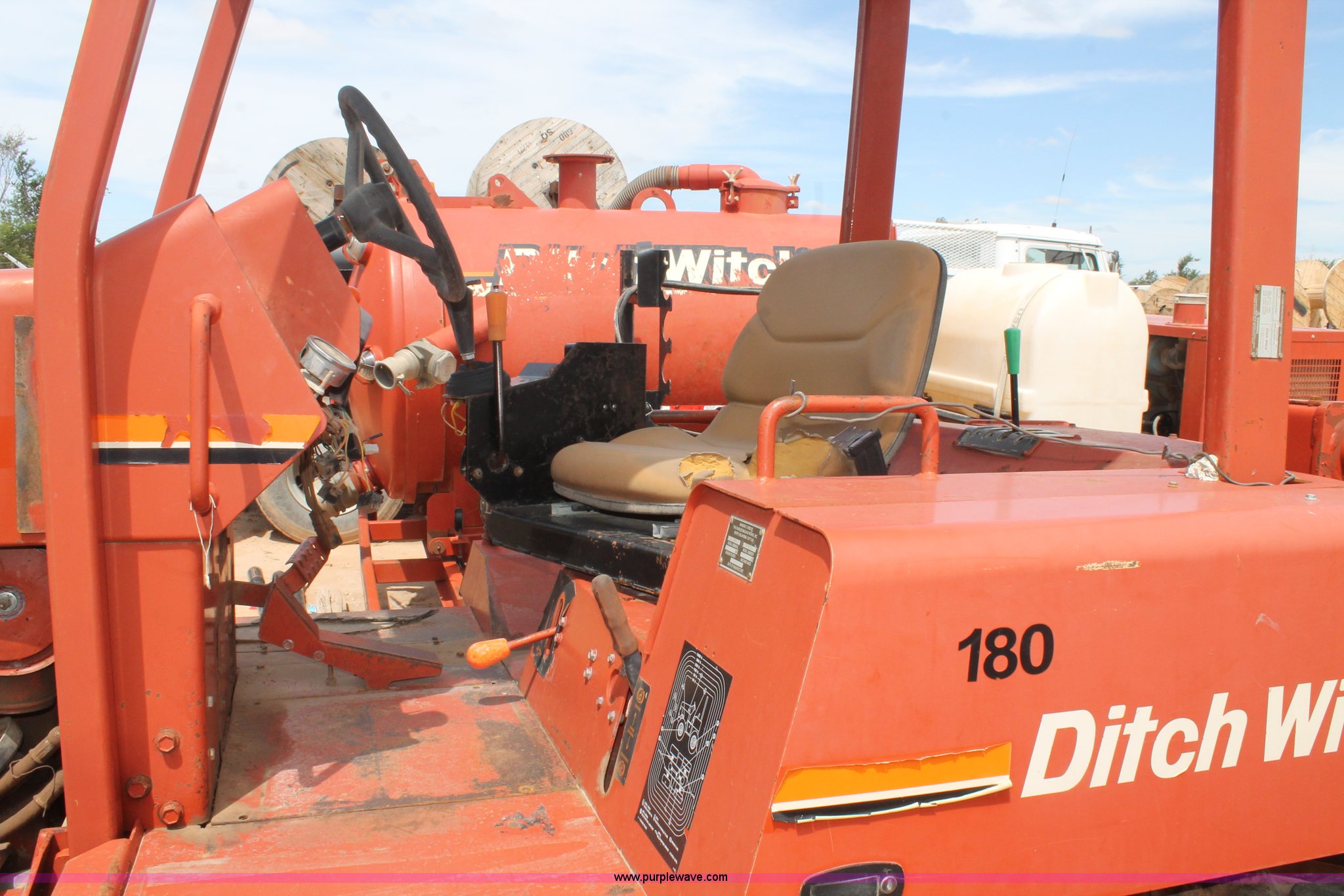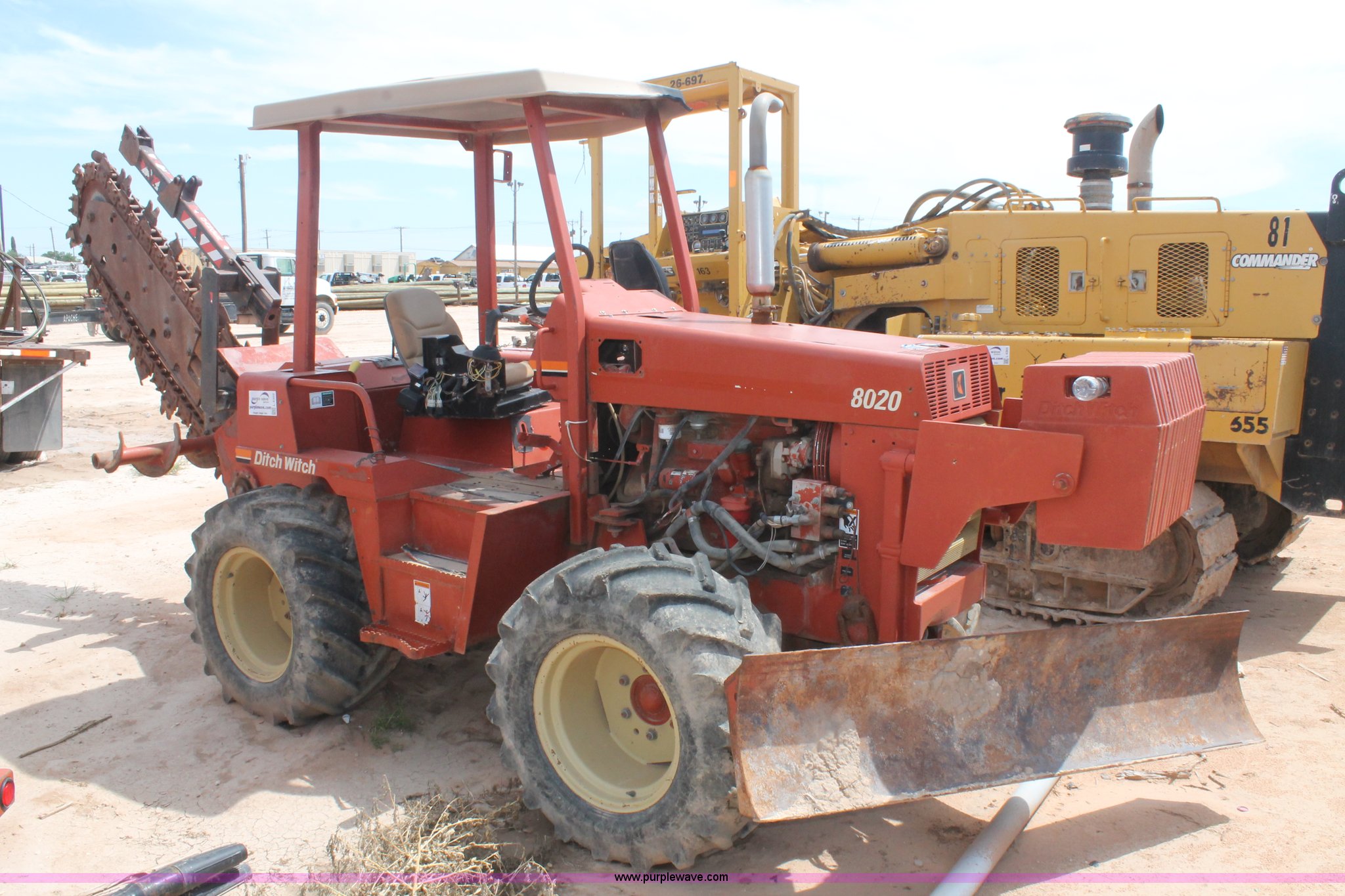 Purple Wave is selling a used Trencher or Rock Saw in Texas. This item is a 1997 Ditch Witch 8020JD H710 trencher with the following: 605 hours on meter, John Deere four cylinder diesel engine, ROPS, 7' maximum trenching depth, Serial 253517, 72" back fill blade, (15) front weights, 38 x 18.00-20 NHS tires, Serial 5M0607, Unit# 180