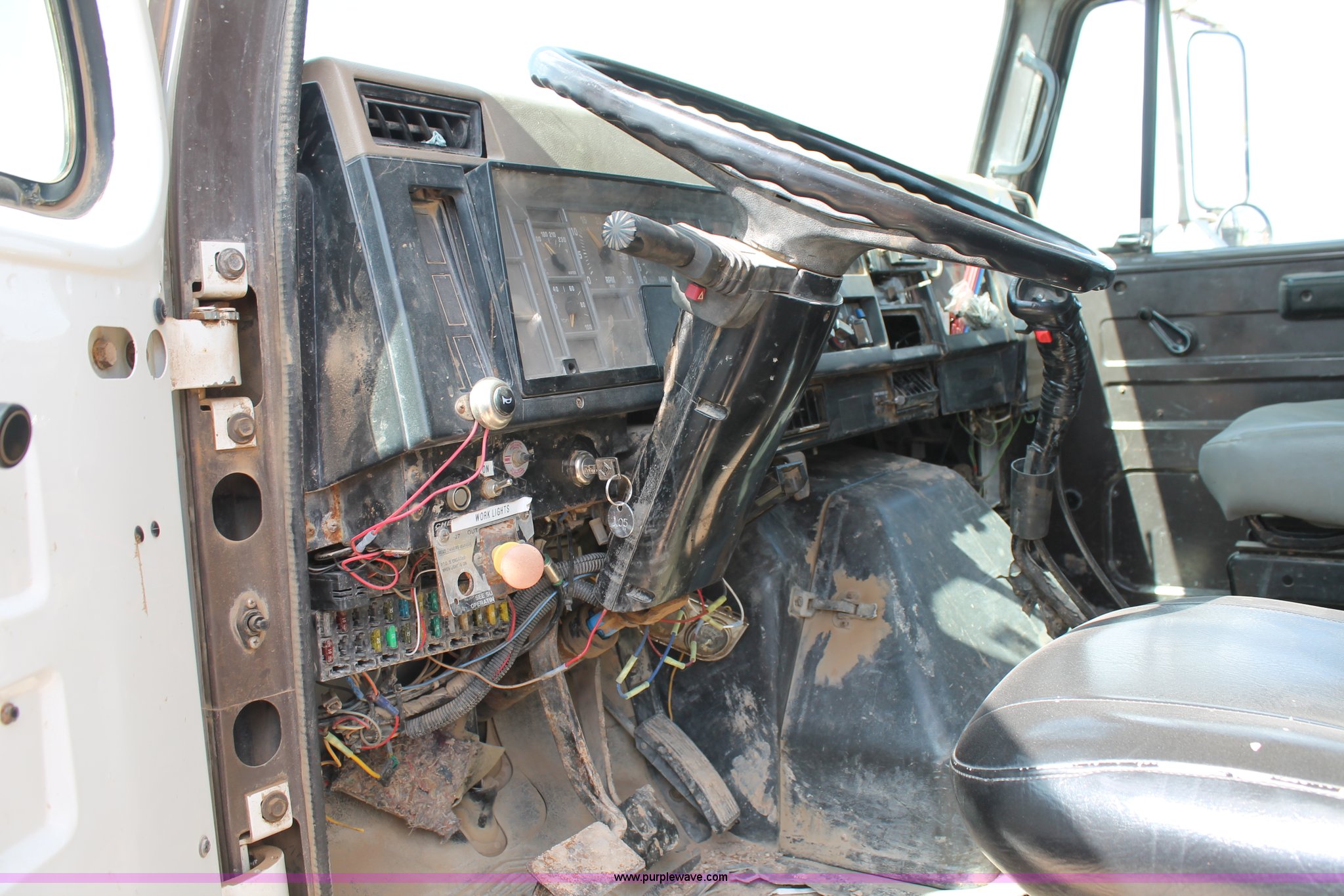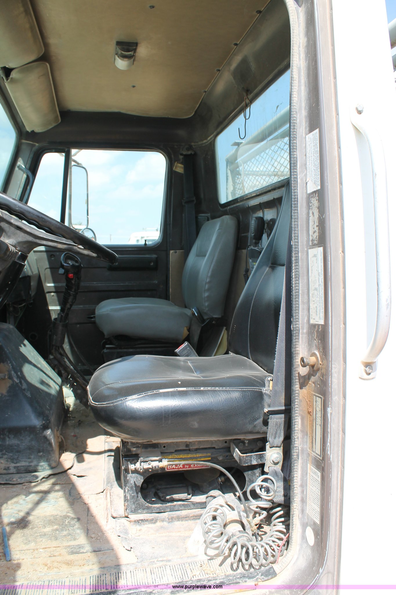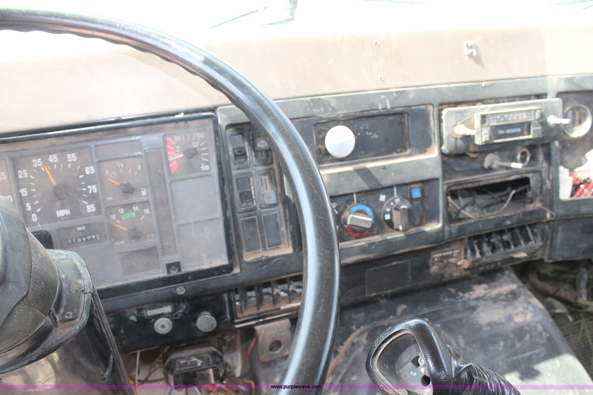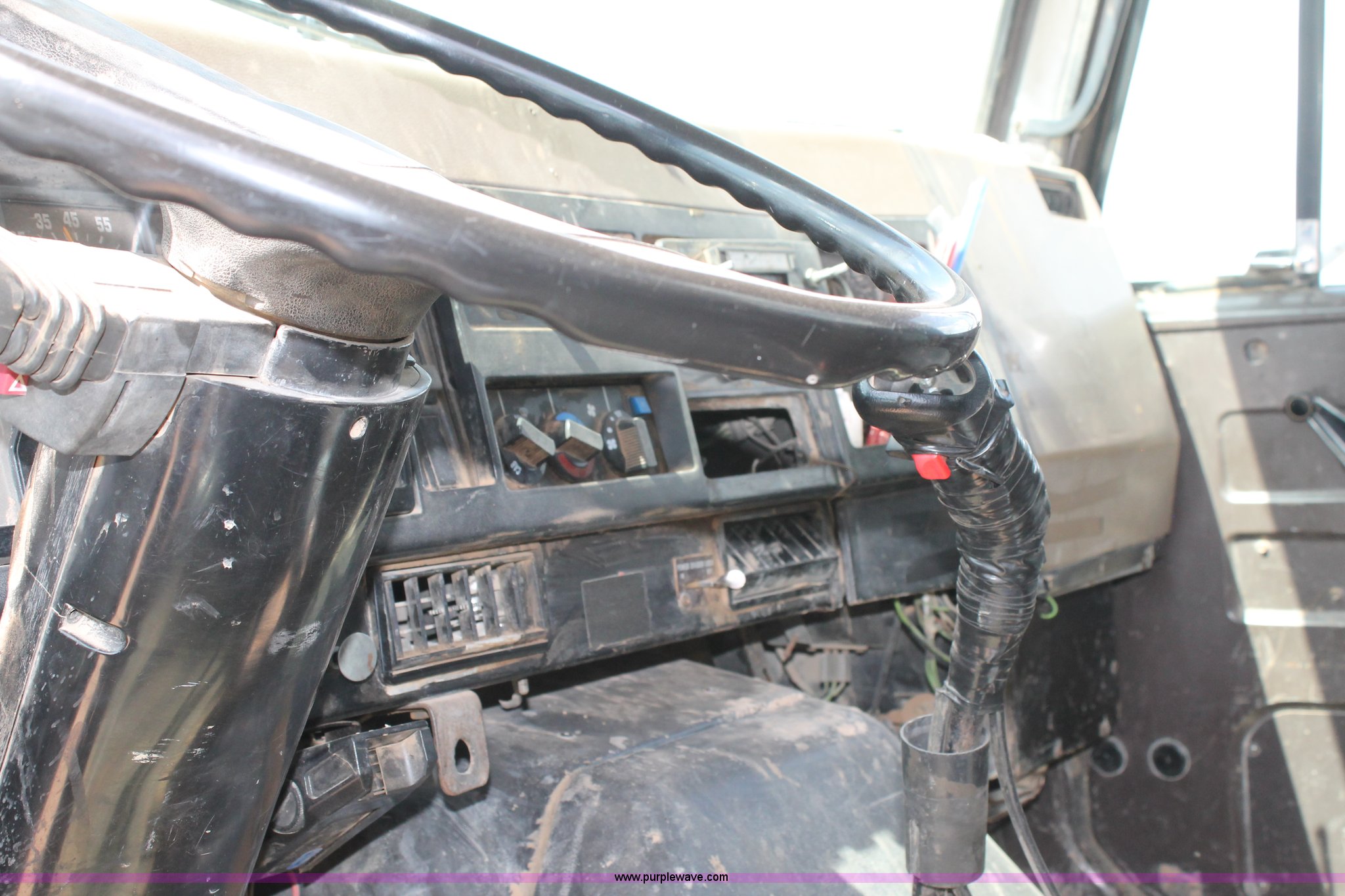 Purple Wave is selling a used Flat Bed Truck in Texas. This item is a 1992 International 4900 flatbed truck with the following: 10,409 miles on odometer, International DT466 7.6L L6 turbo diesel engine, 10 speed manual transmission, Tandem axles, AC and heat, AM/FM/cassette, Air suspension seat, 16'L flatbed, Shelving, Cable reels not included, will be removed prior to auction, Dual fuel tanks, Pintle hitch, Trailer wiring, Spring suspension, Air brakes, 11R24.5 tires, GVWR 52,000 lbs, Unit# 105