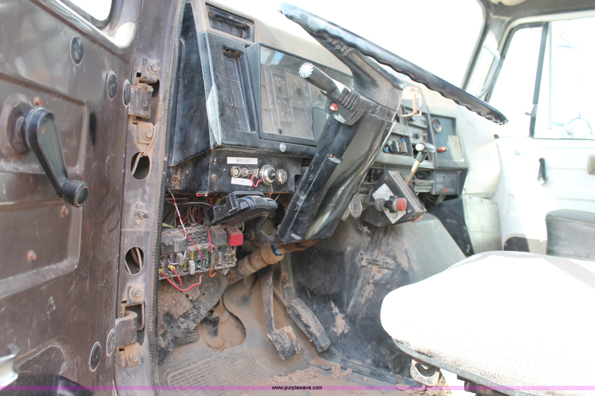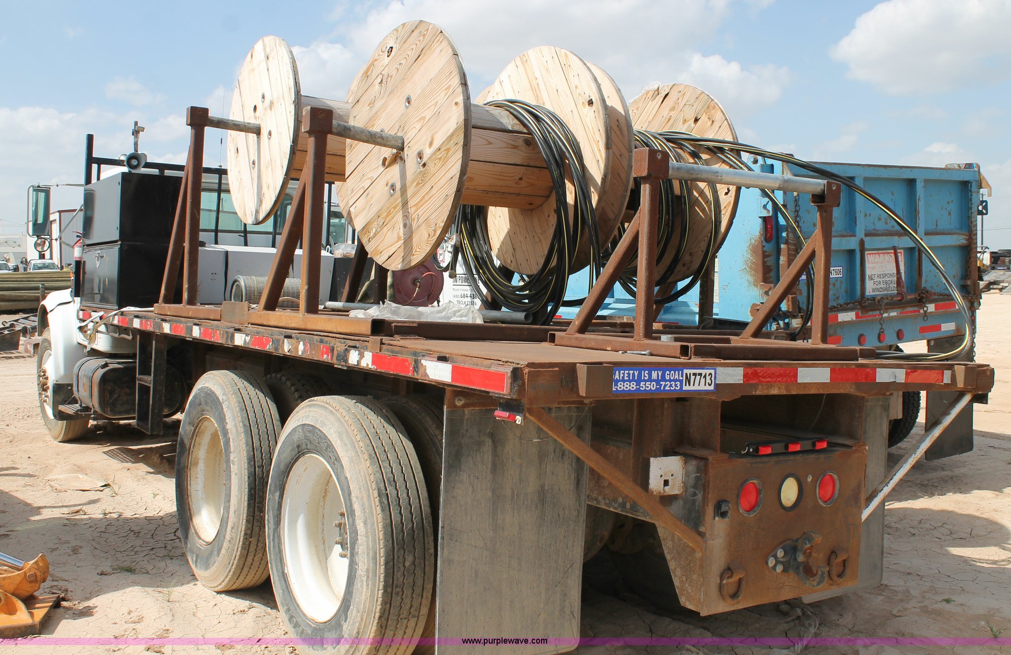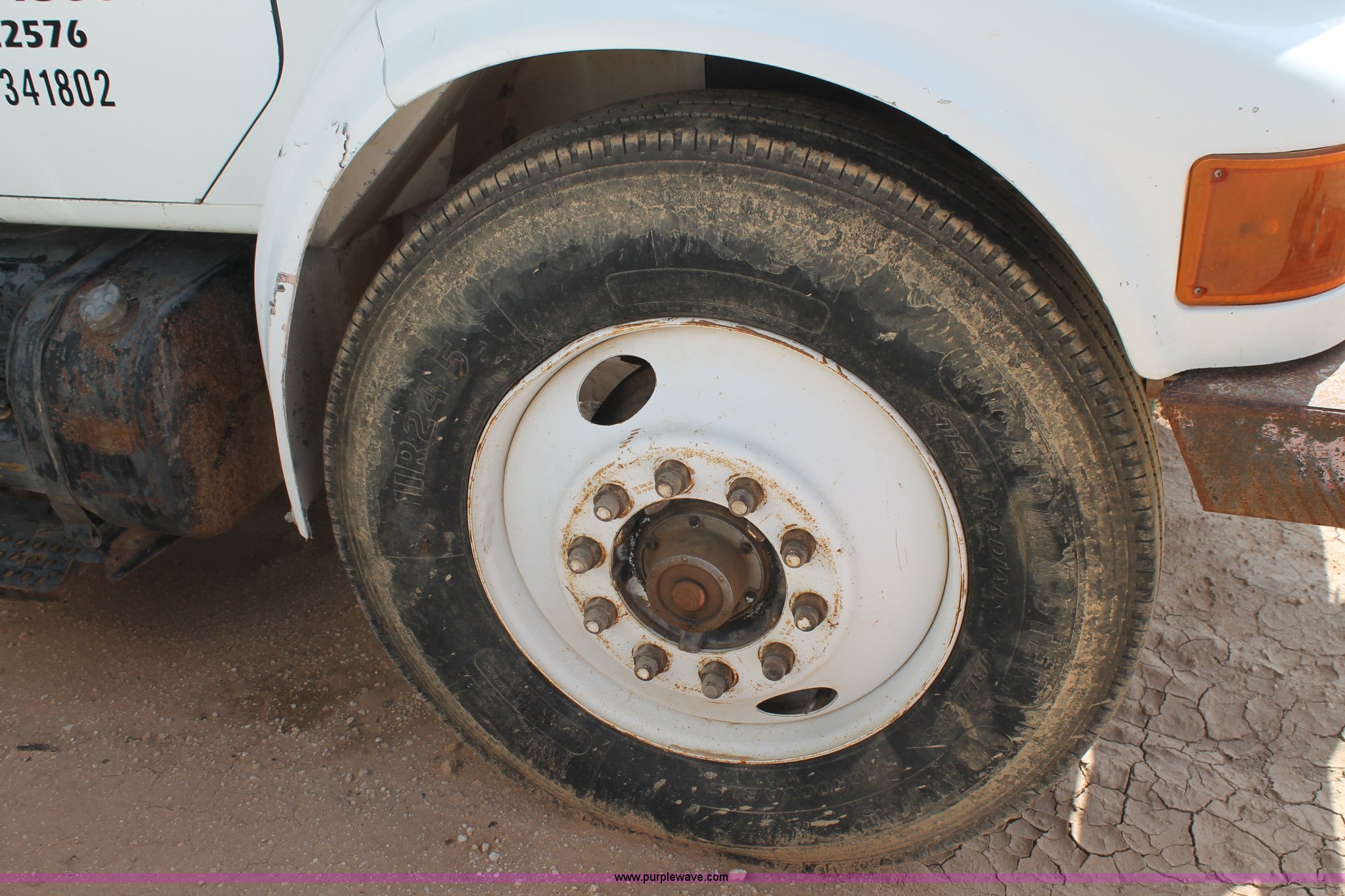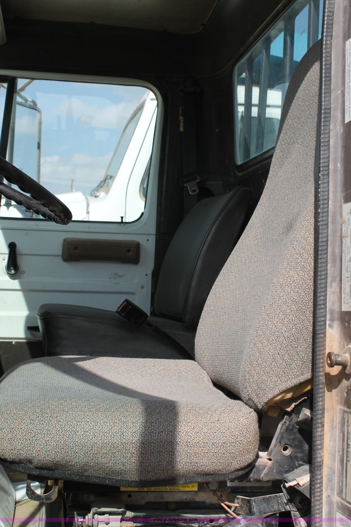 Purple Wave is selling a used Flat Bed Truck in Texas. This item is a 1991 International 4900 flatbed truck with the following: 60,793 miles on odometer, International DT466 7.6L L6 turbo diesel engine, Automatic transmission, Tandem axles, AC and heat, AM/FM/cassette, Air suspension seat, Brake controller, 16'L flatbed, (3) toolboxes, Fuel tank with pump, Hose reel, Wire reels not included, will be removed prior to auction, Dual fuel tanks, Pintle hitch, Trailer wiring, Spring suspension, Air brakes, 224" wheelbase, 11R24.5 tires, Unit# 106