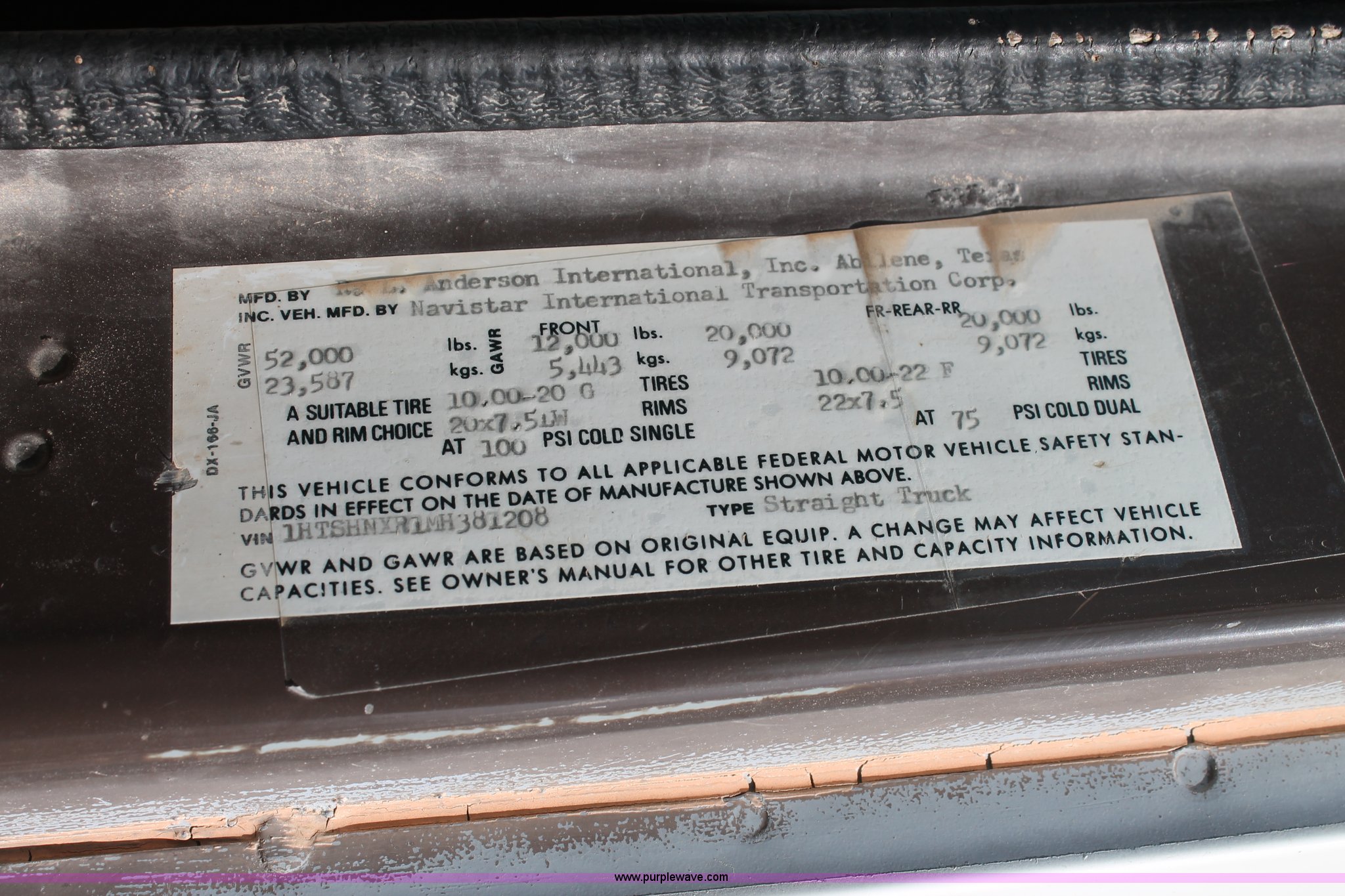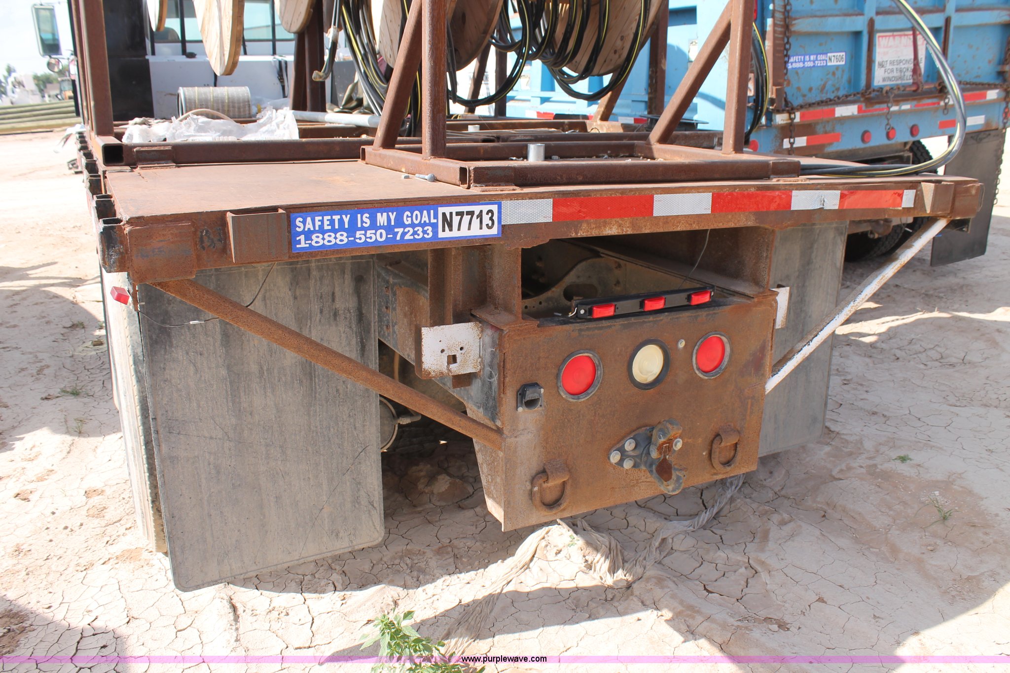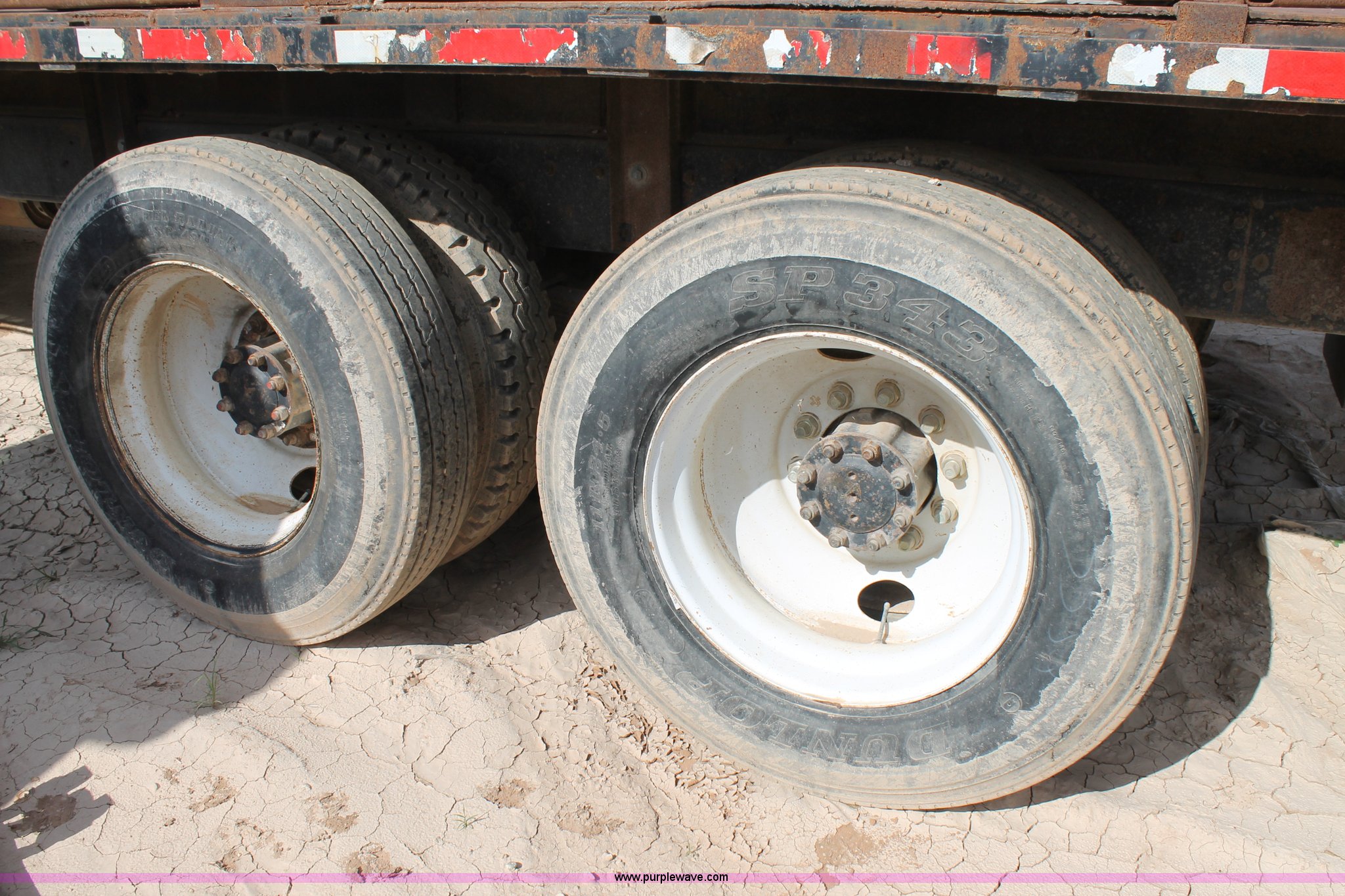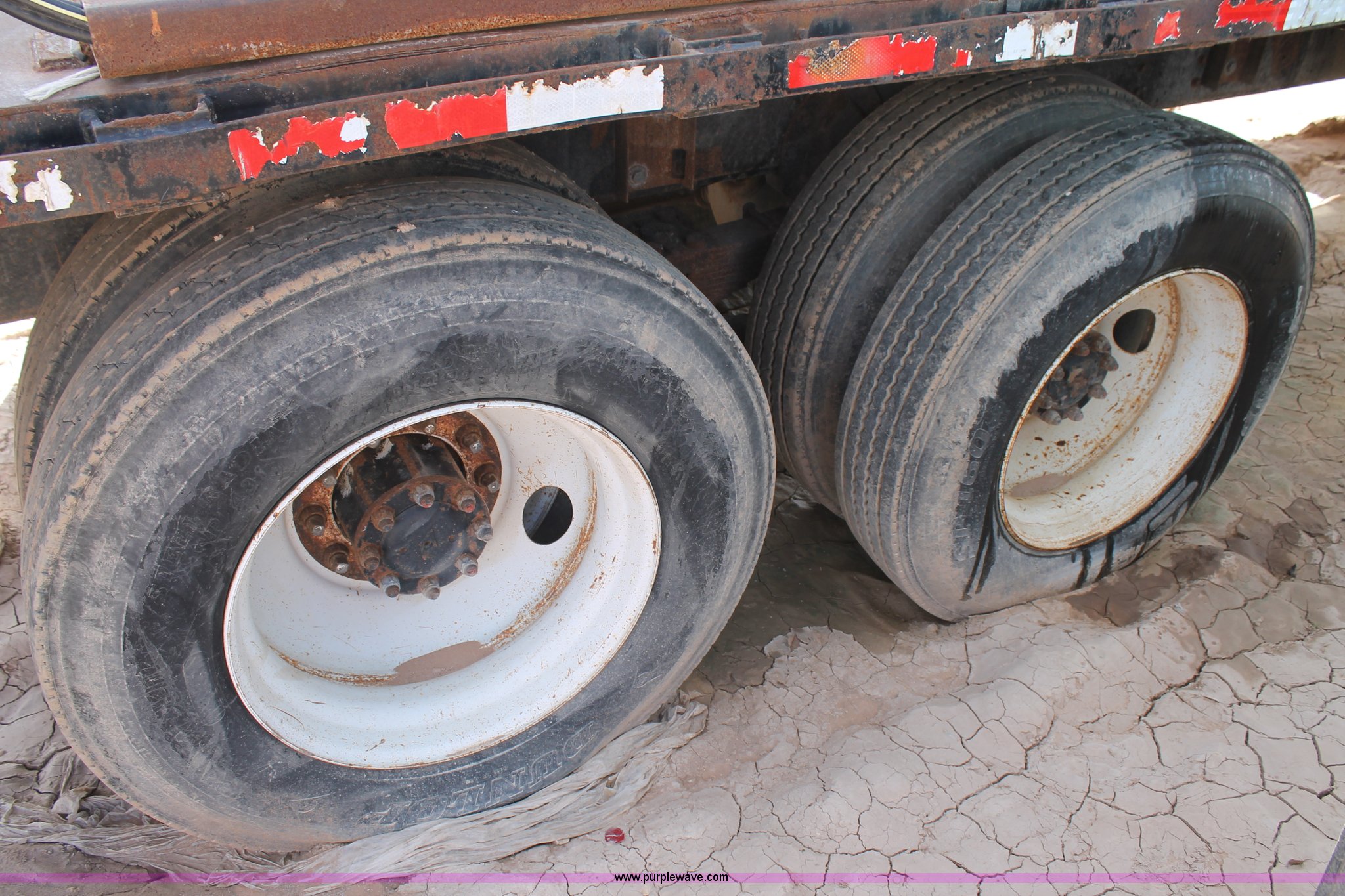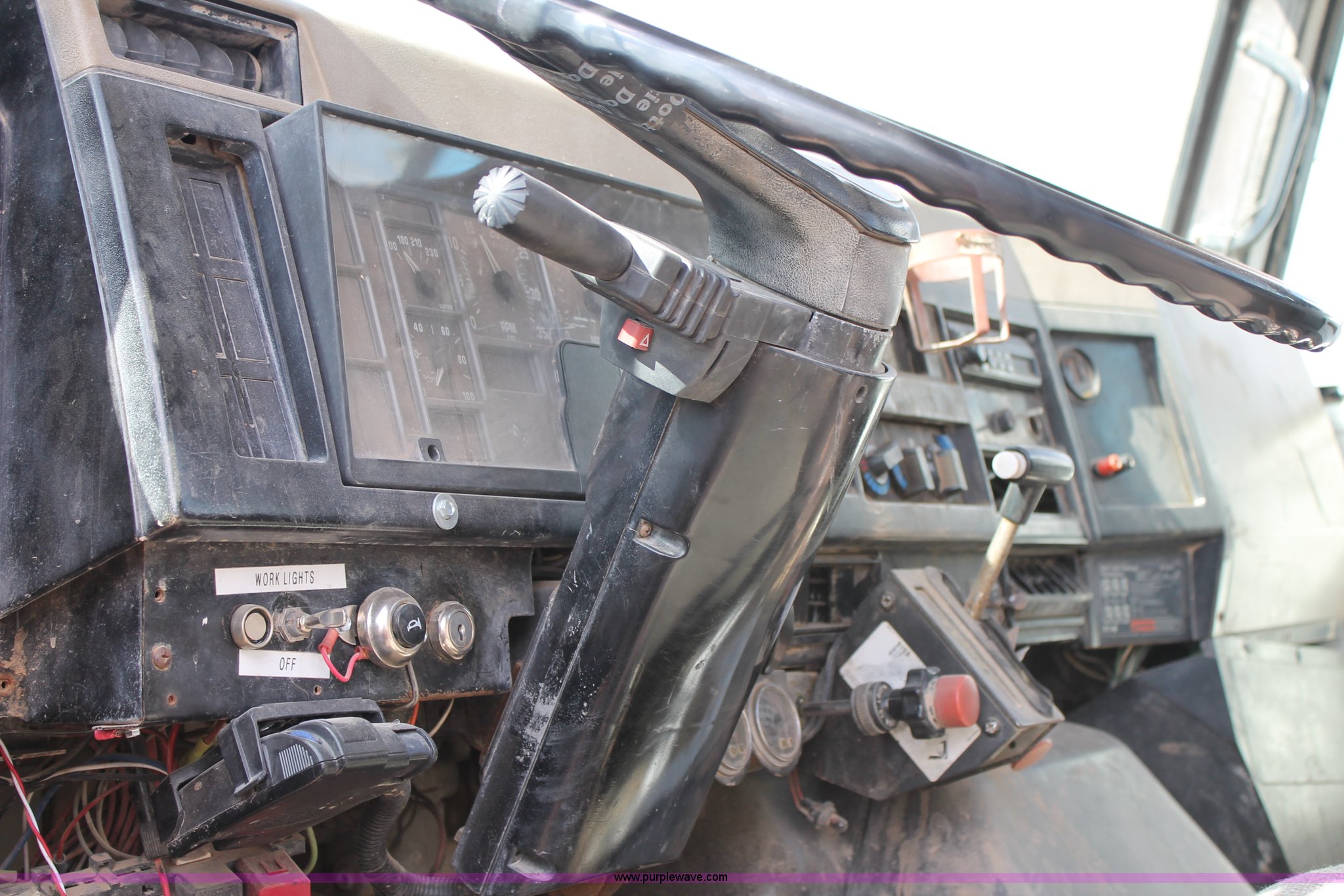Purple Wave is selling a used Flat Bed Truck in Texas. This item is a 1991 International 4900 flatbed truck with the following: 60,793 miles on odometer, International DT466 7.6L L6 turbo diesel engine, Automatic transmission, Tandem axles, AC and heat, AM/FM/cassette, Air suspension seat, Brake controller, 16'L flatbed, (3) toolboxes, Fuel tank with pump, Hose reel, Wire reels not included, will be removed prior to auction, Dual fuel tanks, Pintle hitch, Trailer wiring, Spring suspension, Air brakes, 224" wheelbase, 11R24.5 tires, Unit# 106