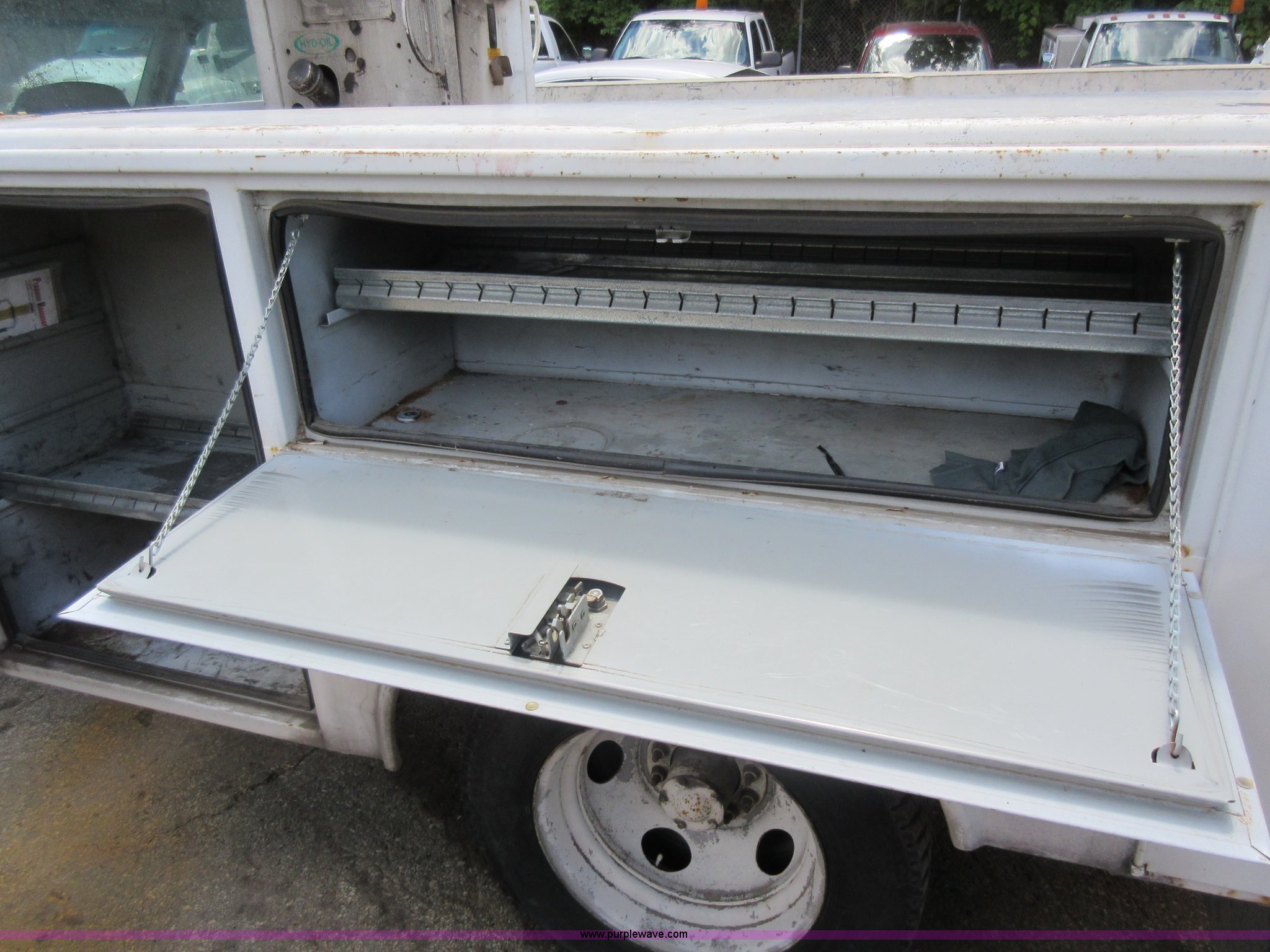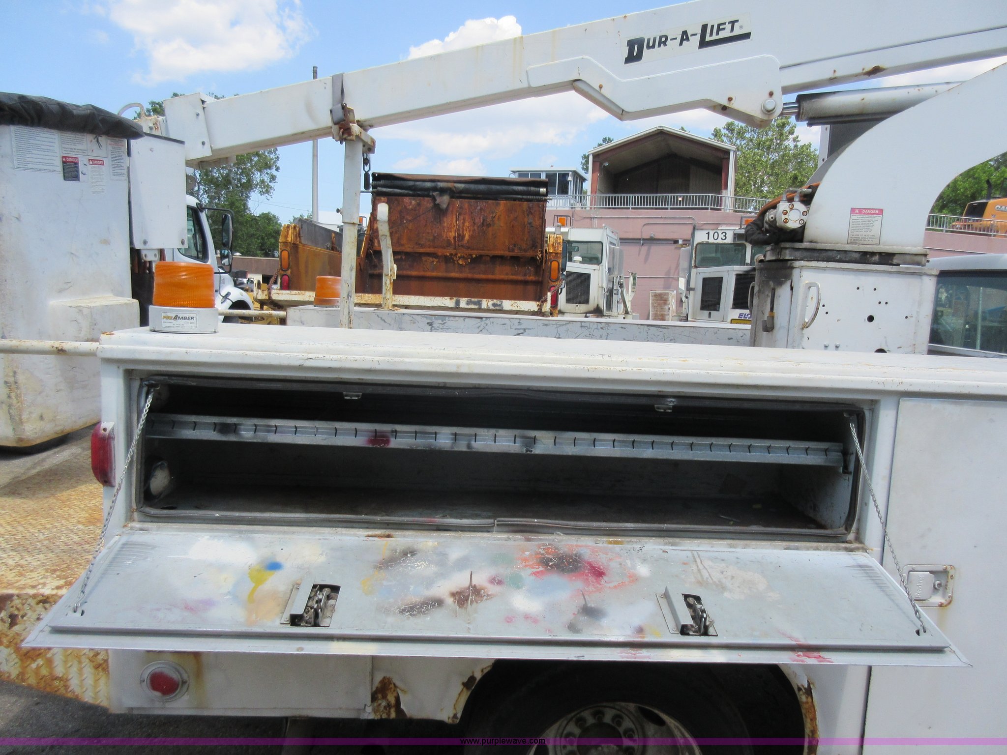Purple Wave is selling a used Bucket Truck in Missouri. This item is a 2001 Chevrolet Silverado 3500 bucket truck with the following: 87,611 miles on odometer, 6.5L V8 OHV 16V diesel engine, Automatic transmission, AC and heat, AC inoperable, Tilt, AM/FM, Manual windows and locks, Vinyl interior, Dur-a-lift DT29 man lift, 34' max height, 20'3" max side reach, Pintle hitch, 225/70R19.5 tires, Unit# 98