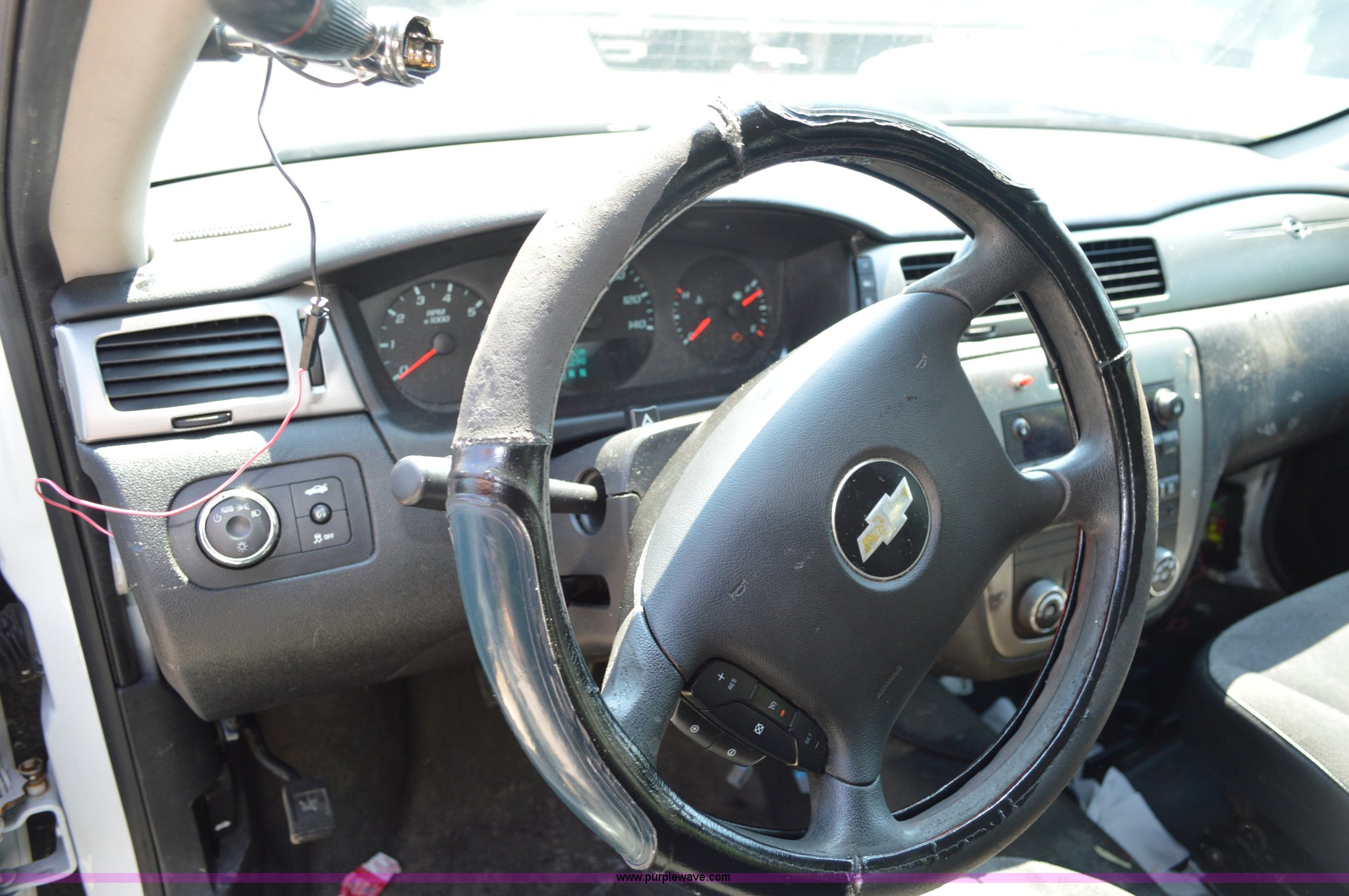 Purple Wave is selling a used Passenger Vehicle in Missouri. This item is a 2012 Chevrolet Impala Police Cruiser with the following: 122,989 miles on odometer, 3.6L V6 DOHC 16V FFV gas engine, Automatic transmission, AC and heat, Tilt, Cruise, AM/FM/CD, Power windows, locks, and mirrors, Vinyl interior, 235/55R17 tires, Interior/exterior cosmetic damage