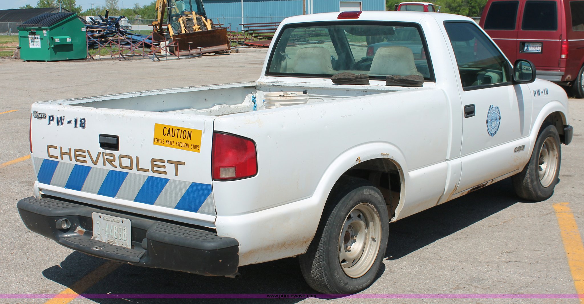 Purple Wave is selling a used Compact Pickup or Van in Oklahoma. This item is a 1998 Chevrolet S10 pickup truck with the following: 124,382 miles on odometer, 4.3L V6 OHV 12V gas engine, Automatic transmission, AC and heat, AM/FM/cassette, Manual windows and locks, Vinyl interior, P205/65R15 tires, Check engine light on, Unit# PW-18