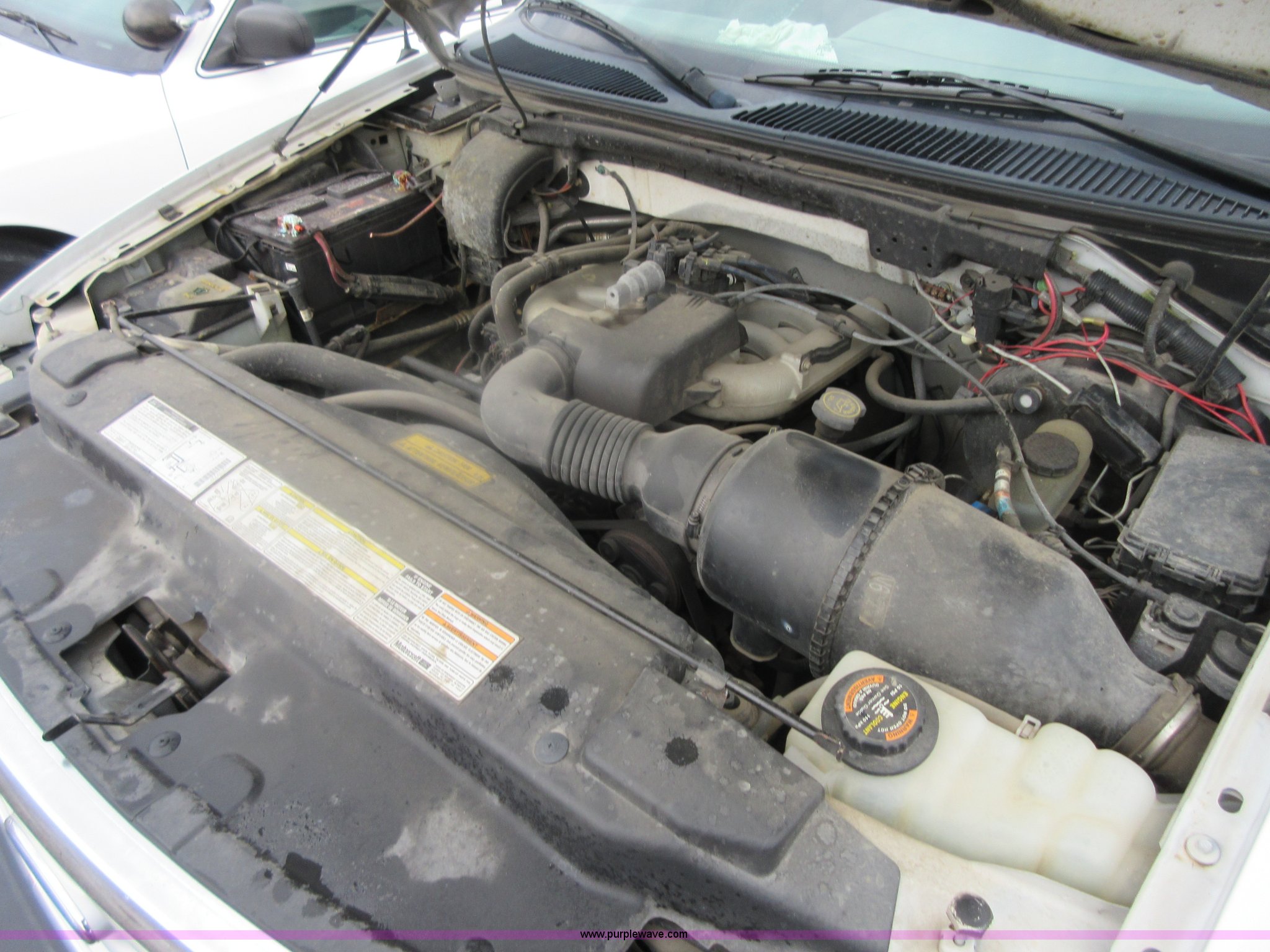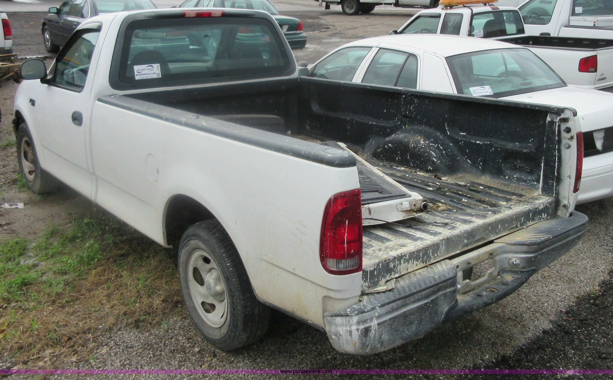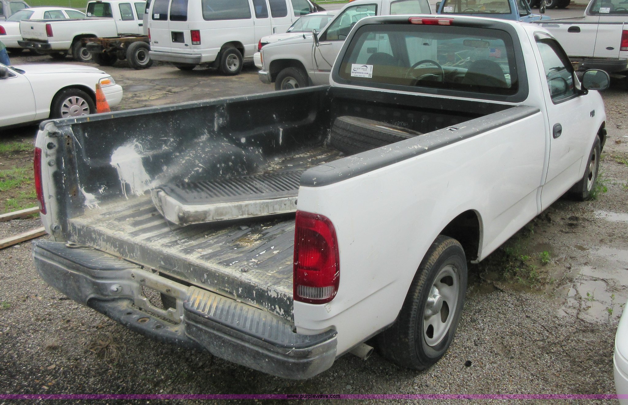 Purple Wave is selling a used 1/2 Ton Pickup or Van in Kansas. This item is a 1999 Ford F150 pickup truck with the following: 85,602 miles on odometer, 4.2L V6 OHV 12V gas engine, Automatic transmission, AC and heat, Tilt, Cruise, AM/FM, Manual windows, Power locks, Cloth interior, P235/70R16 tires, Interior/exterior cosmetic damage, Starter grinds, Seat beat missing, Paint peeling, Headliner separating, Dead battery, Unit # 320-034