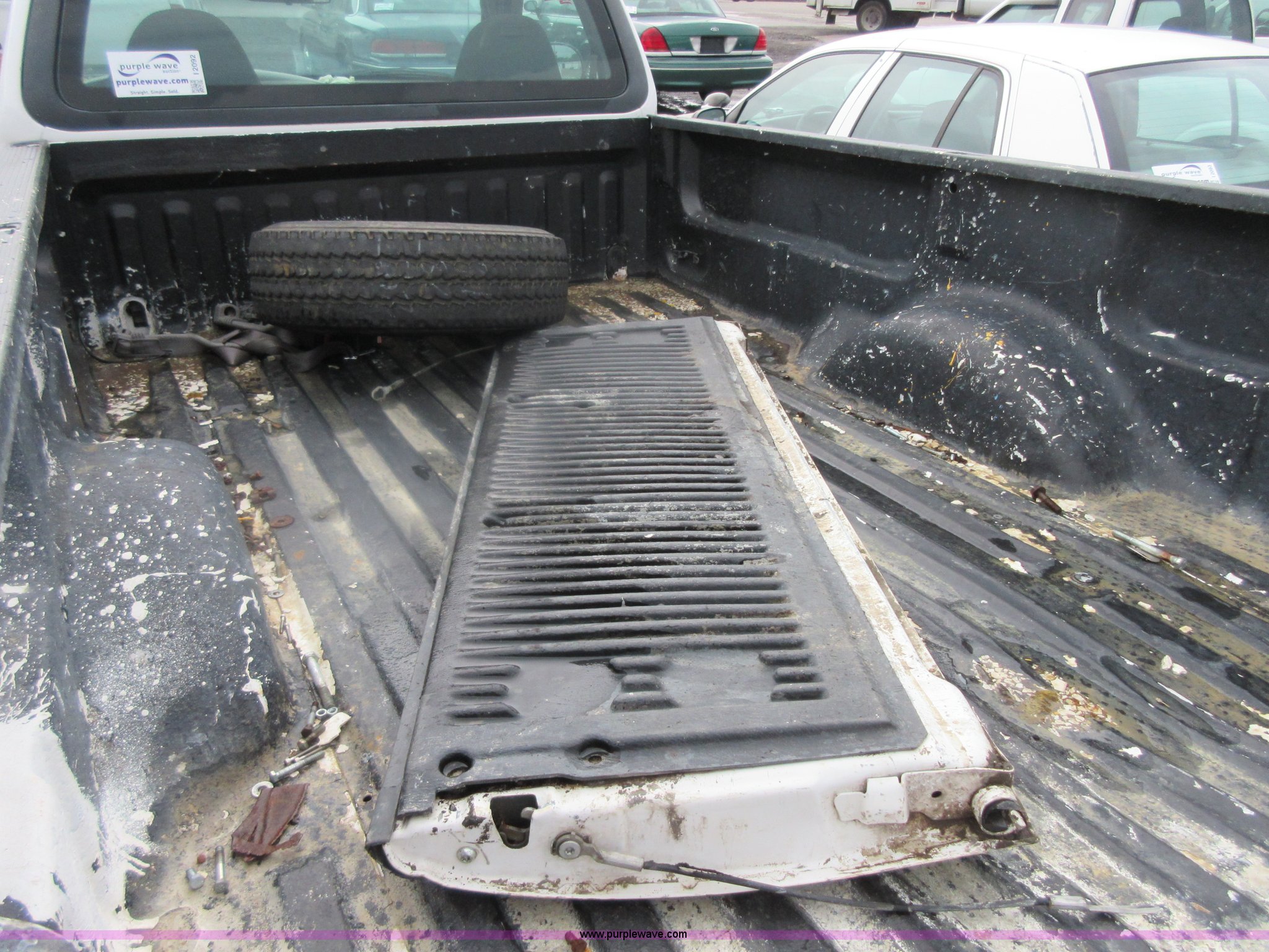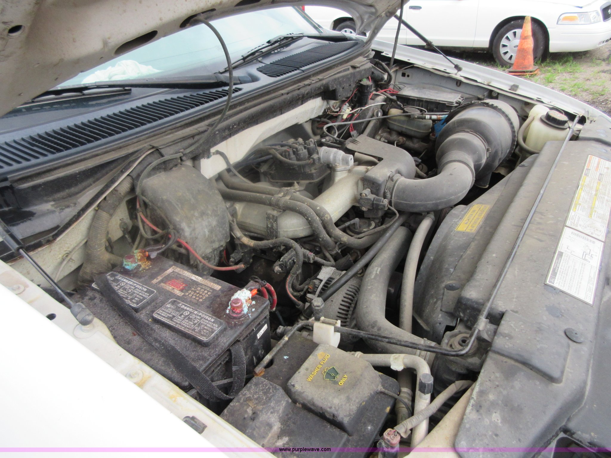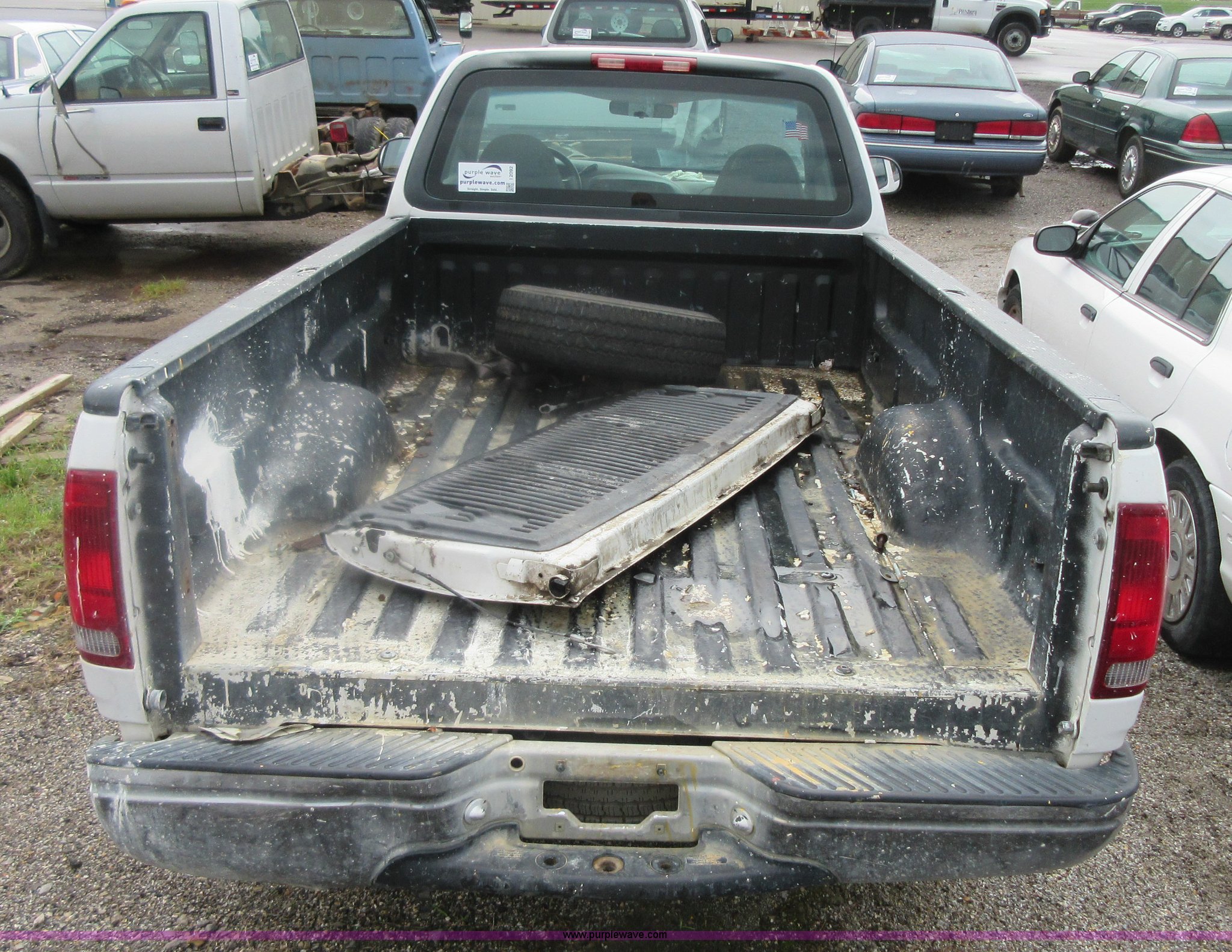 Purple Wave is selling a used 1/2 Ton Pickup or Van in Kansas. This item is a 1999 Ford F150 pickup truck with the following: 85,602 miles on odometer, 4.2L V6 OHV 12V gas engine, Automatic transmission, AC and heat, Tilt, Cruise, AM/FM, Manual windows, Power locks, Cloth interior, P235/70R16 tires, Interior/exterior cosmetic damage, Starter grinds, Seat beat missing, Paint peeling, Headliner separating, Dead battery, Unit # 320-034