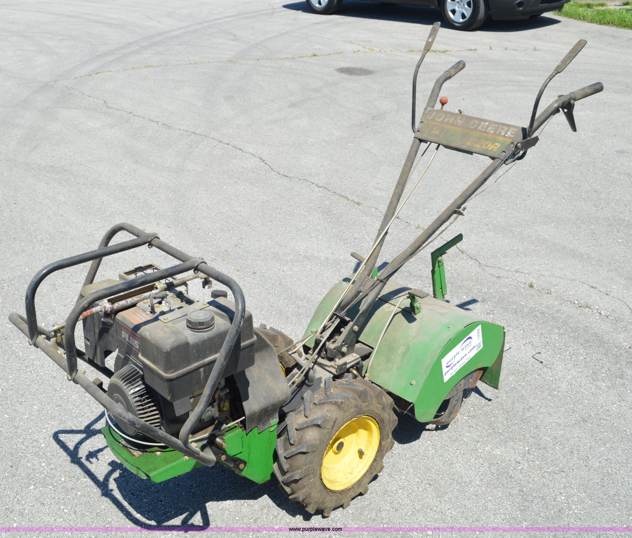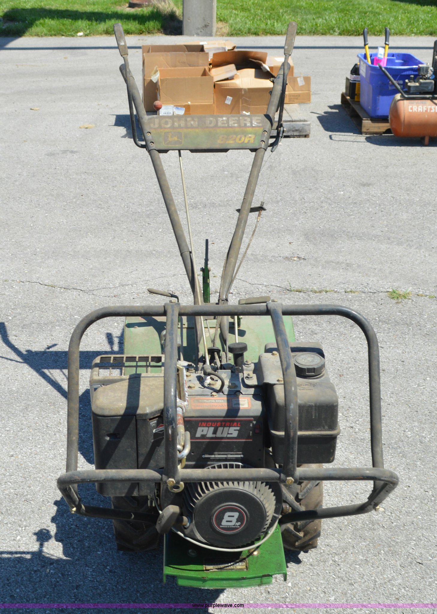 Purple Wave is selling a used Lawn and Garden in Missouri. This item is a John Deere 820R rear tine tiller with the following: Briggs & Stratton gas engine, 8 HP, Serial M0820RX010227, 20"W