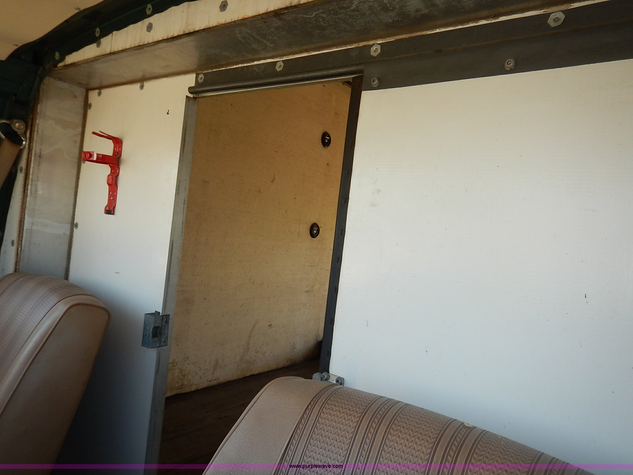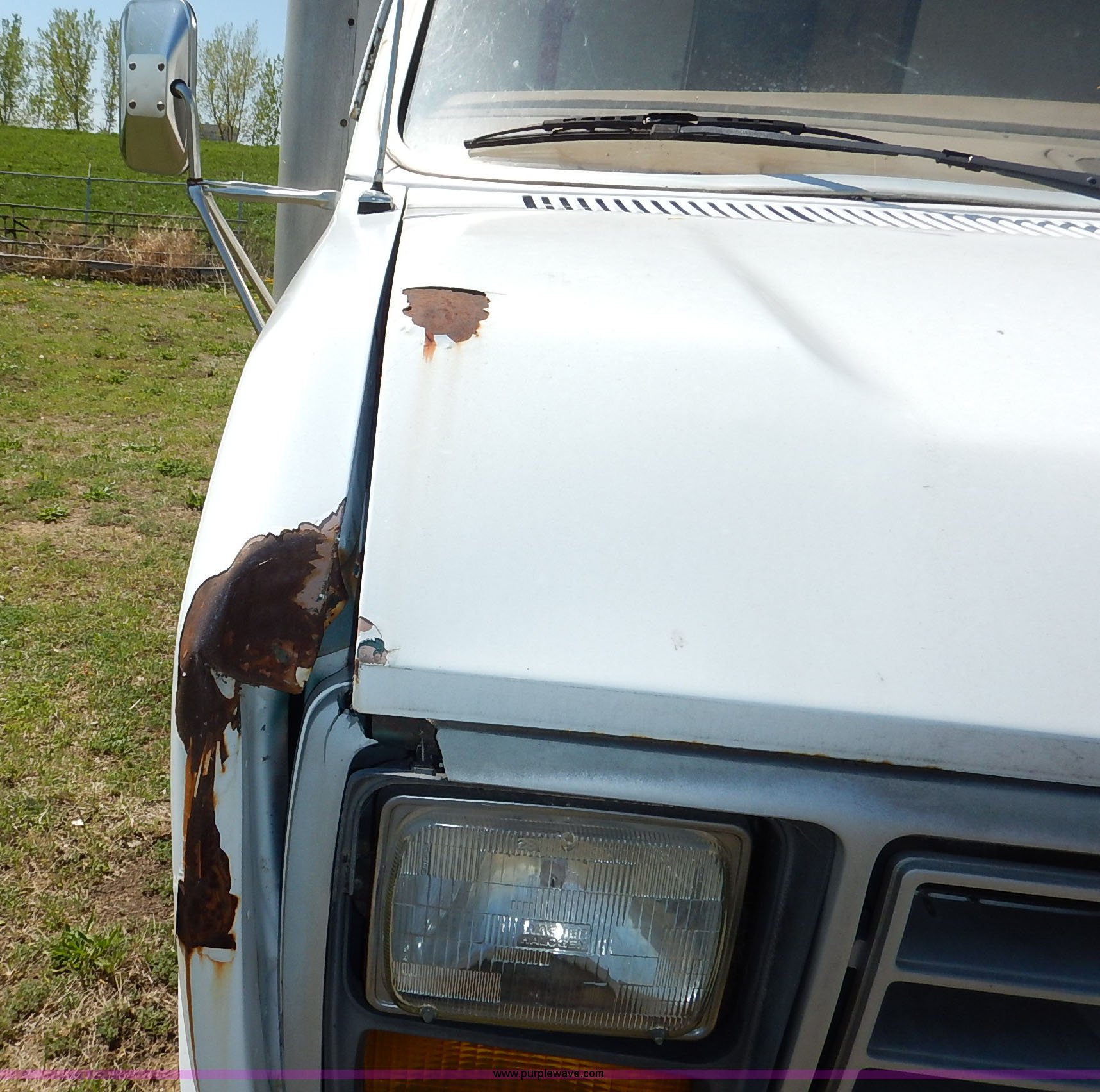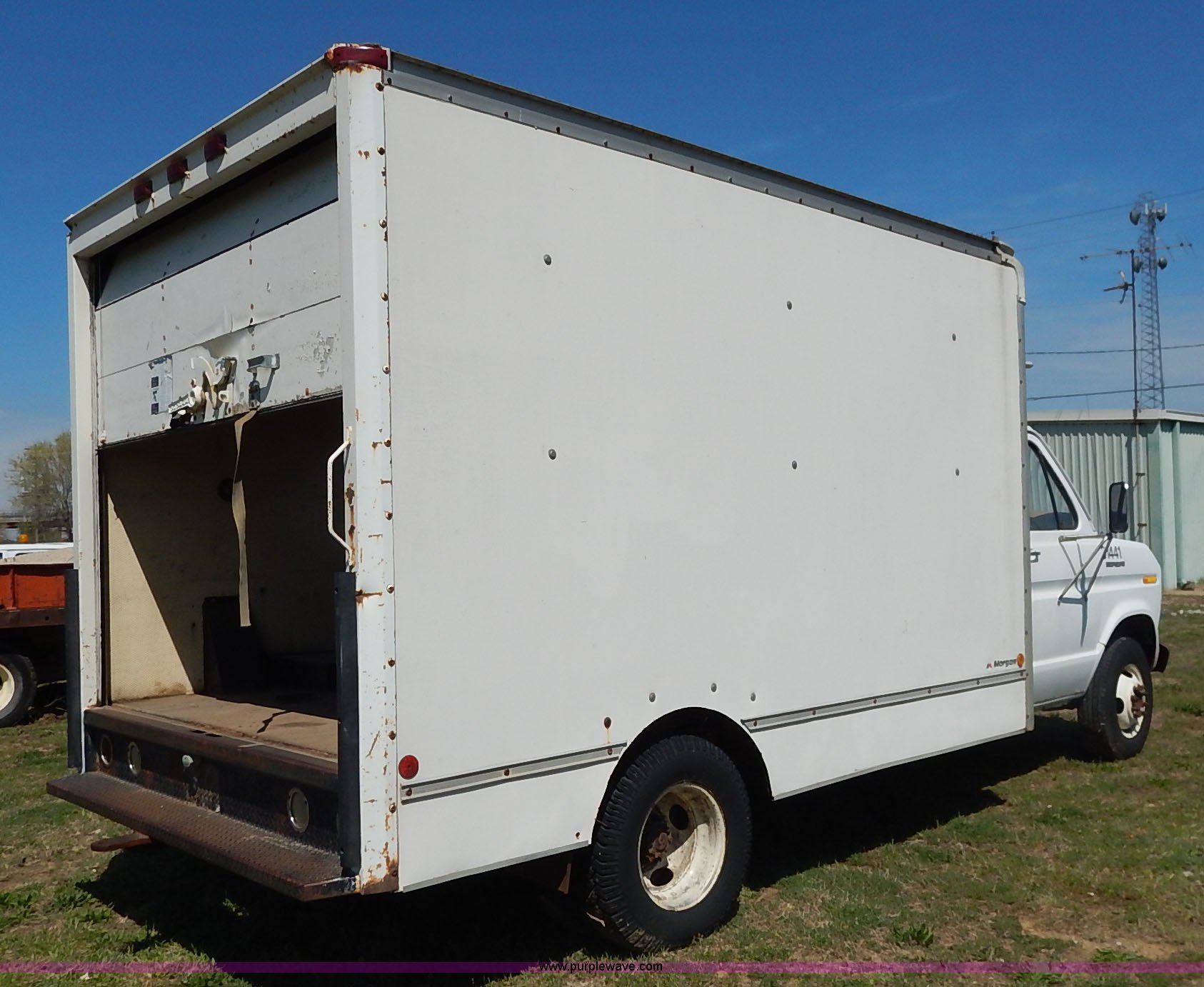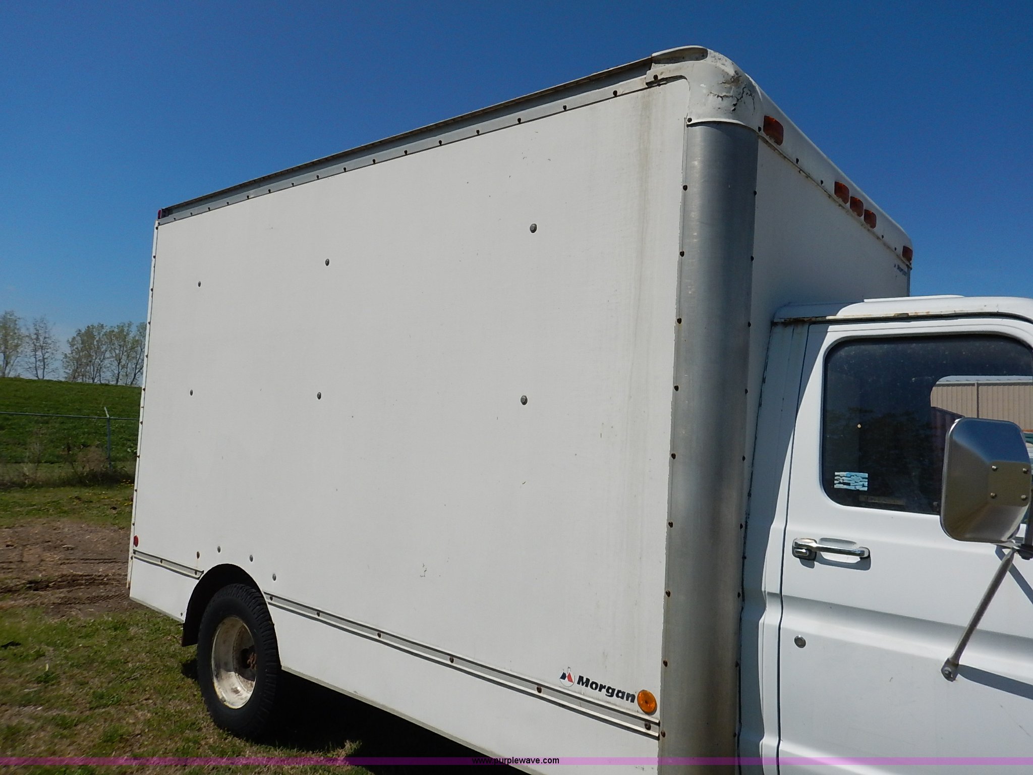 Purple Wave is selling a used Box Truck in Kansas. This item is a 1985 Ford Econoline E350 box truck with the following: 58,132 miles on odometer, 5.8L V8 OHV 16V gas engine, Automatic transmission, Heat, AM/FM, Manual windows and locks, Vinyl interior, Morgan box bed, 12' x 90", Wood floor, Rear roll up door, 215/85R16 tires, Catalytic converter missing, Paint peeling/chipping, Dents, Scratches, Weak battery, Unknown operating condition, Unit# 17022