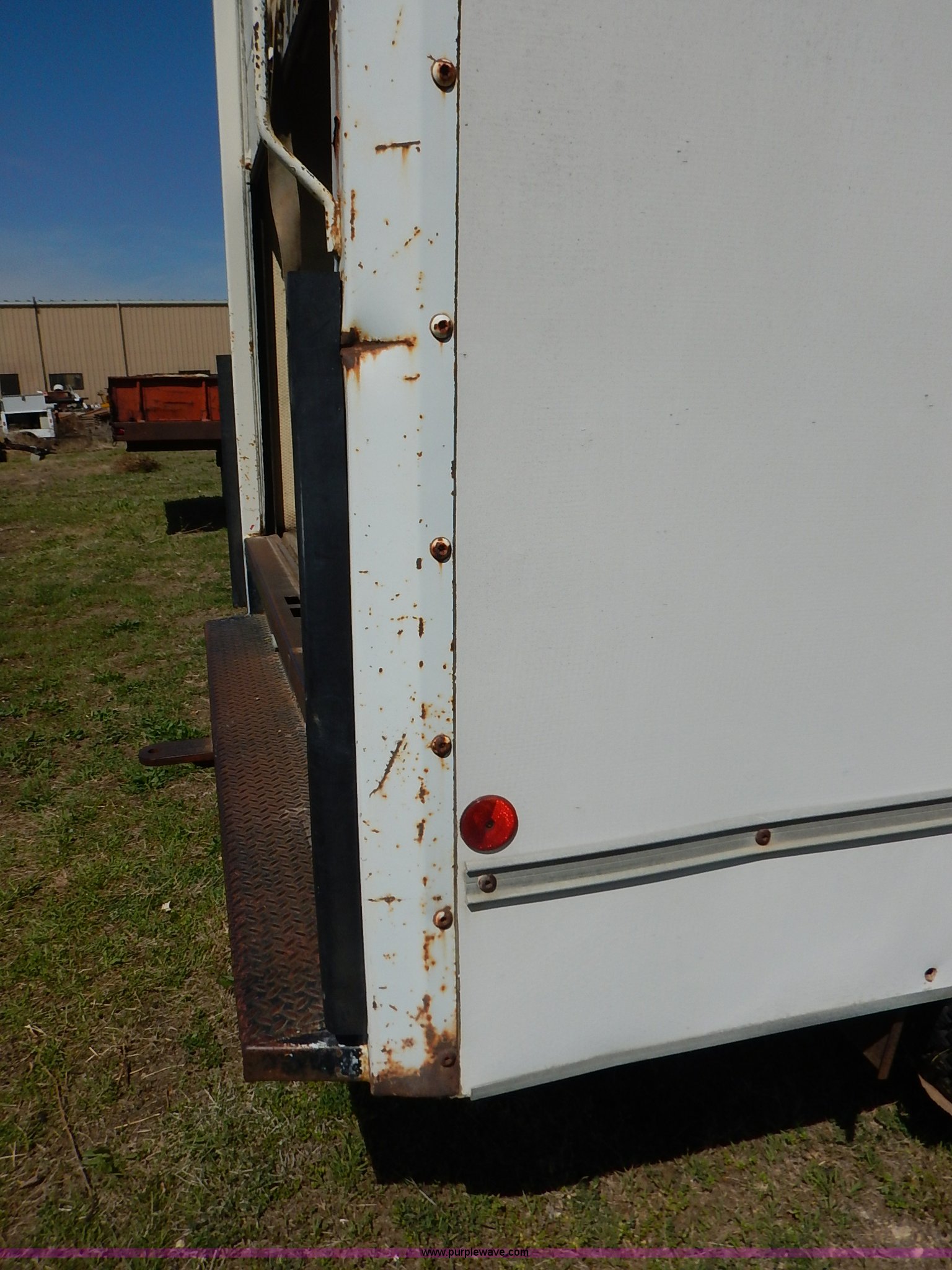 1985 Ford Econoline E350 box truck. 58,132 miles on odometer, 5.8L V8 OHV 16V gas engine, Automatic transmission, Heat, AM/FM, Manual windows and locks, Vinyl interior, Morgan box bed 12' x 90", Wood floor, Rear roll up door, 215/85R16 tires, Catalytic converter missing, Paint peeling/chipping, Dents, Scratches, Weak battery, Unknown operating condition, Unit# 17022. 1FDJE37H2FHC34942. Shawnee County. Topeka, KS 66603