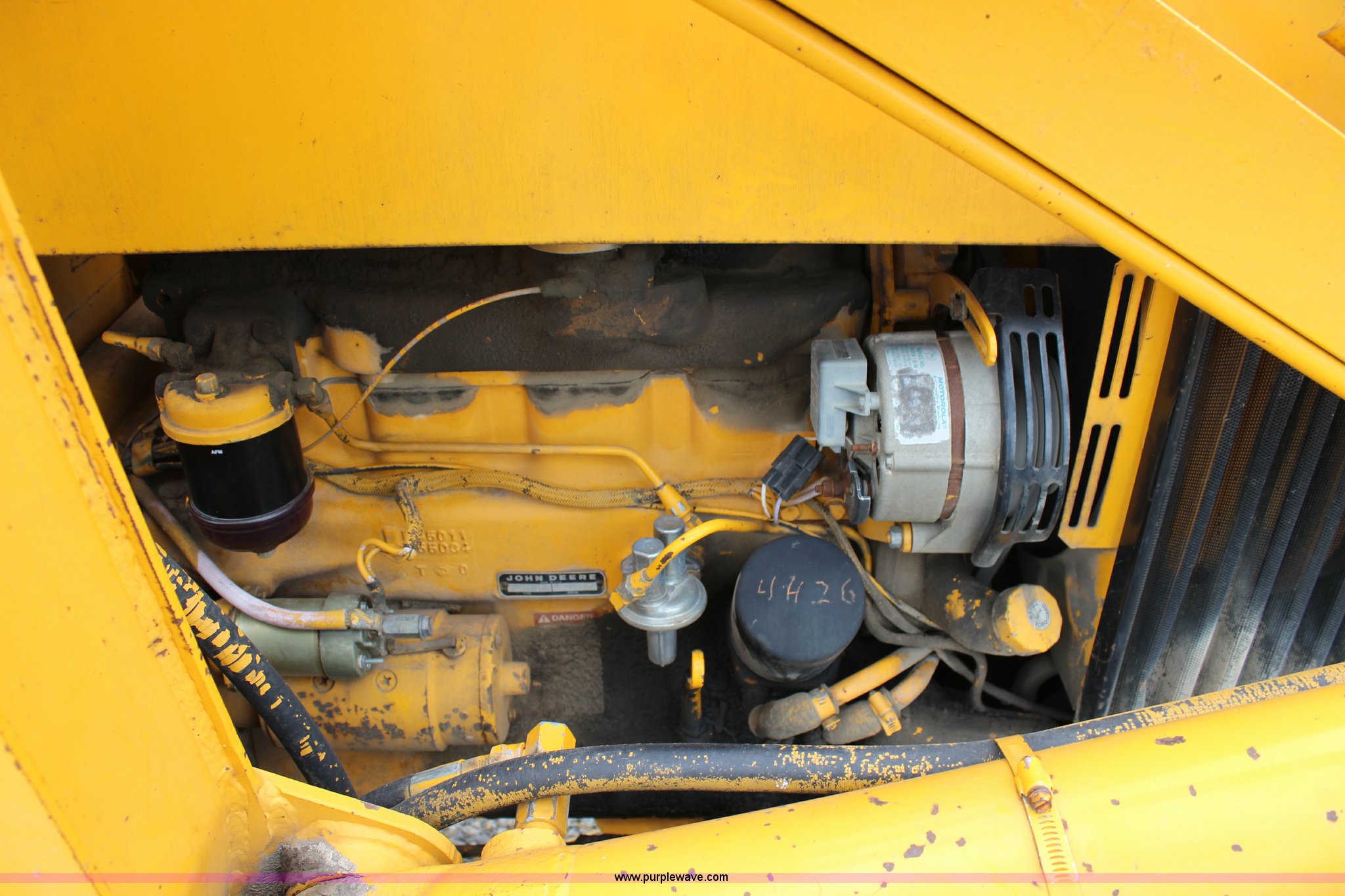 Purple Wave is selling a used Tractor Loader Backhoe in Kansas. This item is a 1979 John Deere 310A backhoe with the following: 4,502 hours on meter, John Deere 4219DT 3.6L four cylinder diesel engine, 58 HP, Serial 494175T, 8F-8R gears, Hydraulic reverser, Canopy, Wobble stick backhoe controls, Front and rear work lights, 89"W loader bucket, 24"W backhoe bucket, 11L-15 front tires, 16.9-24 rear tires, 13,469 lbs. base operating weight, Serial 323074T