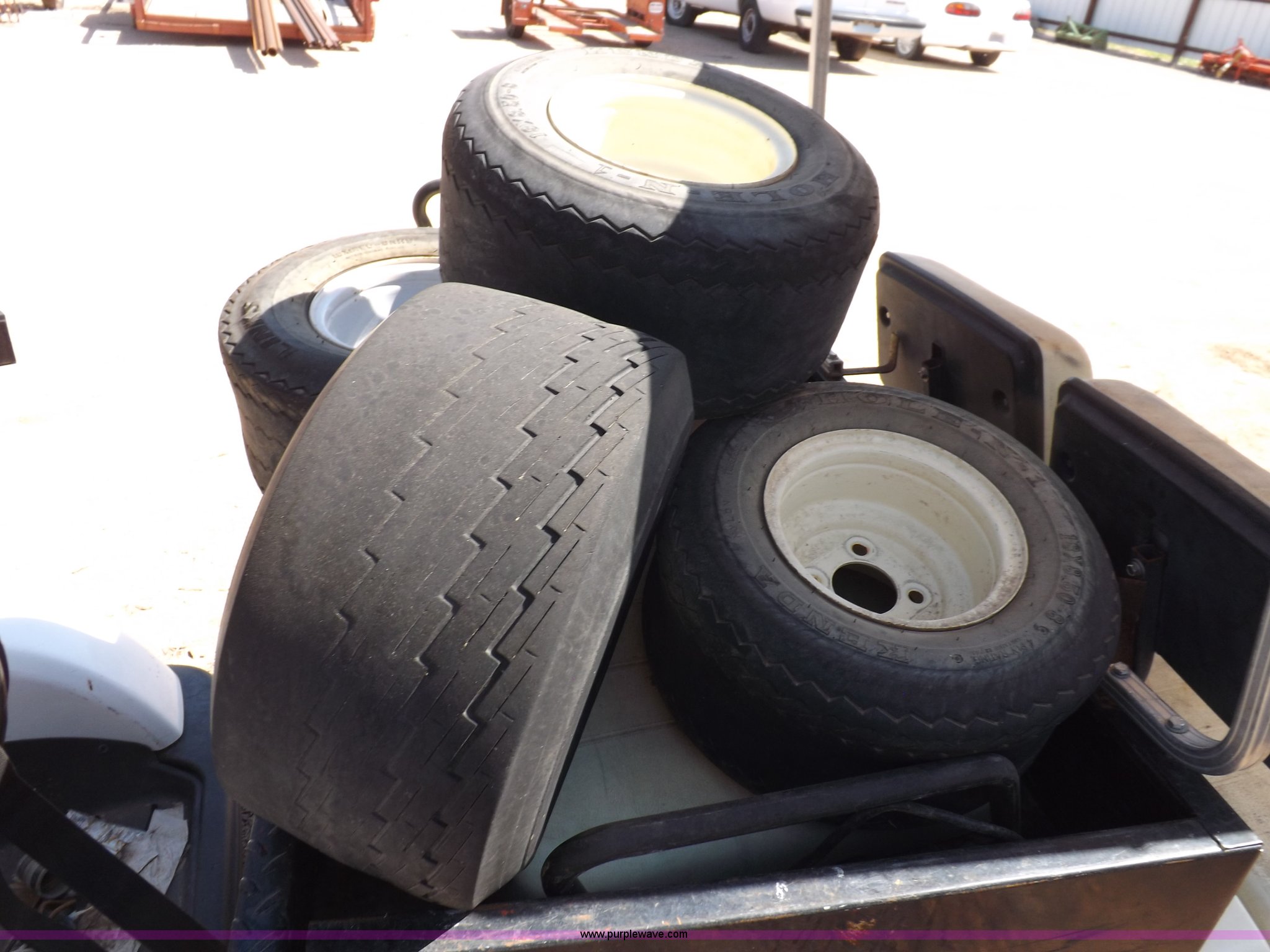 Purple Wave is selling a used Golf Cart in Oklahoma. This item is a 1996 Yamaha G16E golf cart with the following: 36V, Canopy, Windshield, 33"L x 44"W x 8.5"D bed, 18x8.5-8 tires, (4) additional 18x8.5-8 tires and wheels, Additional seat cushion, Non-operational unit, No batteries, Right rear tire flat