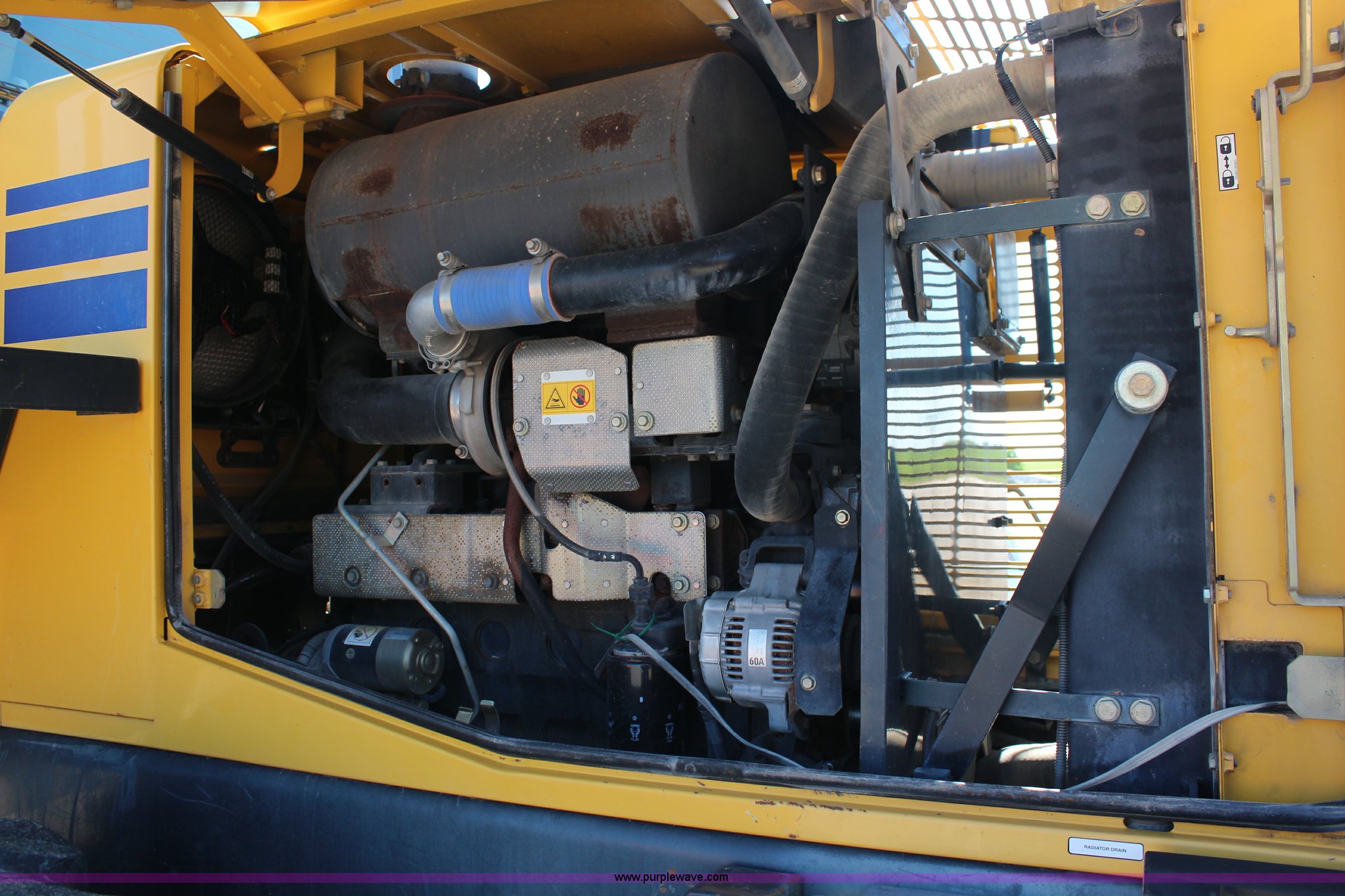Purple Wave is selling a used Wheel Loader in Kansas. This item is a 2005 Komatsu WA250-5L wheel loader with the following: 12,760 hours on meter, Komatsu 5.9L six cylinder turbo diesel engine, 140 HP, Powershift transmission, 4F-4R gears, Traction control, Enclosed cab, AC and heat, AM/FM/cassette, Suspension seat, Joystick bucket controls, Strobe light, Front and rear work lights, JRB 105"W bucket, 3.5 cu. yd. capacity, Bolt-on cutting edge, Grapple forks, Third valve for grapple, 20.5R25 tires, Owner's and parts manual, Boom is slightly sprung, Rust, Serial A73597