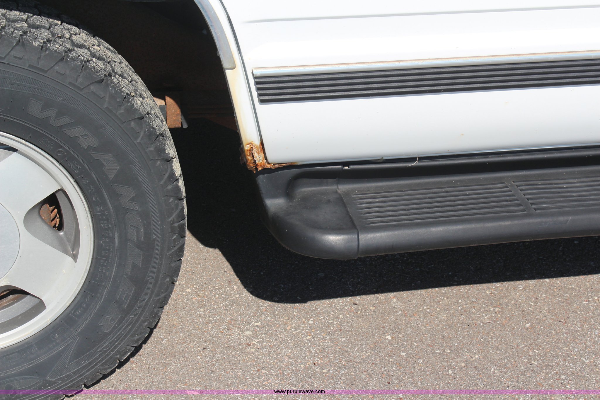 Purple Wave is selling a used Passenger Vehicle in Kansas. This item is a 1996 Chevrolet Tahoe SUV with the following: 119,891 miles on odometer, 5.7L V8 OHV 16V gas engine, Automatic transmission, AC and heat, Tilt, Cruise, AM/FM/cassette, Power windows, locks, and mirrors, Cloth interior, Running boards, 245/75R16 tires, Frame rusted through