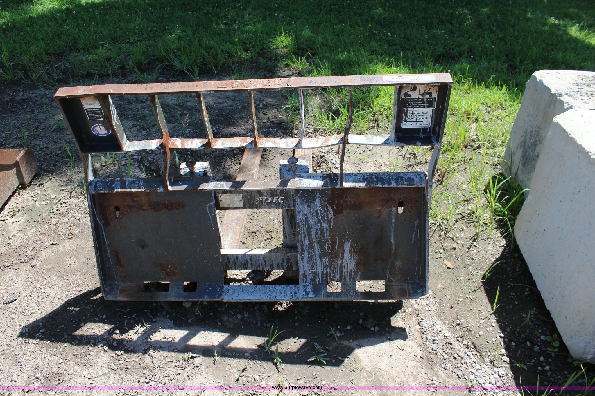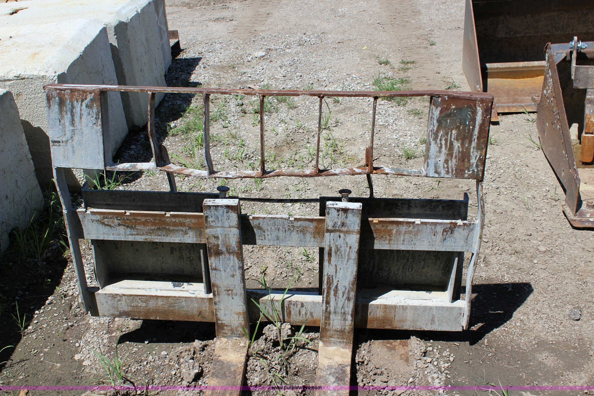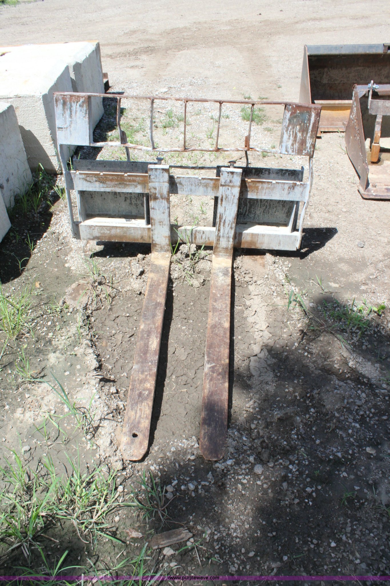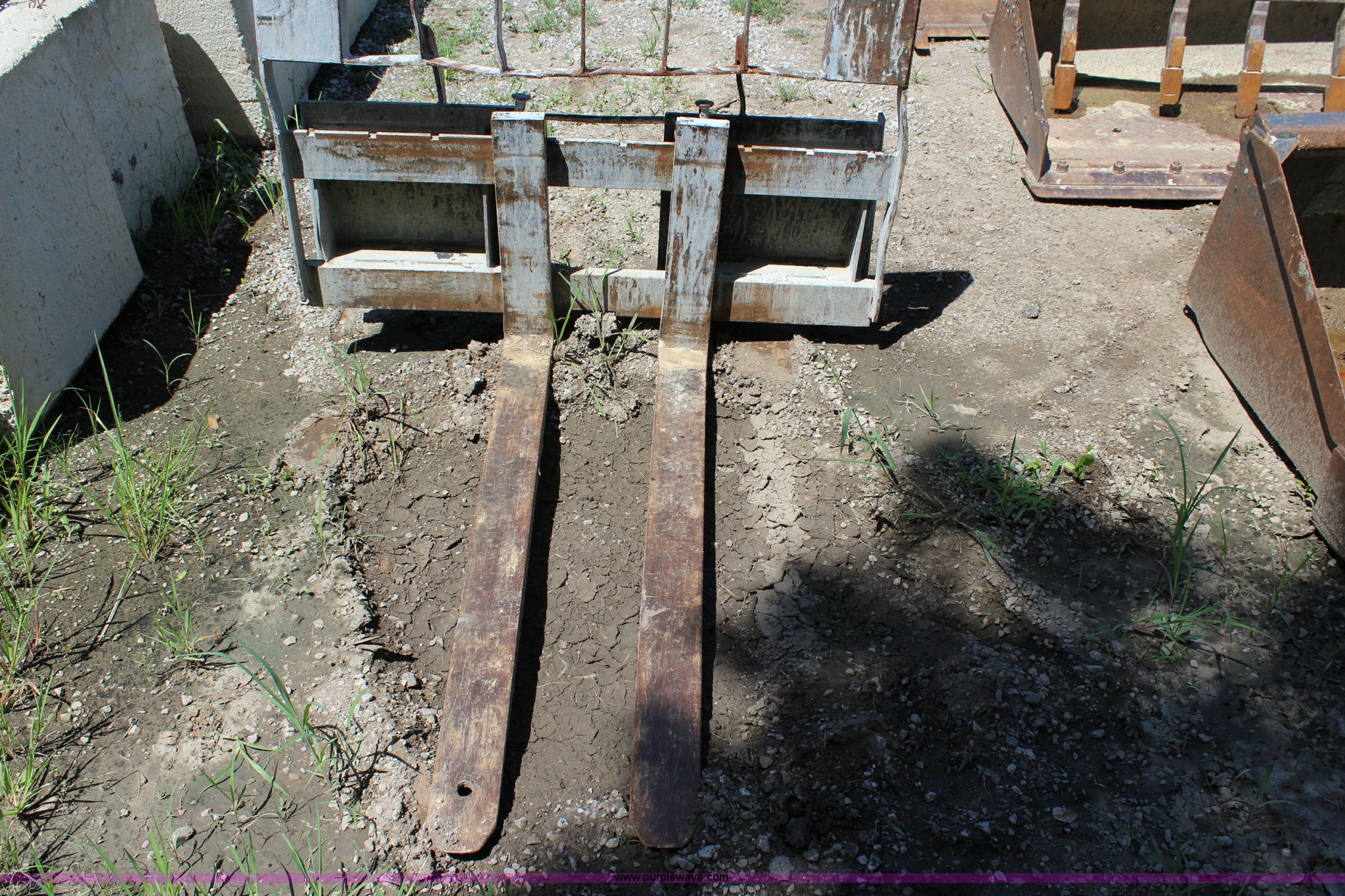 Purple Wave is selling a used Skid Steer Attach. in Kansas. This item is a Paladin skid mount pallet forks with the following: 48"L x 4"W