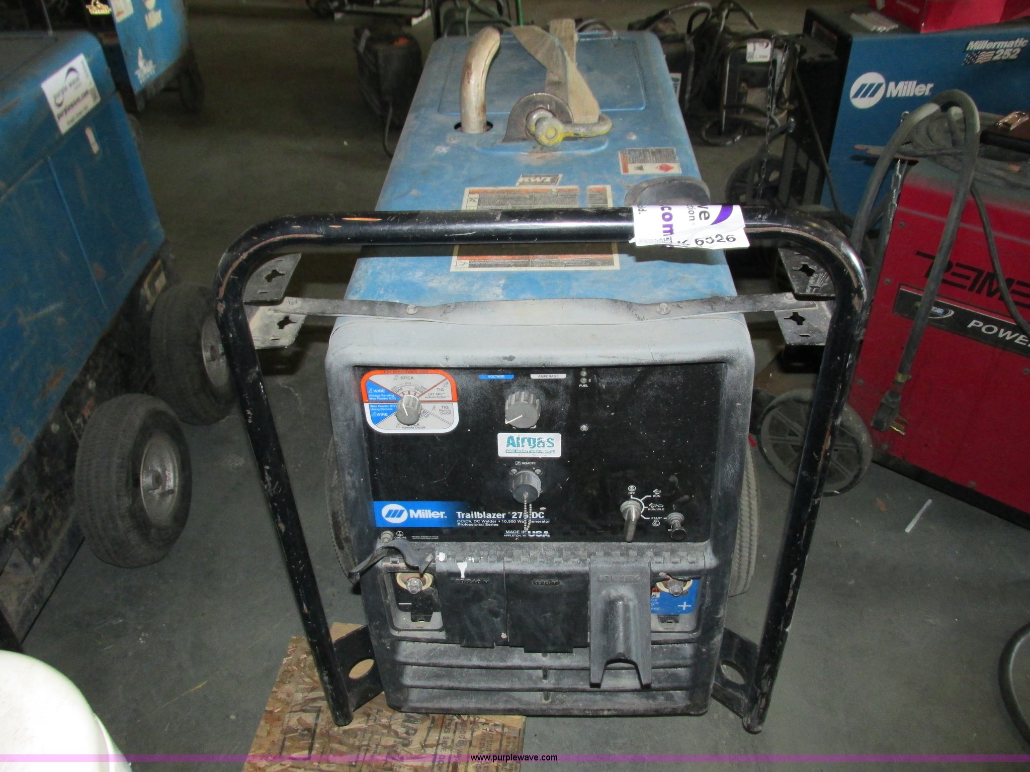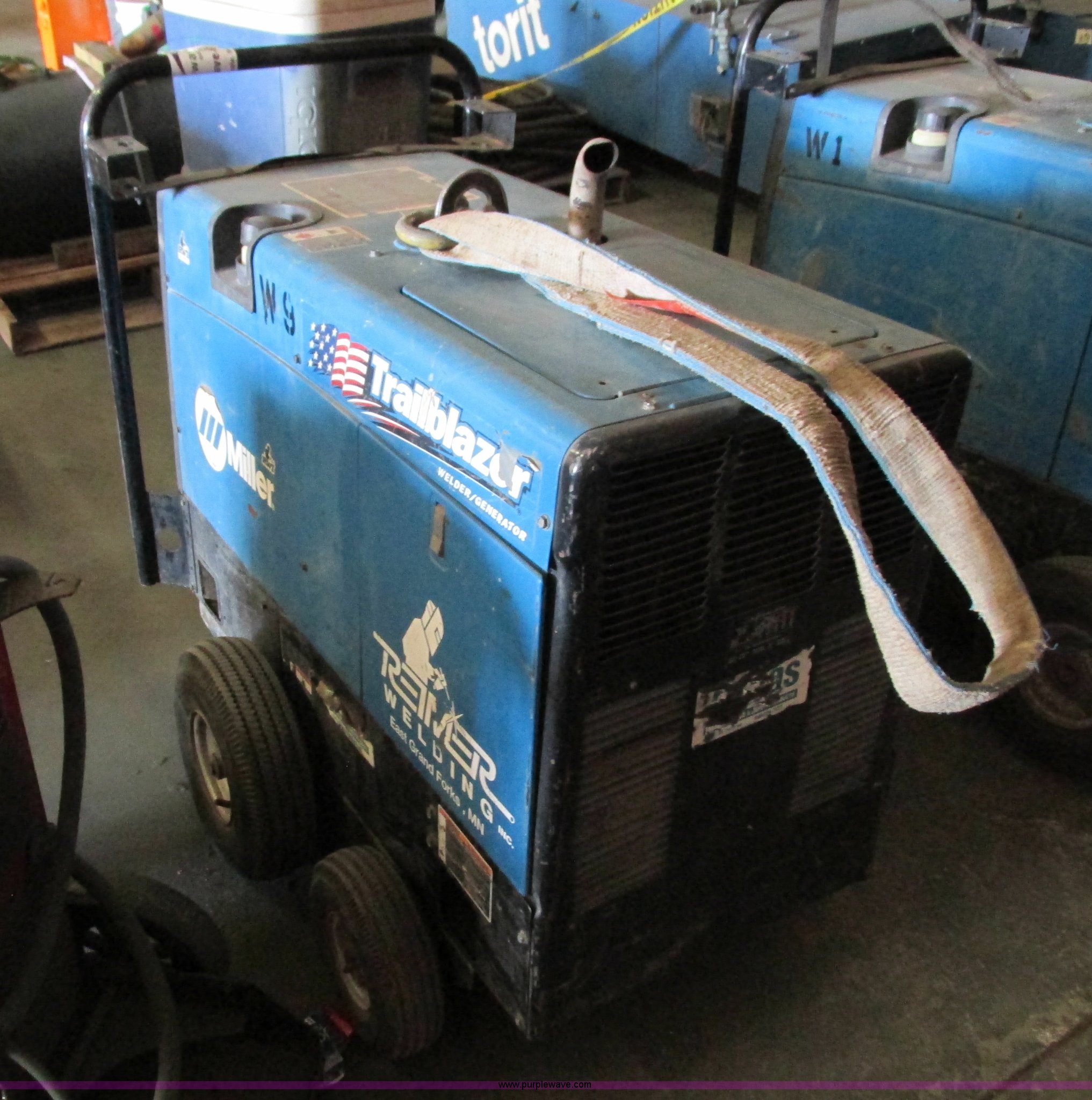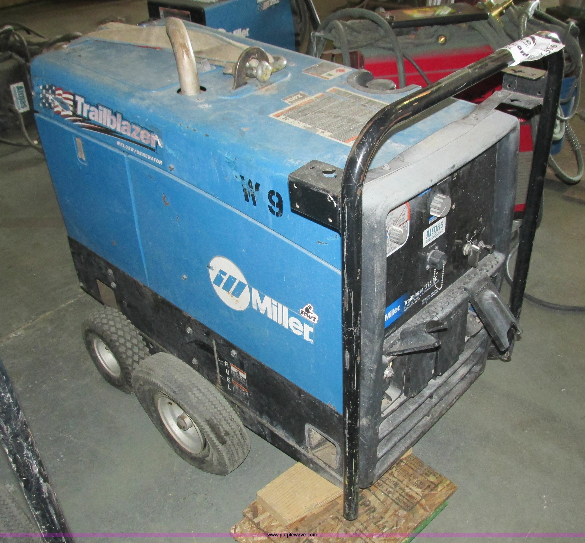 Purple Wave is selling a used Welder (Manual) in Minnesota. This item is a Miller Trailblazer 275 DC welder with the following: 2,699 hours on meter, Kohler 674cc gas engine, Electric start, 120/240V generator, Stick or wire capable, One tire flat