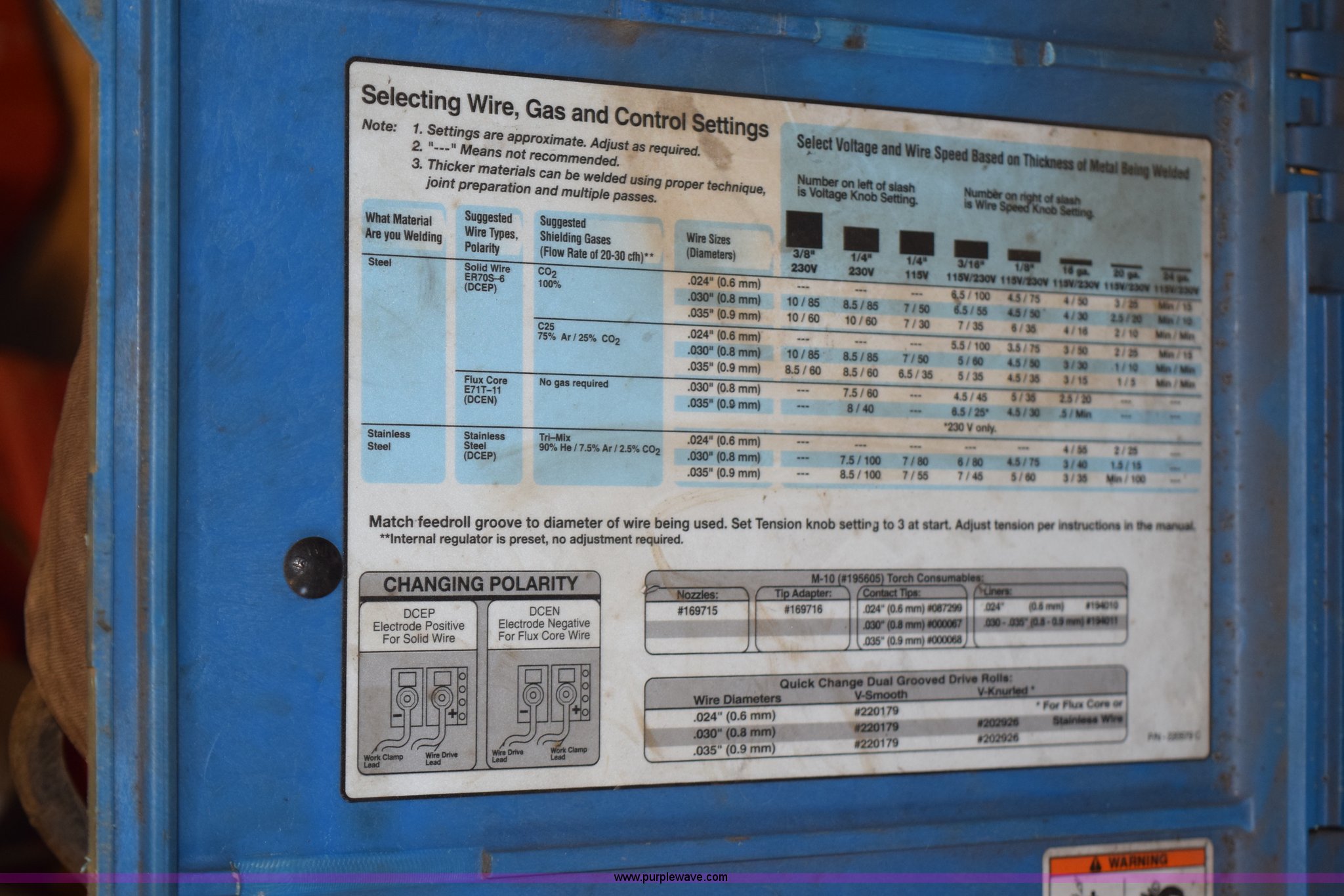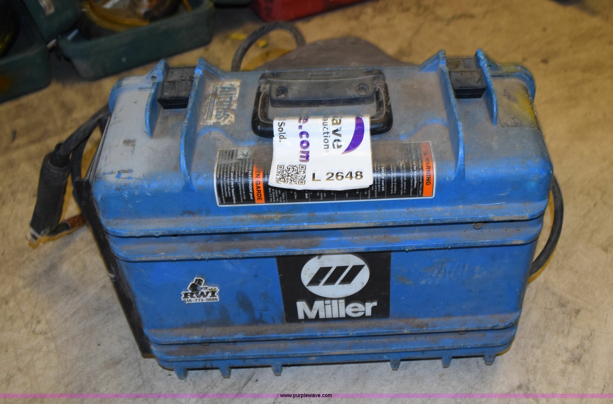 Purple Wave is selling a used Welder (Manual) in Minnesota. This item is a Miller suitcase wire welder with the following: 12 oz cylinder, Partial roll of wire, Lead and ground included