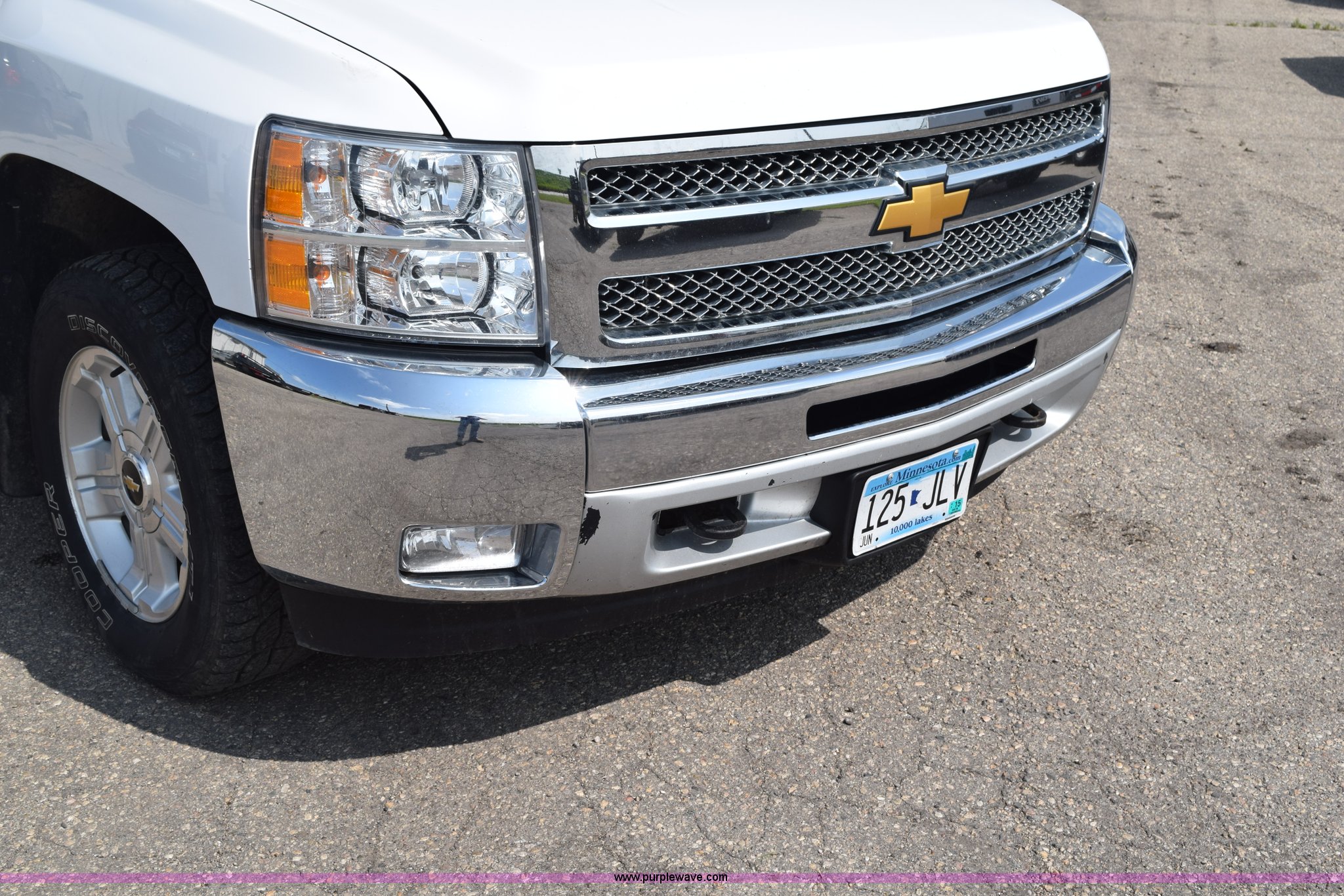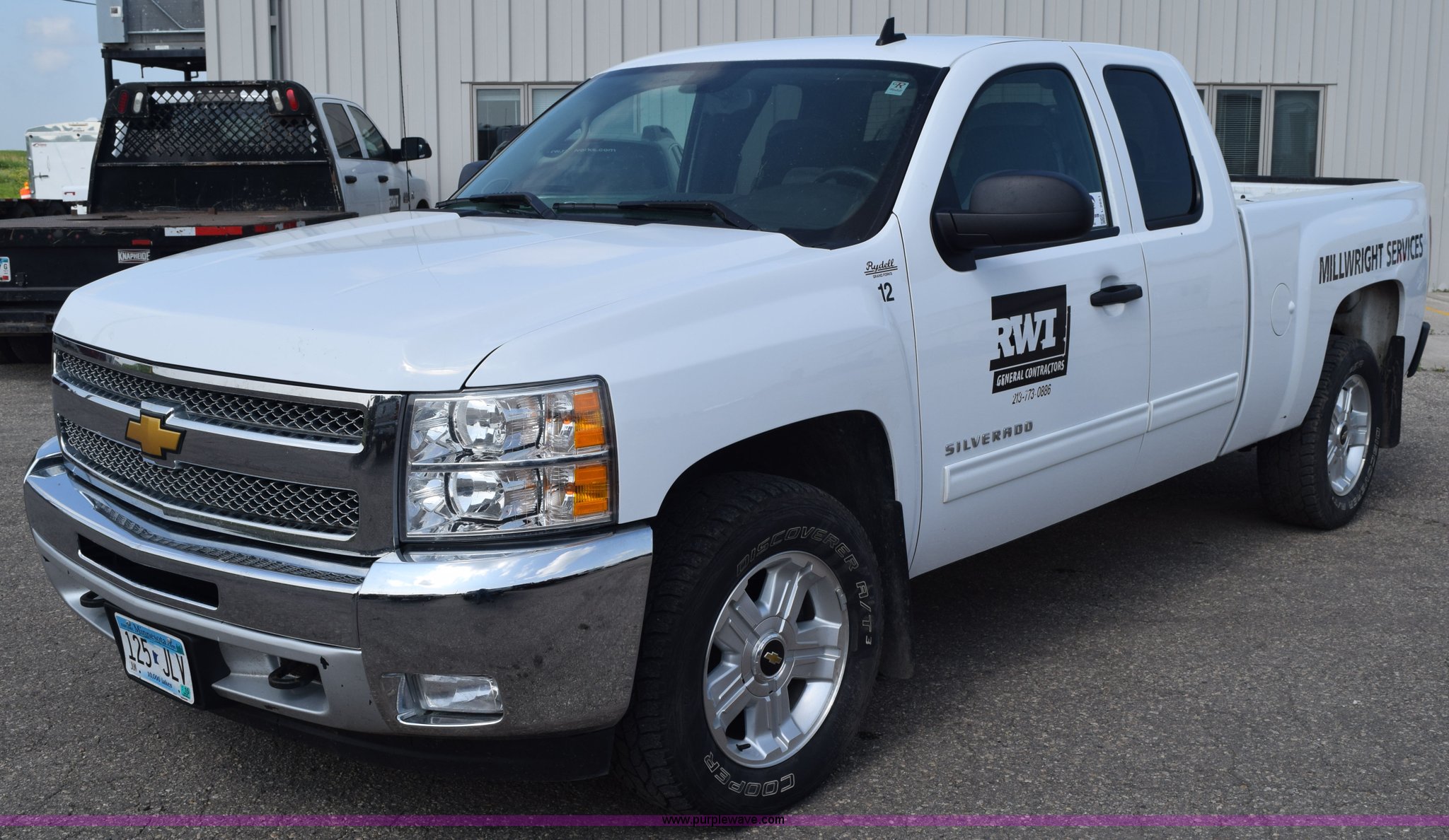 Purple Wave is selling a used 1/2 Ton Pickup or Van in Minnesota. This item is a 2012 Chevrolet Silverado 1500 Ext. Cab pickup truck with the following: 89,323 miles on odometer, 5.3L V8 OHV 16V FFV gas engine, Automatic transmission, Four wheel drive, AC and heat, Tilt, Cruise, AM/FM/CD, Power windows, locks, mirrors, and seats, Cloth interior, Front tow hooks, Reciever hitch, 265/65R18 tires, Windshield cracked
