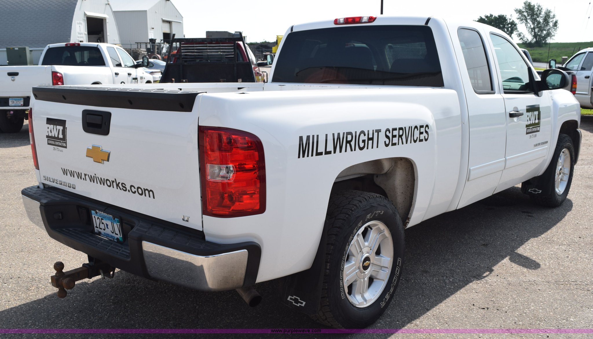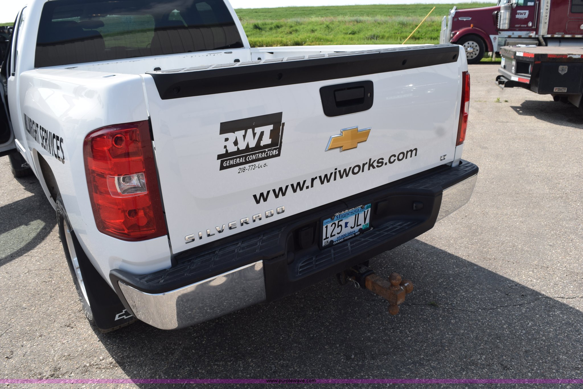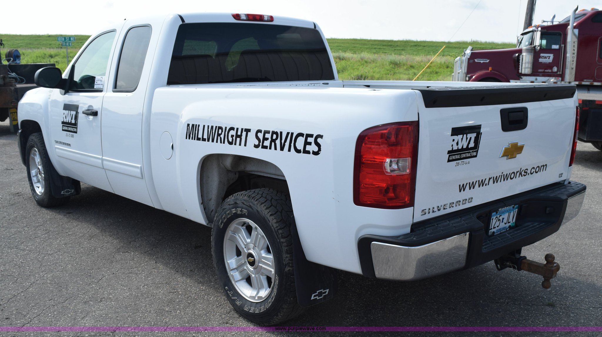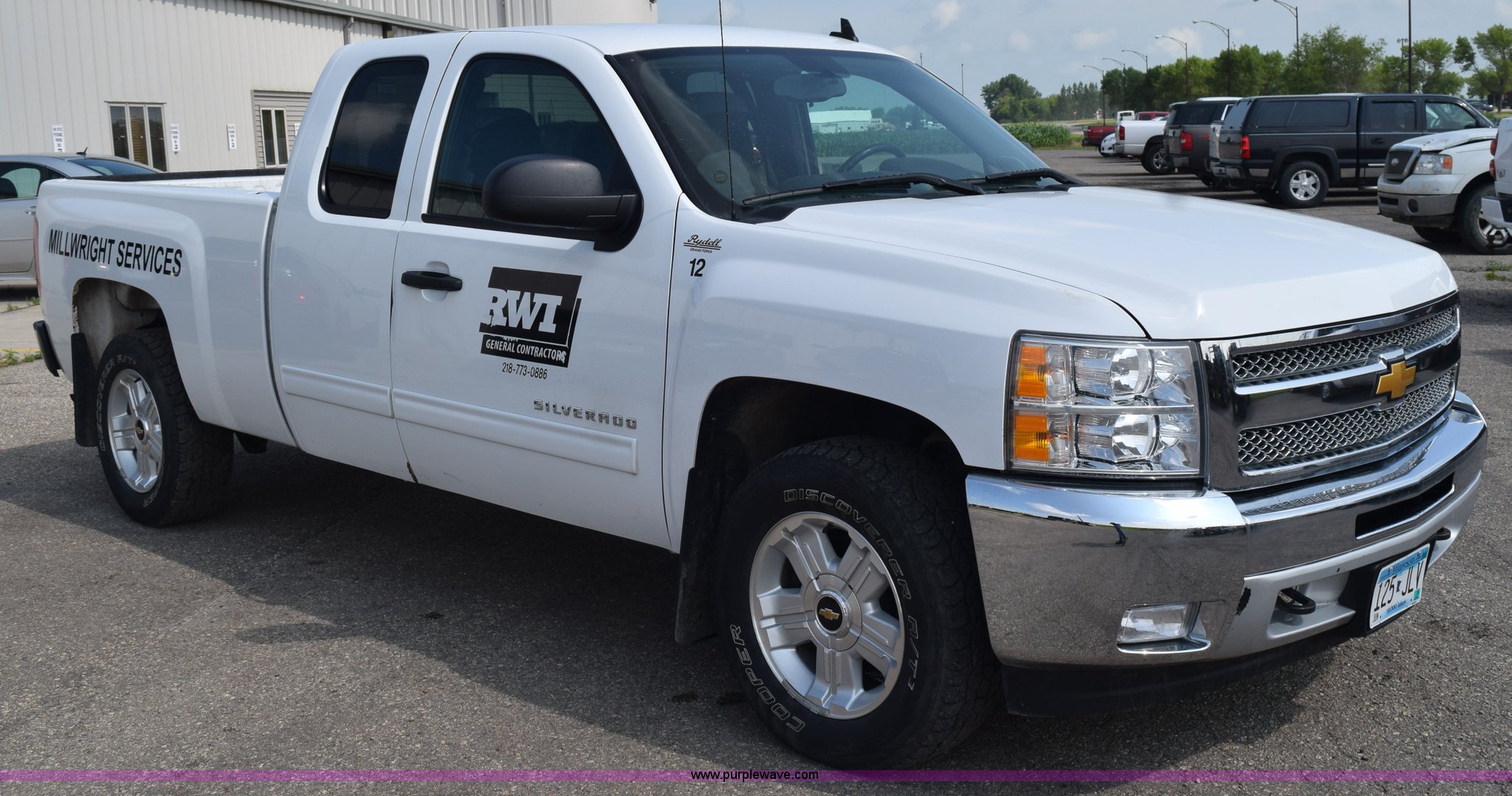 2012 Chevrolet Silverado 1500 Ext. Cab pickup truck. 89,323 miles on odometer, 5.3L V8 OHV 16V FFV gas engine, Automatic transmission, Four wheel drive, AC and heat, Tilt, Cruise, AM/FM/CD, Power windows, locks, mirrors, and seats, Cloth interior, Front tow hooks, Reciever hitch, 265/65R18 tires, Windshield cracked. 1GCRKSE7XCZ329730. RWI Welding. 1011 11th Avenue N.E.. East Grand Forks, MN 56721