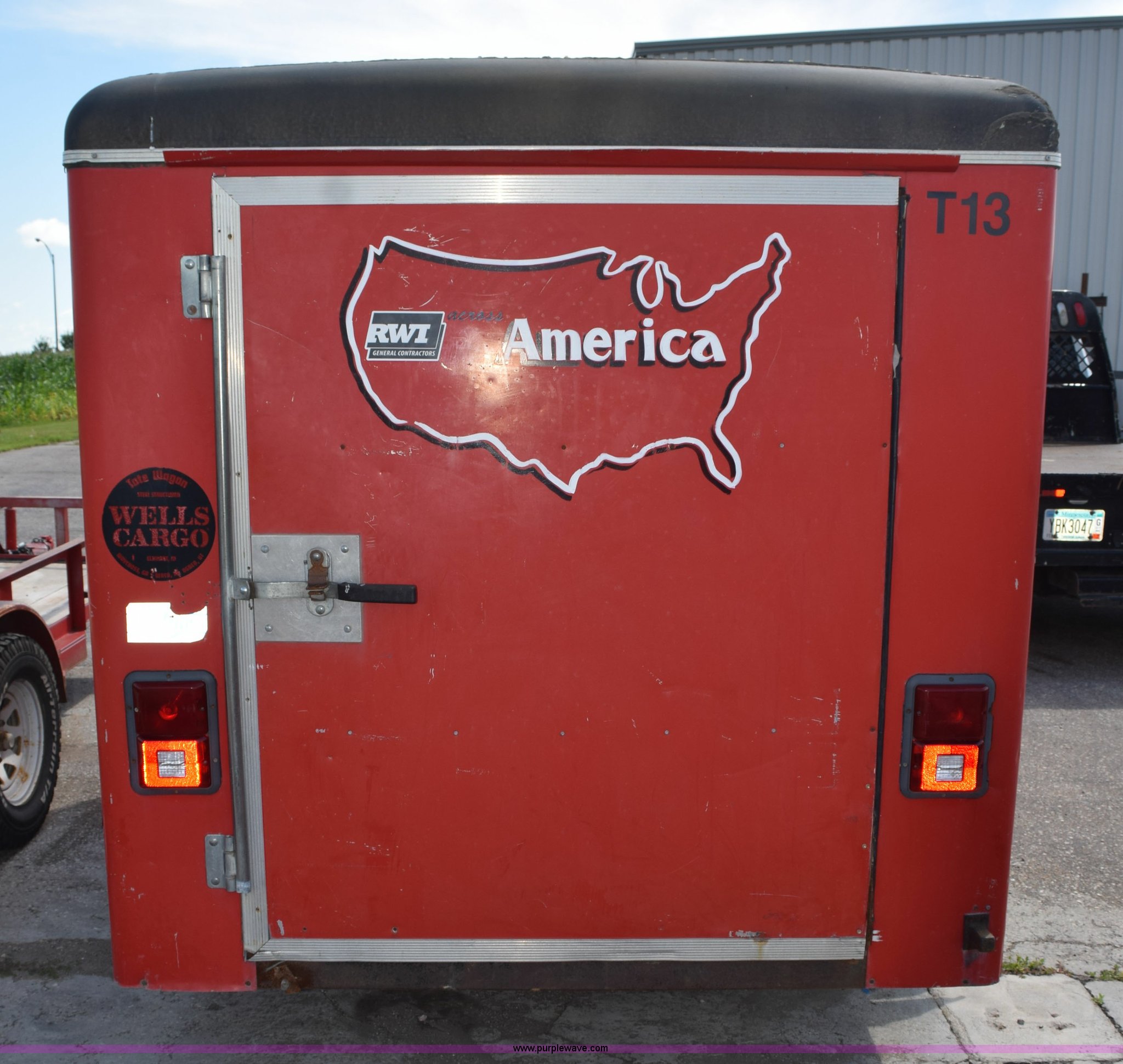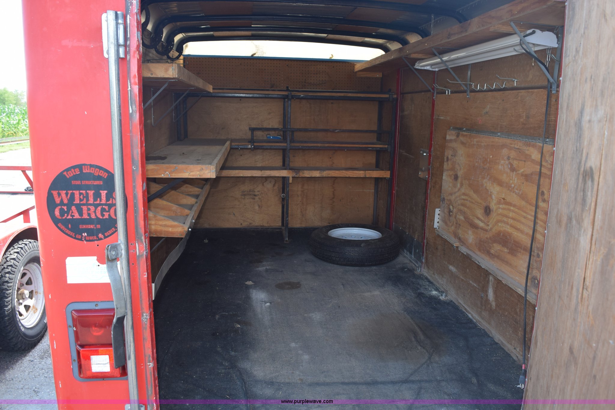 Purple Wave is selling a used Enclosed Cargo Trailer in Minnesota. This item is a 1998 Wells Cargo enclosed cargo trailer with the following: 10'L x 70"W x 80"H, 4'W rear door, 30"W side entry door, Interior shelves, 205/75R15 tires, GVWR 3,000 lbs