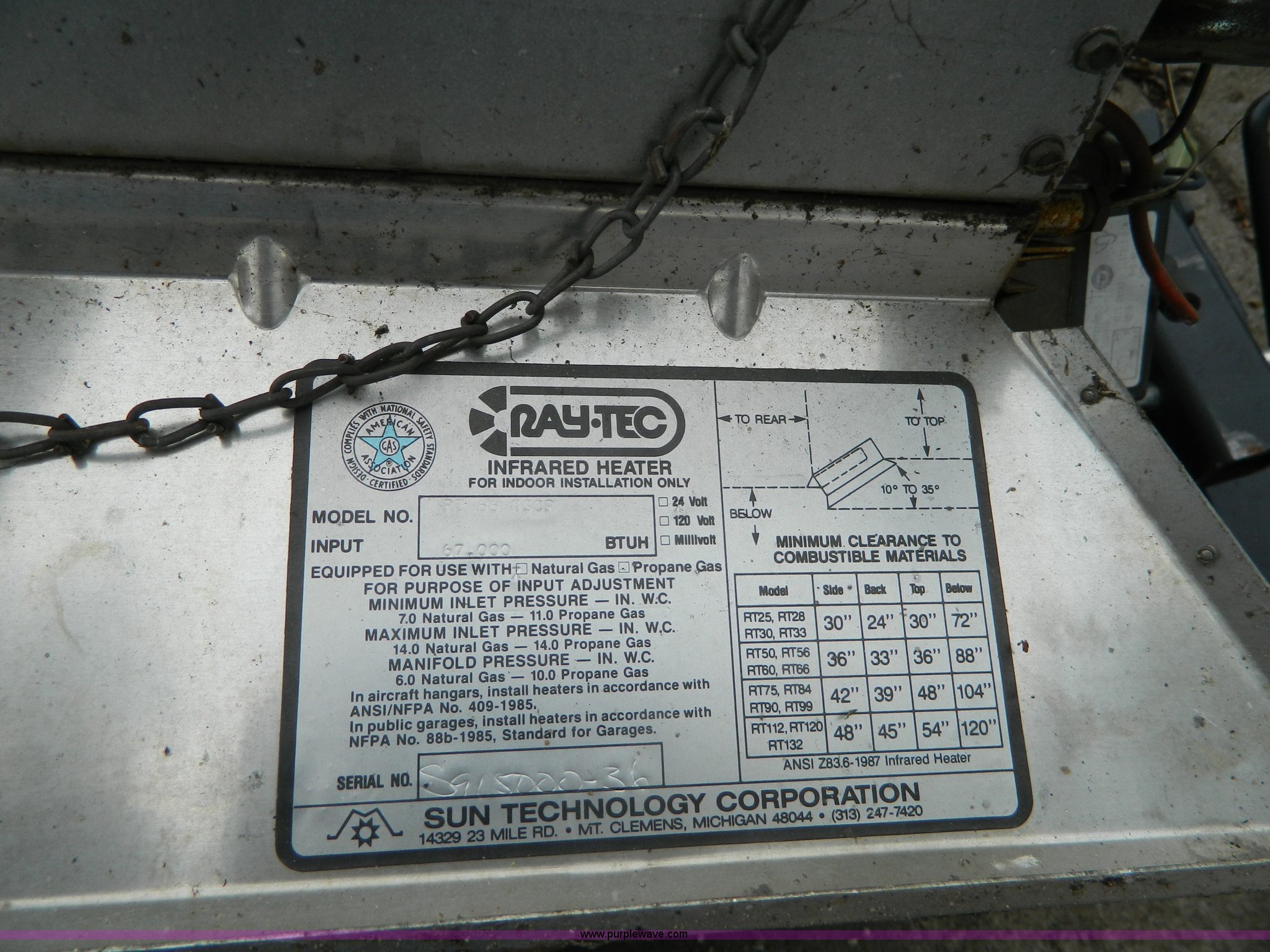 Ray-Tec infrared heater has sold in Assaria, Kansas for $275. Item BJ9099 sold on August 12th, 2015.