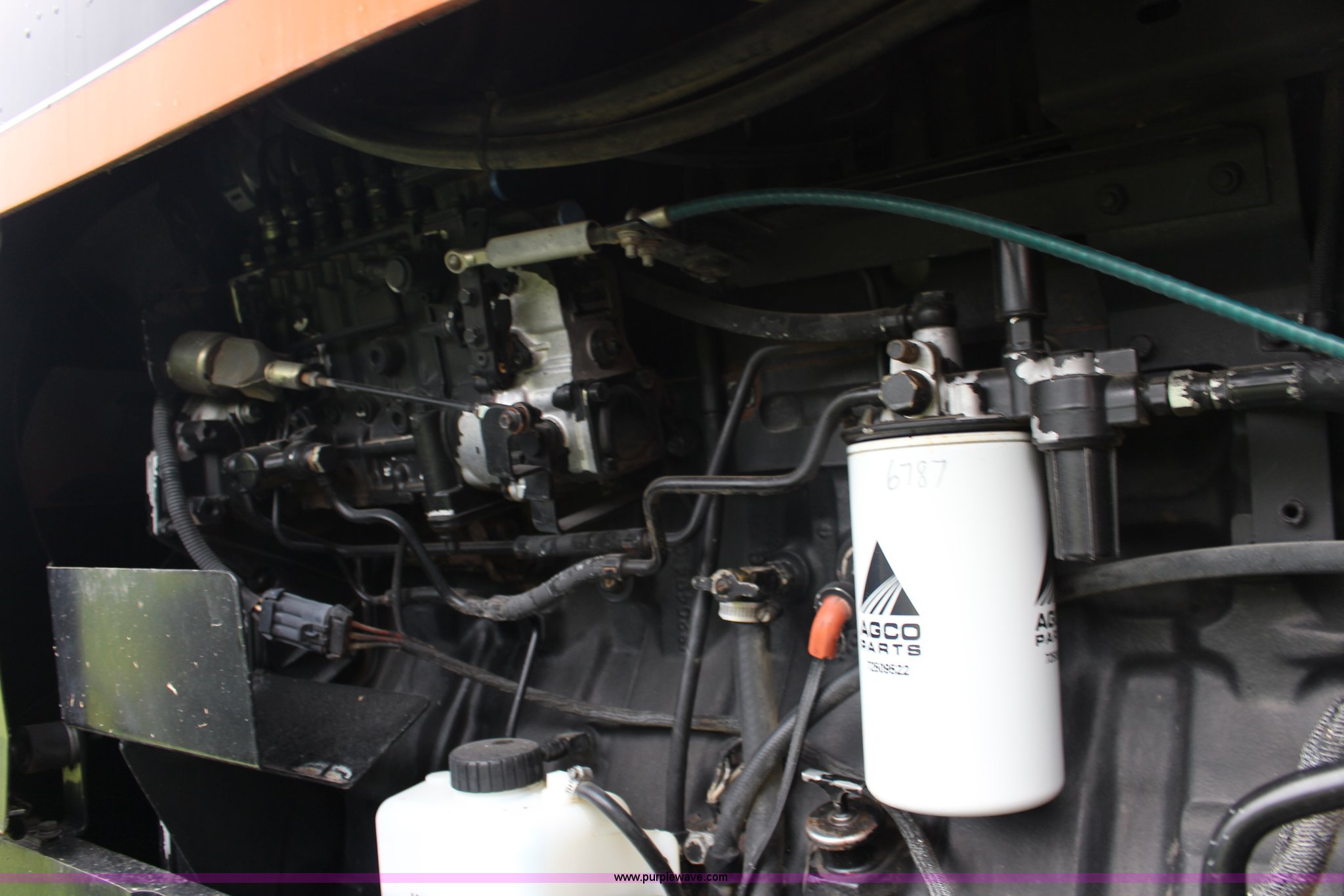 Purple Wave is selling a used Tractor in Kansas. This item is a AGCO Allis 9815 MFWD tractor with the following: 6,936 hours on meter, Detroit Series 40 six cylinder diesel engine, Overhauled approx. 700 hours ago, Injectors tested at time of overhaul, 18 speed powershift transmission, AC and heat, AC compressor replaced one and a half years ago, Air suspension seat, Three point, Top link, Draw bar, 1000 PTO, (3) rear hydraulic remotes, (18) suitcase weights, 420/85R30 front tires, 480/80R46 dual rear tires, Oil drain plug has small leak, Serial 902373P